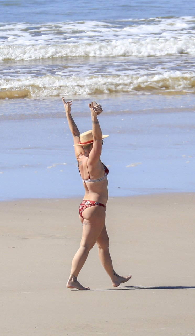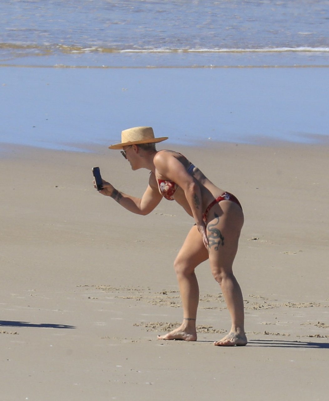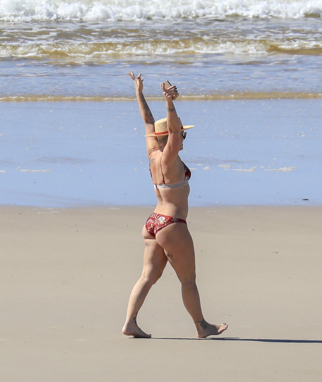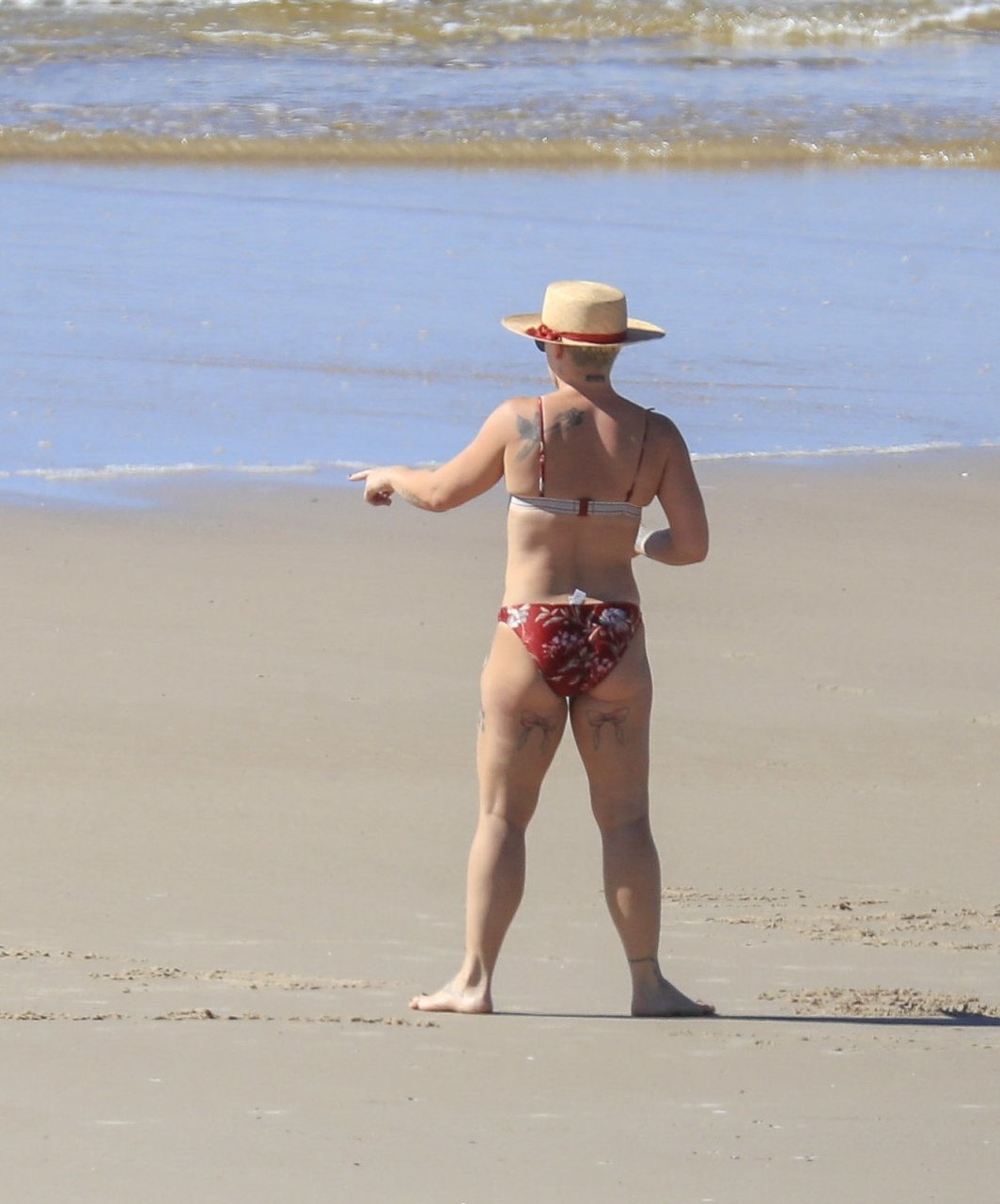 La estrella del pop Pink (Alecia Moore) disfruta del sol en bikini, mientras disfruta de un descanso junto a la playa durante su gira por Australia, en Byron Bay, 30/07/2018. P!nk (38) estuvo acompañada por su esposo, Carey Hart, y su familia en sus vacaciones en la playa.