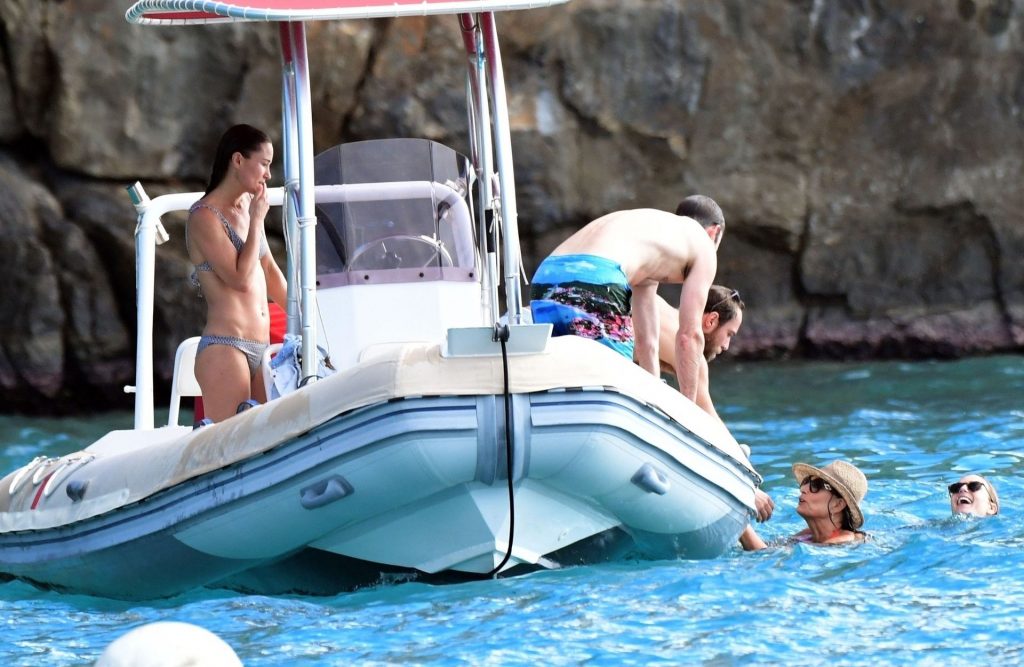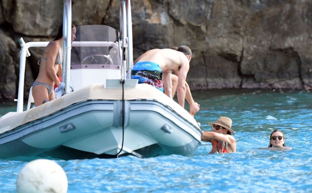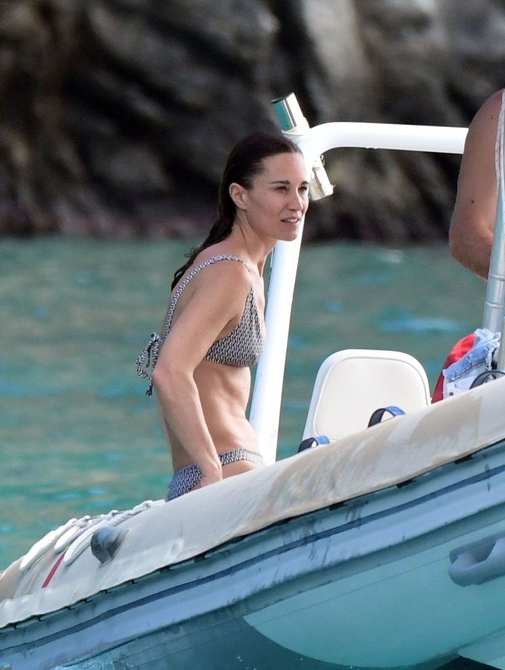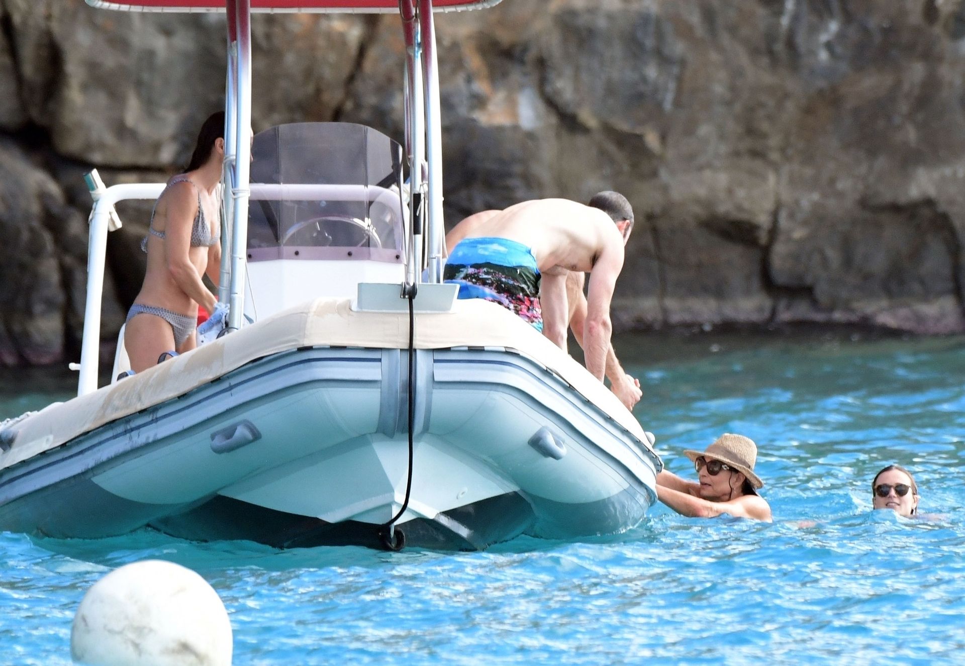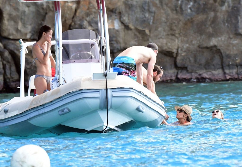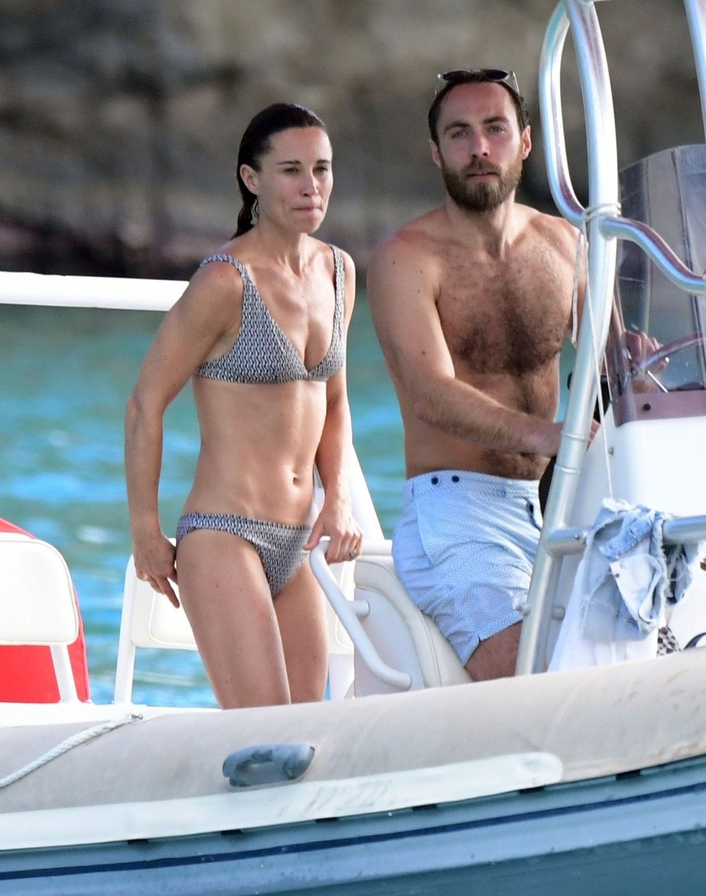 La socialité Pippa Middleton, su hermano James Middleton y su esposo James Matthews, disfrutan de un paseo en barco a bordo de una pequeña embarcación en St. Barths, 30/12/2019.