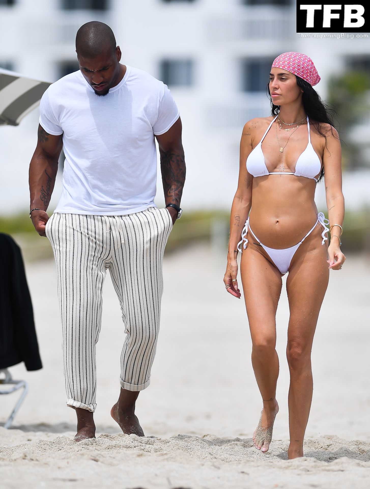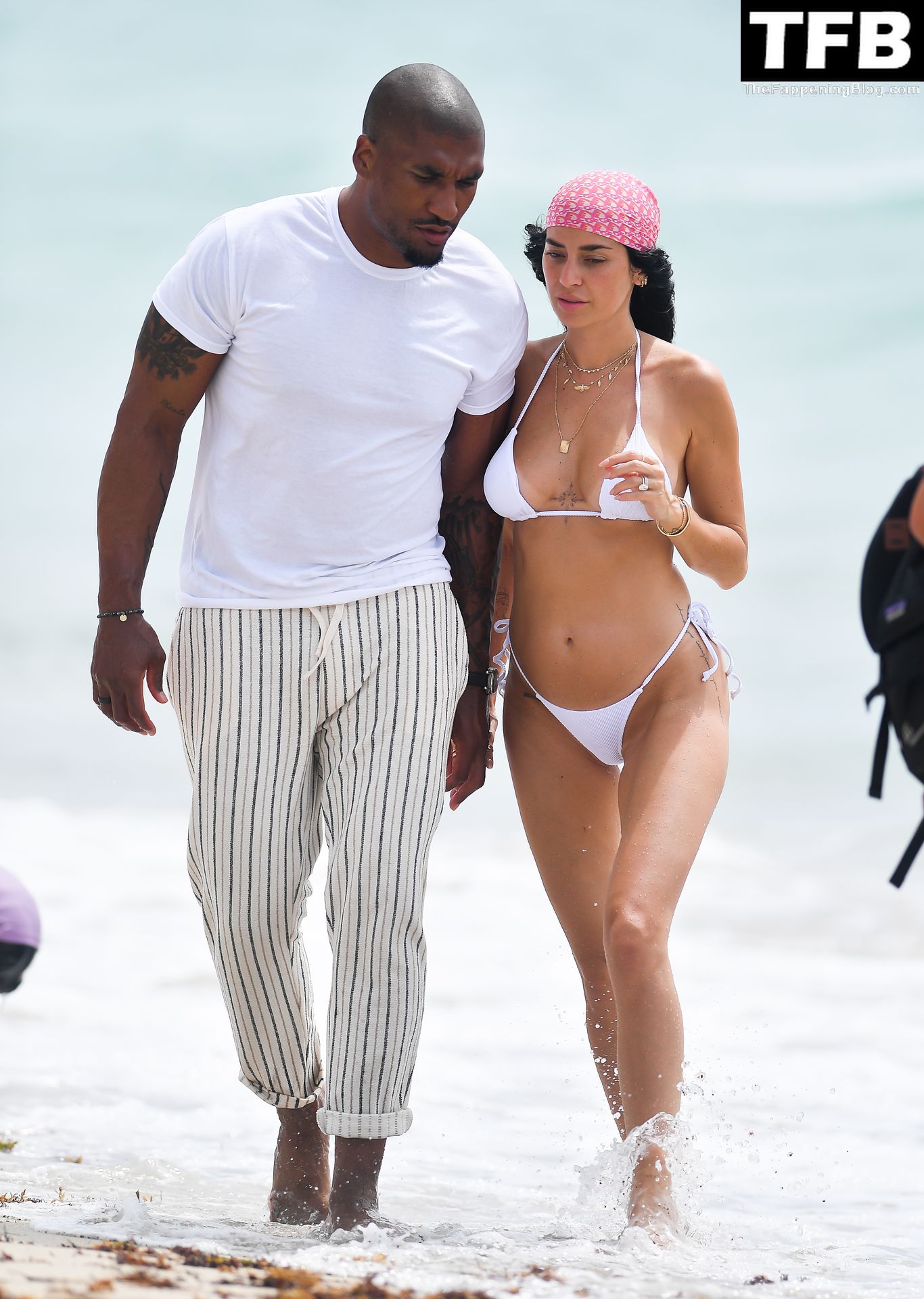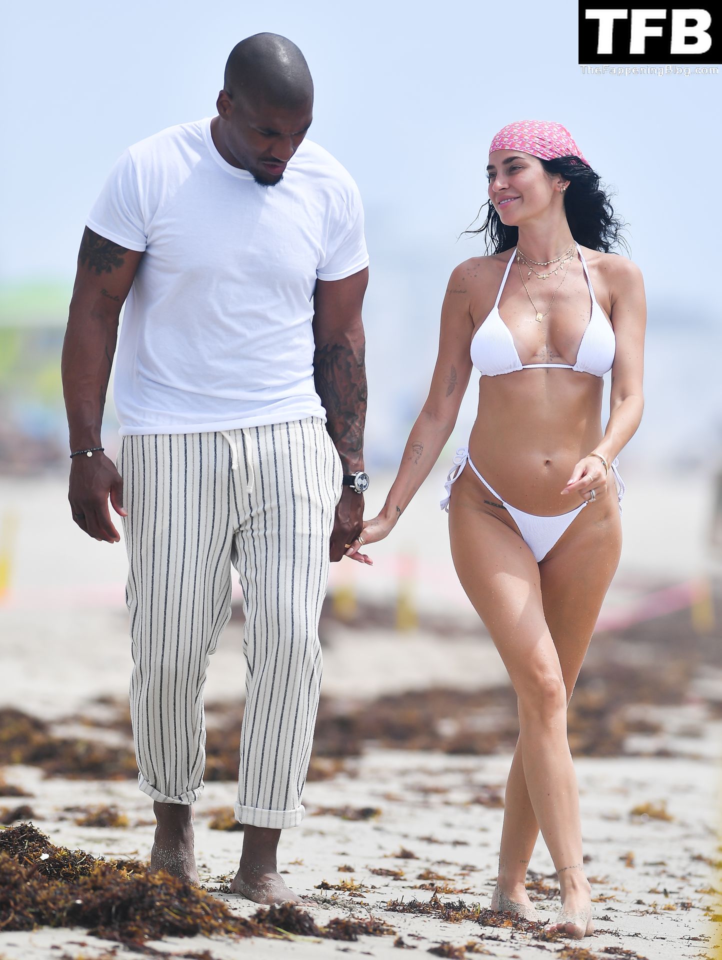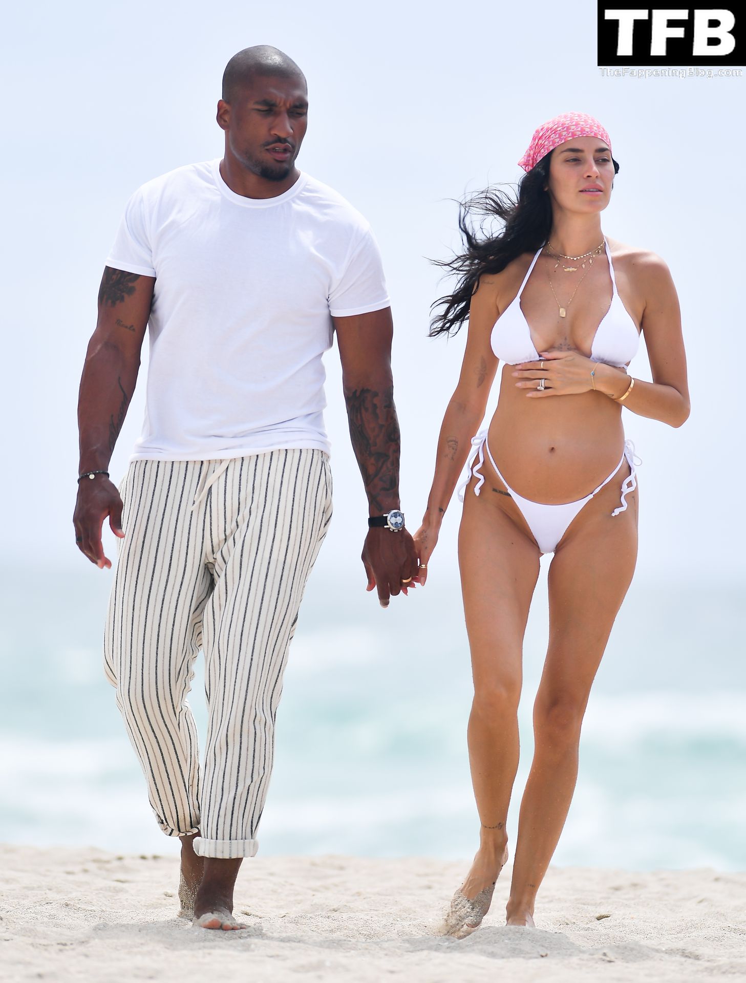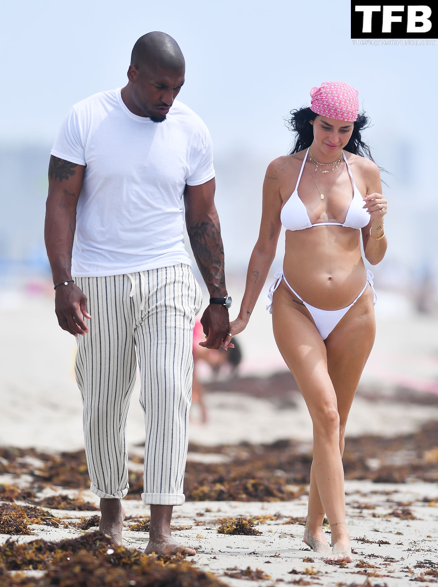 Nicole Williams es vista caminando por la playa después de anunciar su embarazo durante la Semana de la Natación 2022 en Miami, Florida, 17/07/2022. Nicole Williams y su esposo Larry English disfrutaron de un día en la playa mientras se tomaban de la mano.
