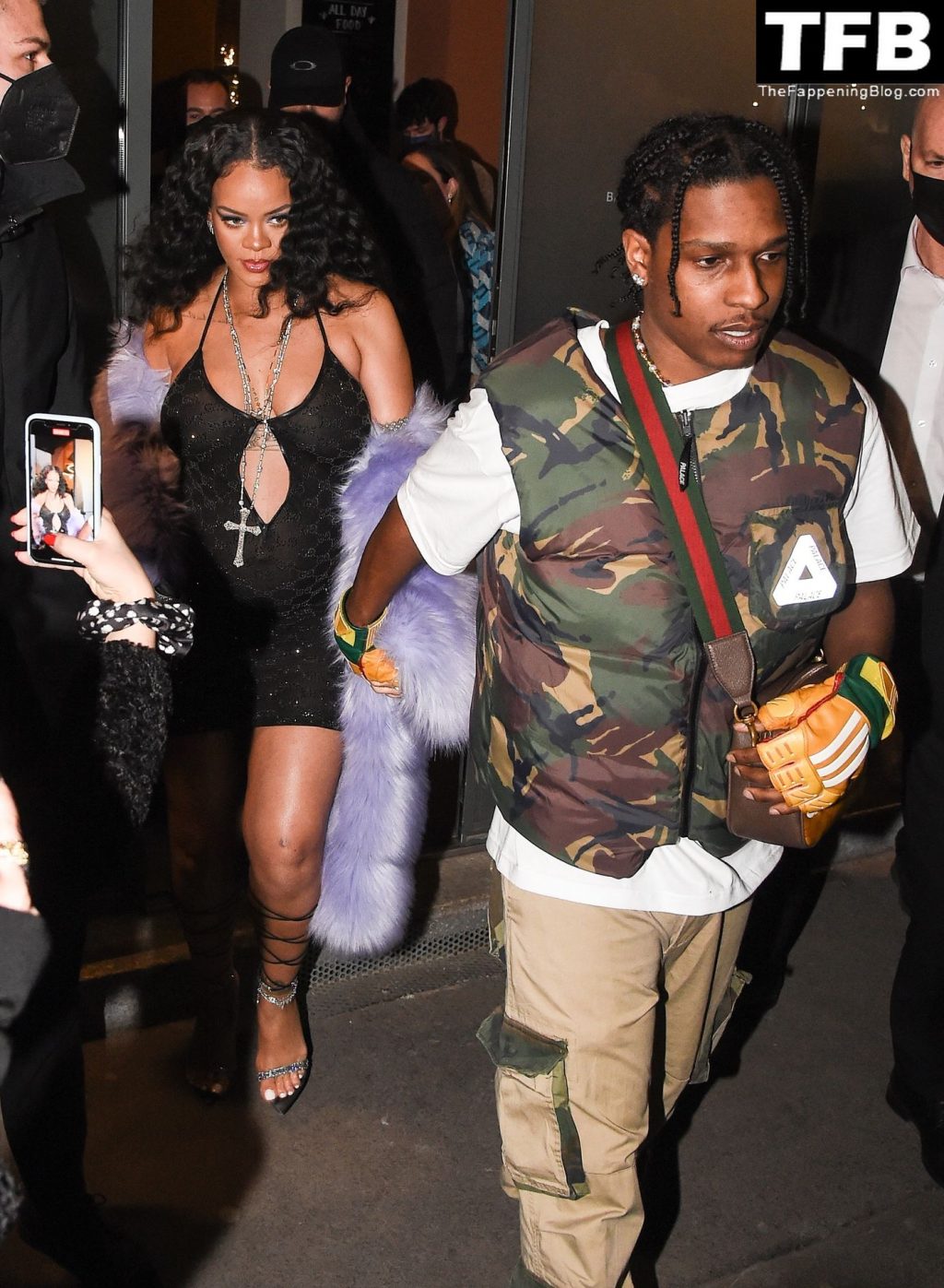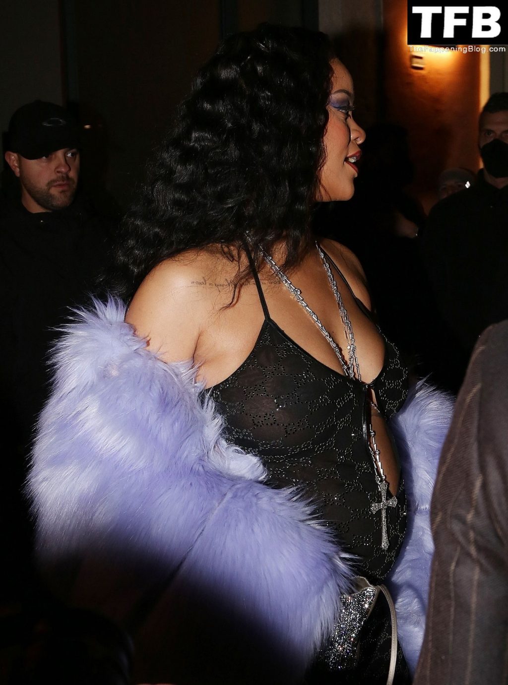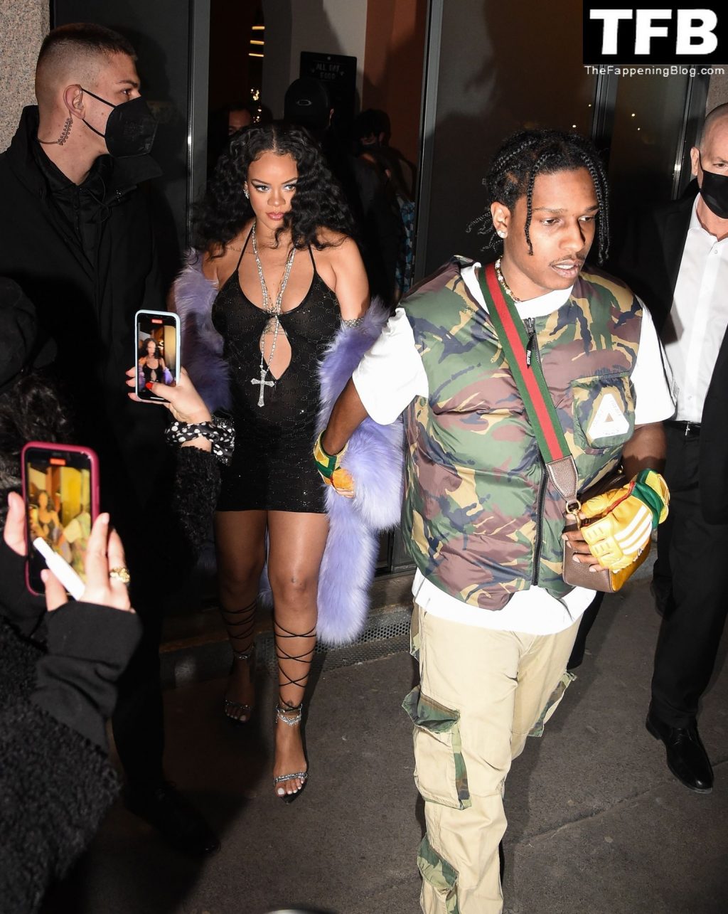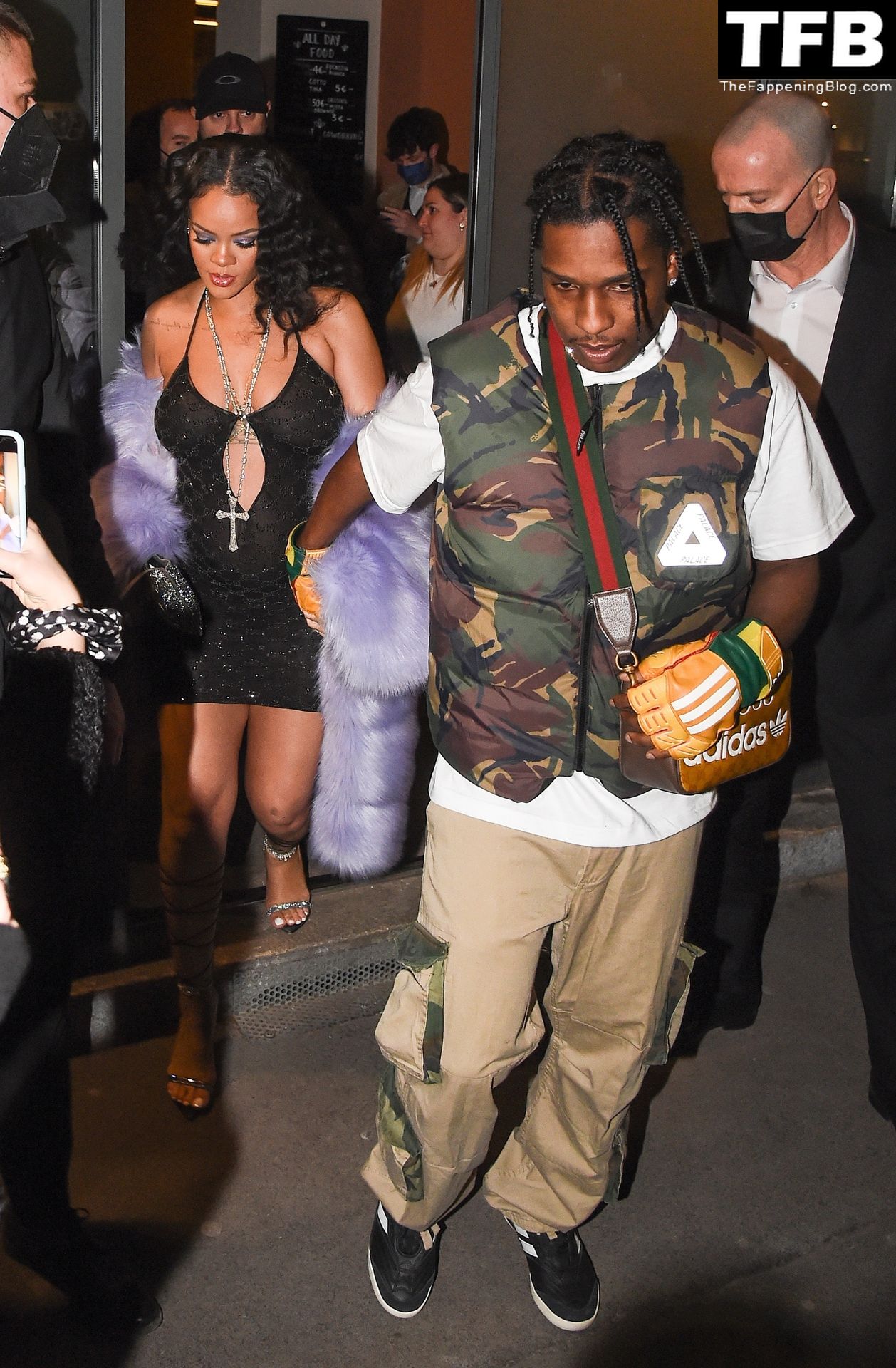 Rihanna embarazada muestra sus pechos desnudos con un vestido transparente en Milán (51 fotos)