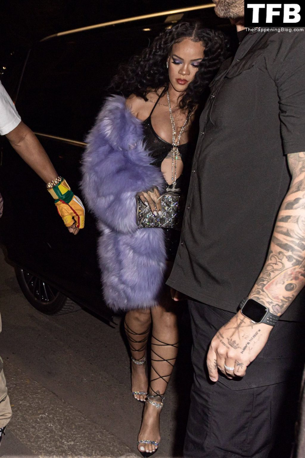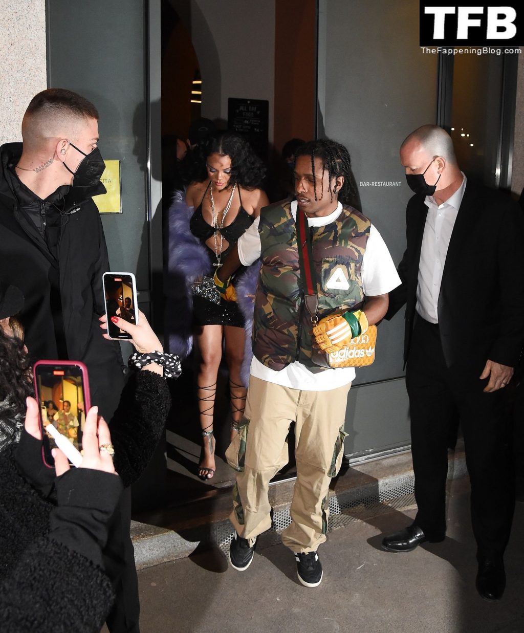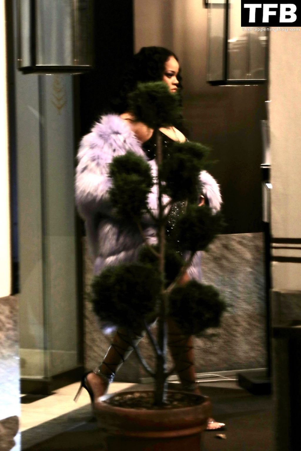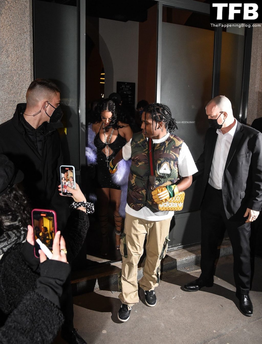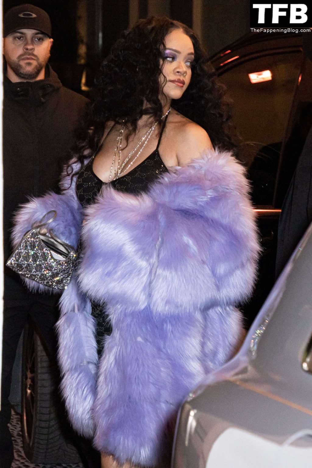 Rihanna embarazada muestra sus pechos desnudos con un vestido transparente en Milán (51 fotos)