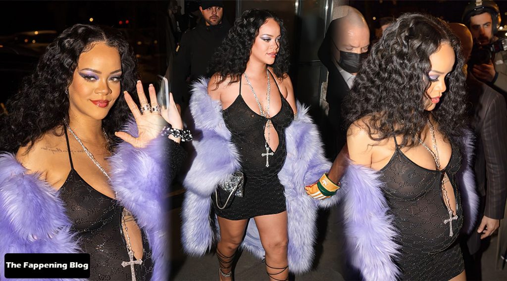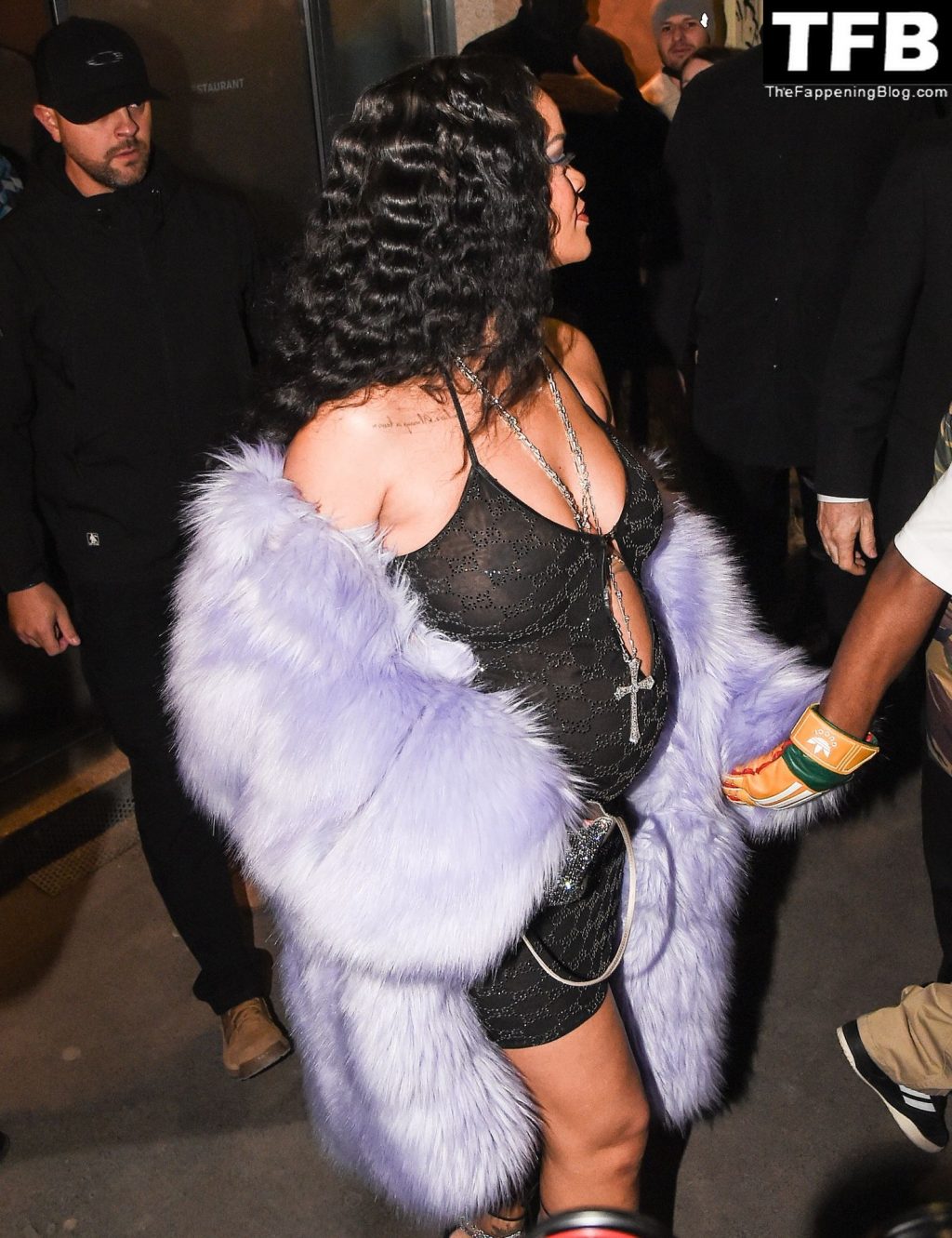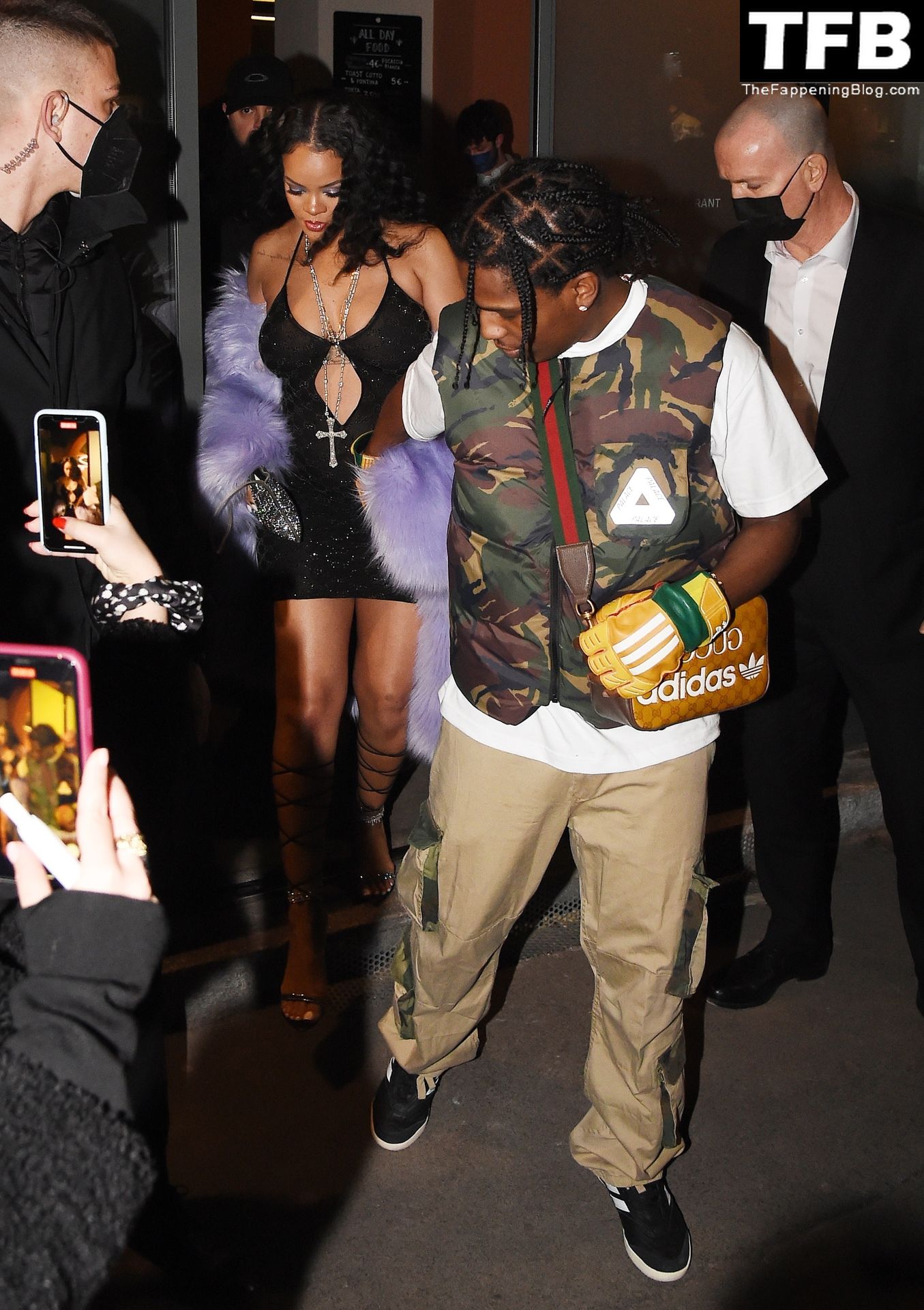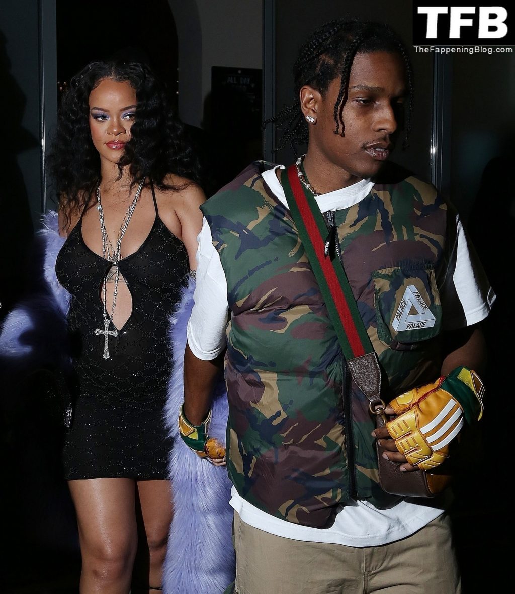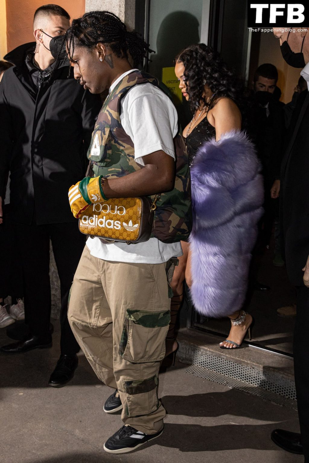 Rihanna embarazada muestra sus pechos desnudos con un vestido transparente en Milán (51 fotos)