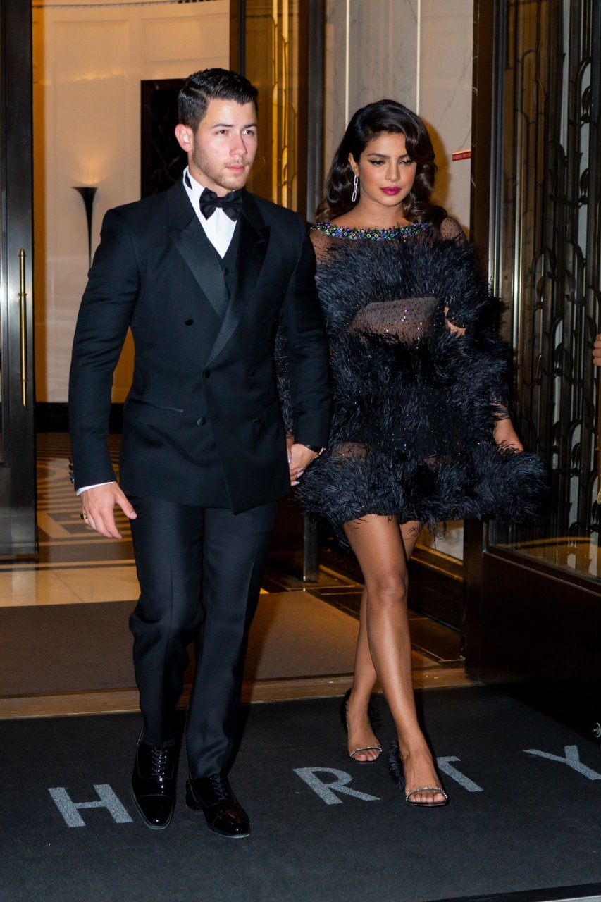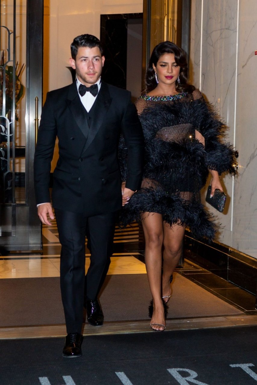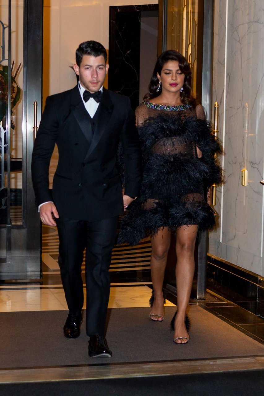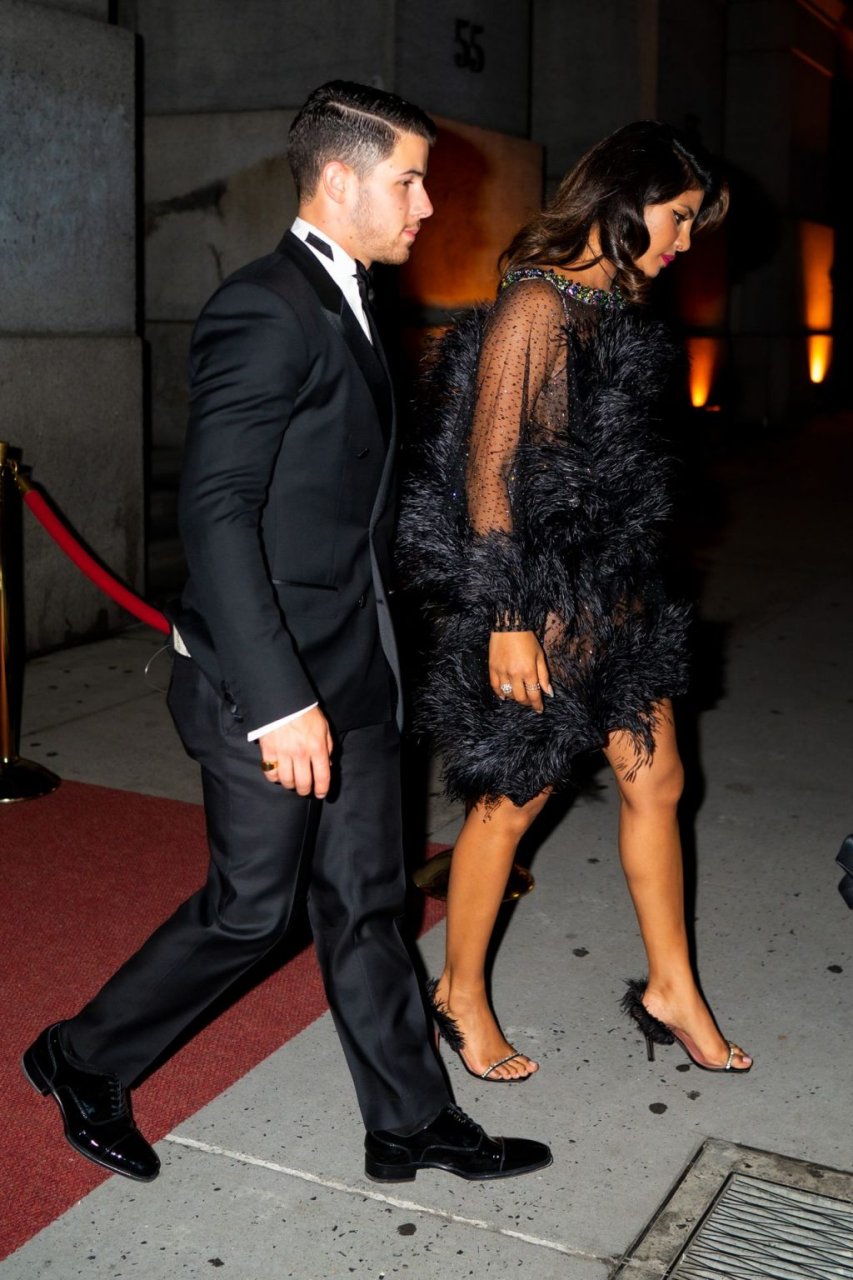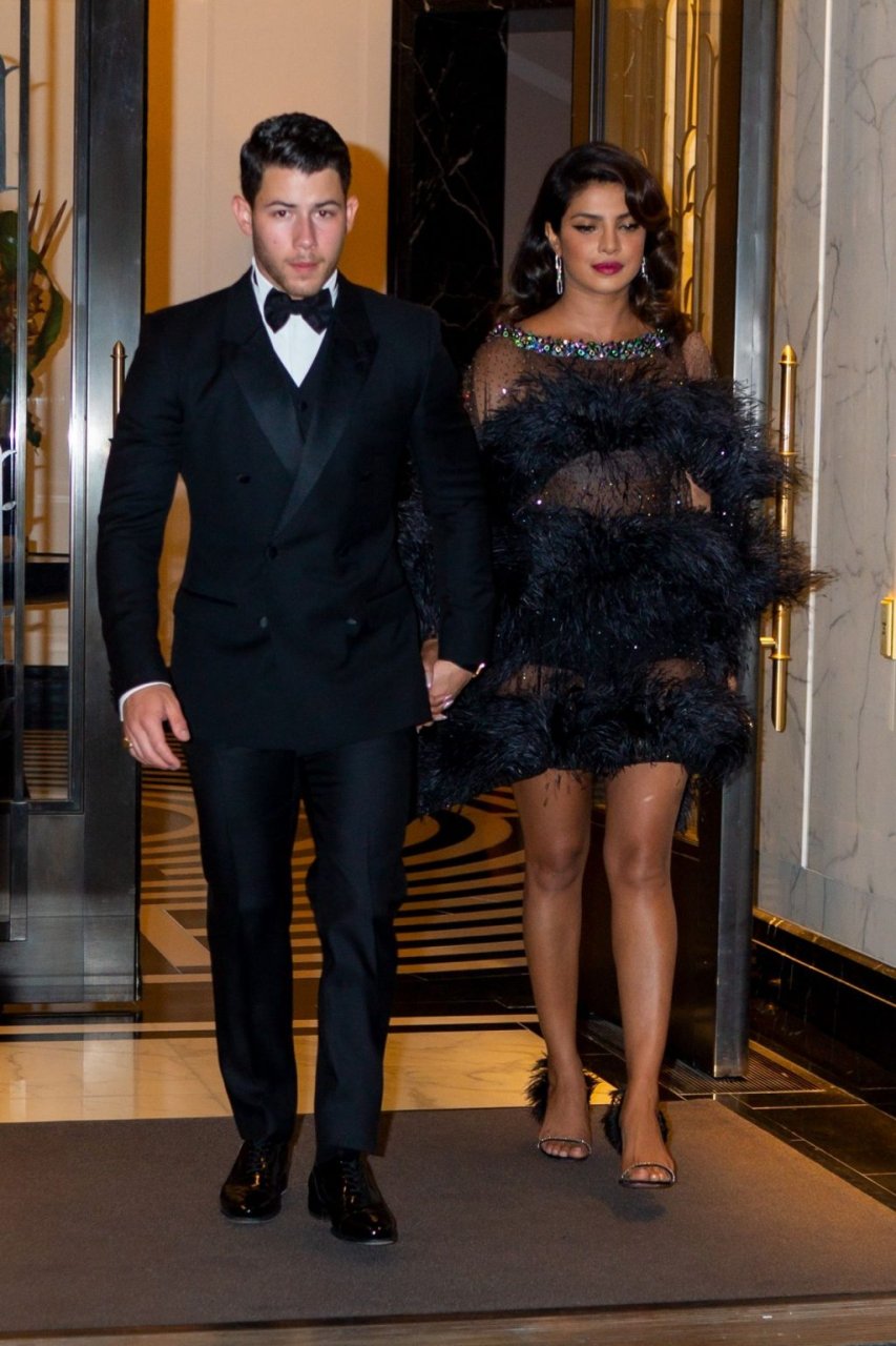 Joe y Kevin estaban vestidos con esmoquin negro mientras que Priyanka y Danielle lucían fabulosas con vestidos de cóctel de noche.