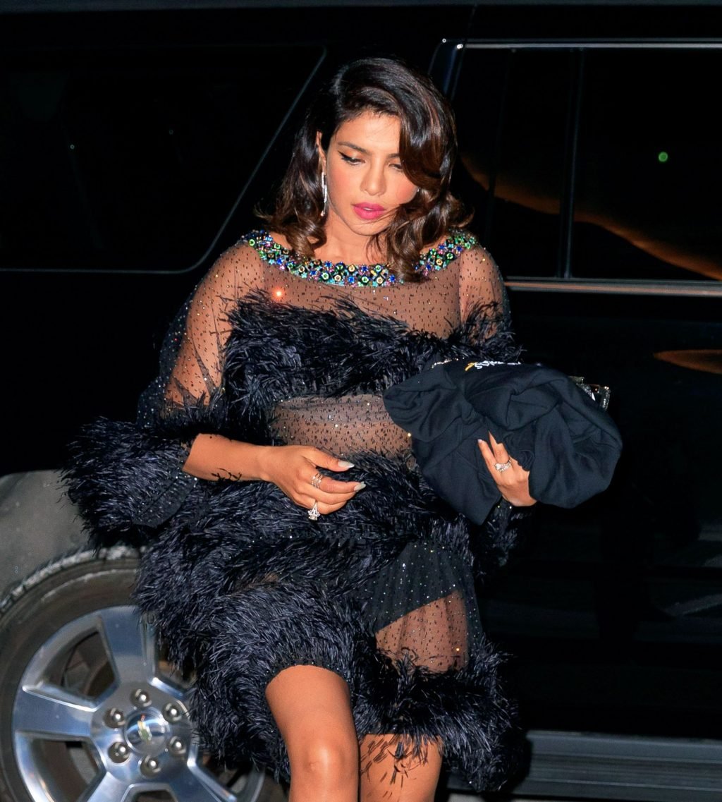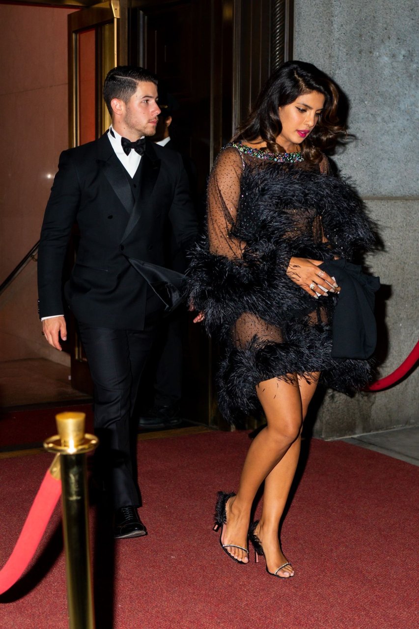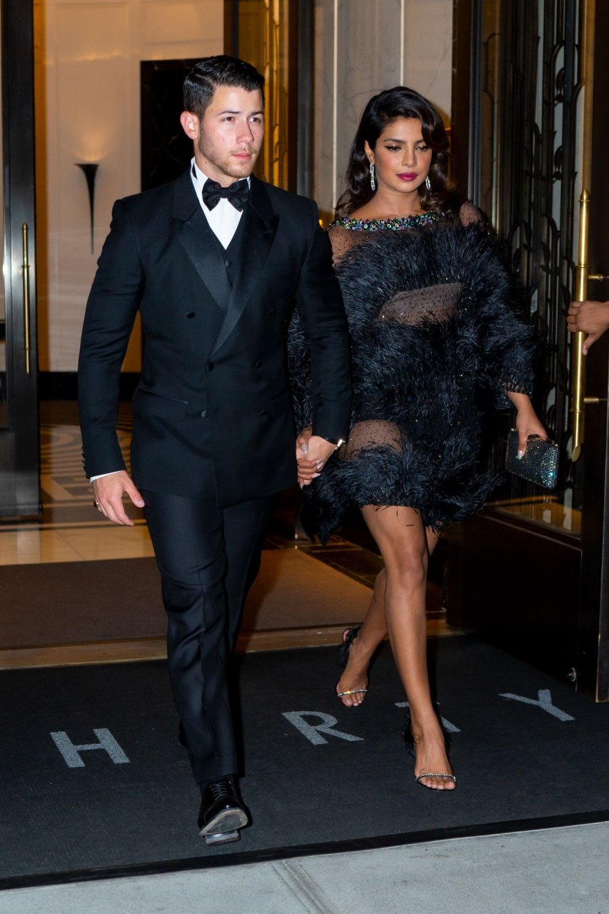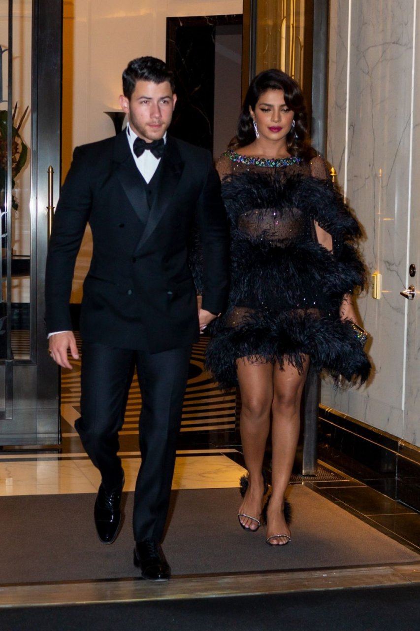Joe y Kevin estaban vestidos con esmoquin negro mientras que Priyanka y Danielle lucían fabulosas con vestidos de cóctel de noche.