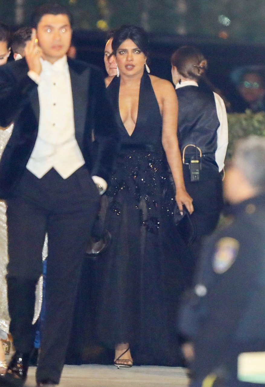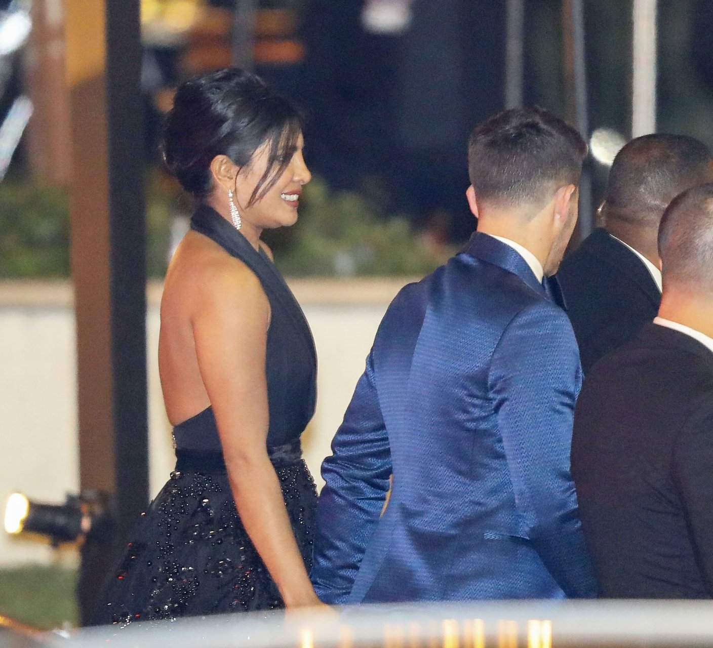 La actriz Priyanka Chopra luce un vestido sexy de escote bajo mientras acompaña a su esposo Nick Jonas en la Fiesta de los Oscar Vanity Fair 2019 en Beverly Hills, 24/02/2019. El evento se llevó a cabo en el Wallis Annenberg Center for the Performing Arts.