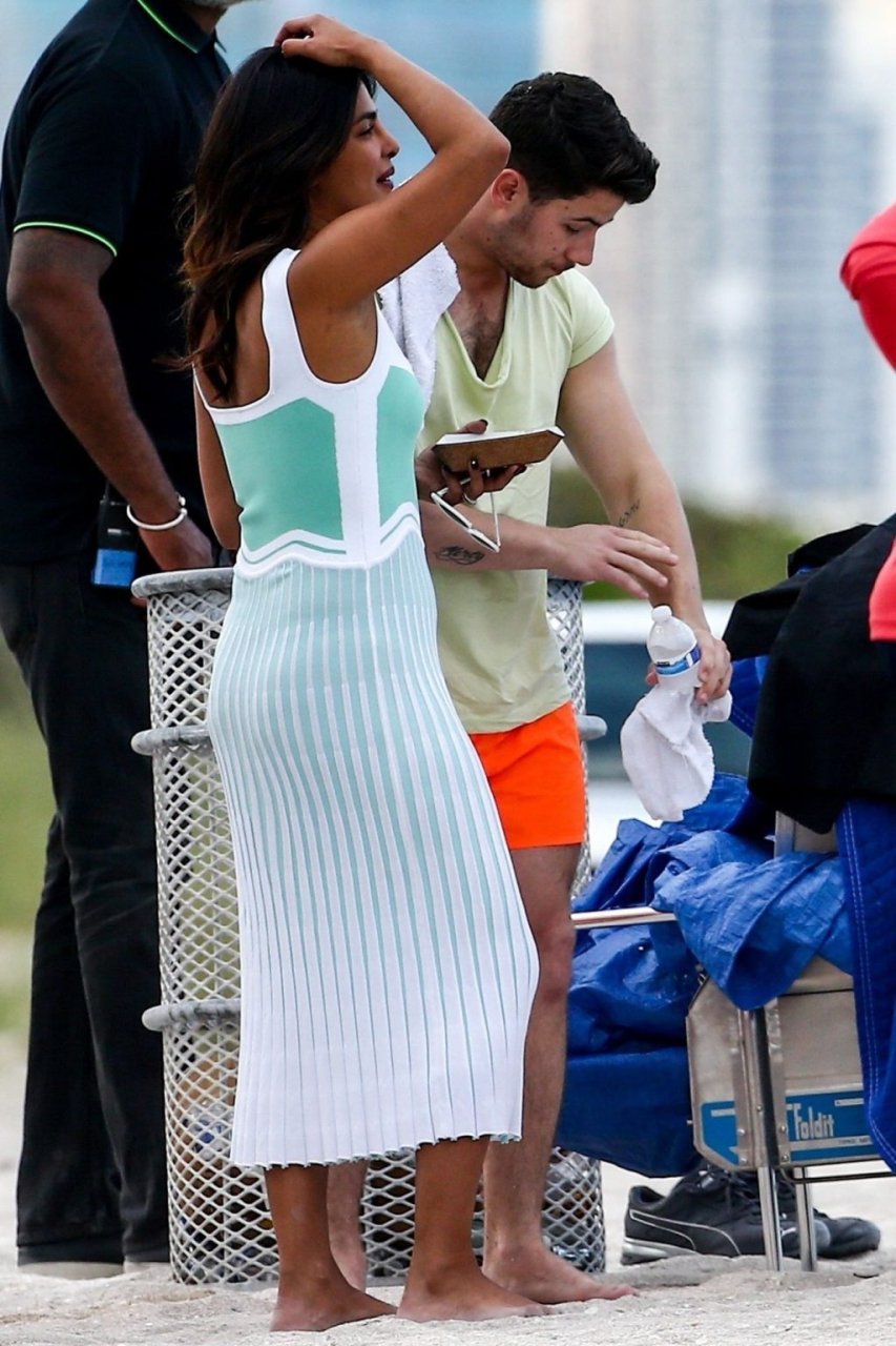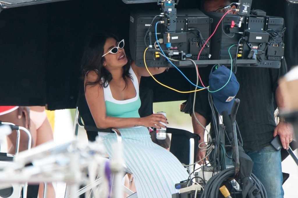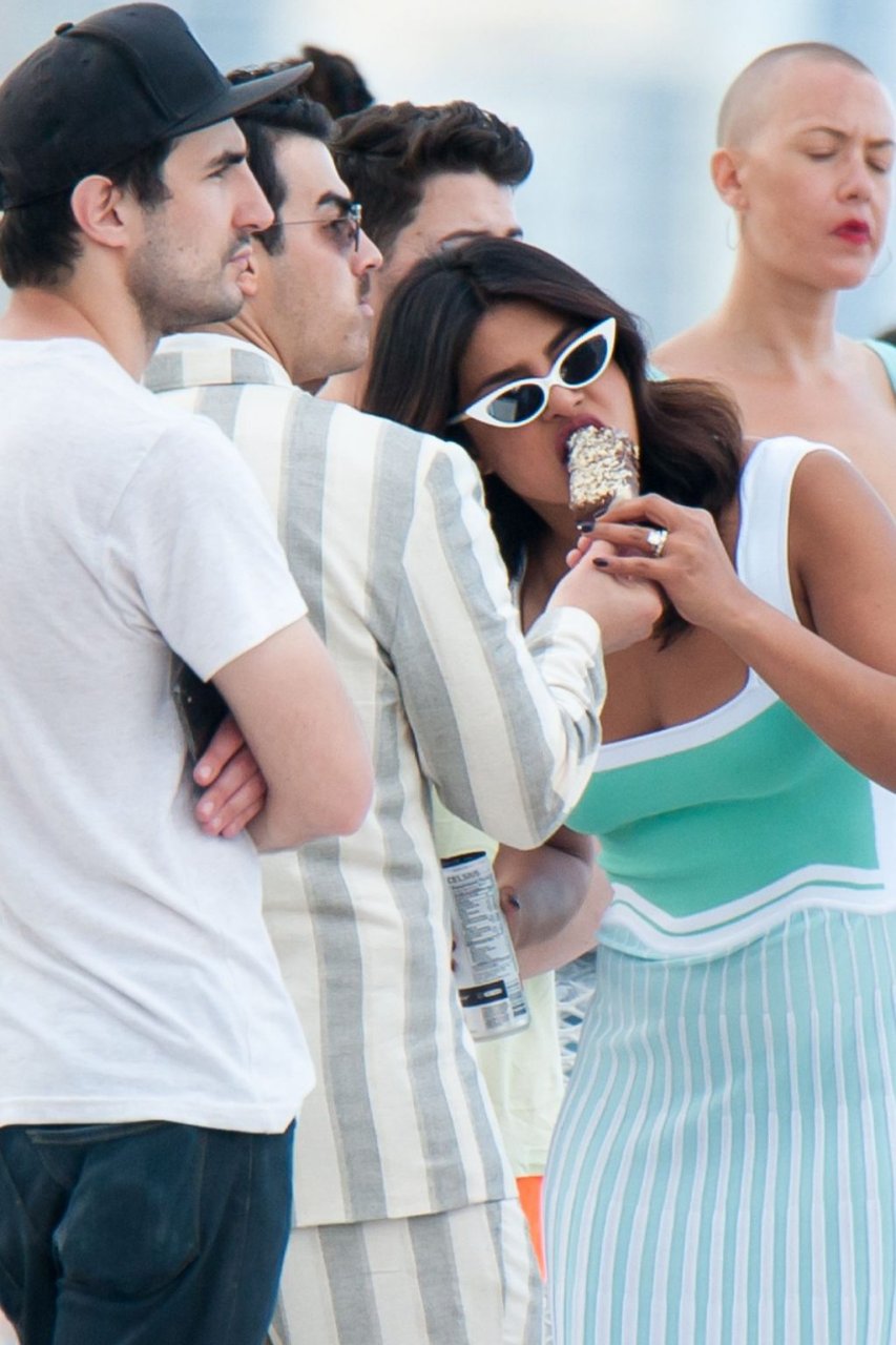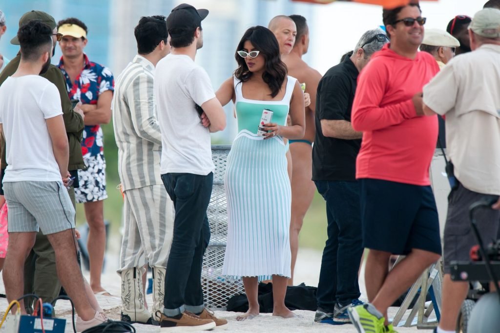 Priyanka Chopra visita a los hermanos Jonas mientras filman su último video musical en la playa de Miami, 26/03/2019. Priyanka disfrutó de un poco de hielo y fue vista observando las escenas más recientes en motos mientras pasaba la tarde viendo a los hermanos trabajar.