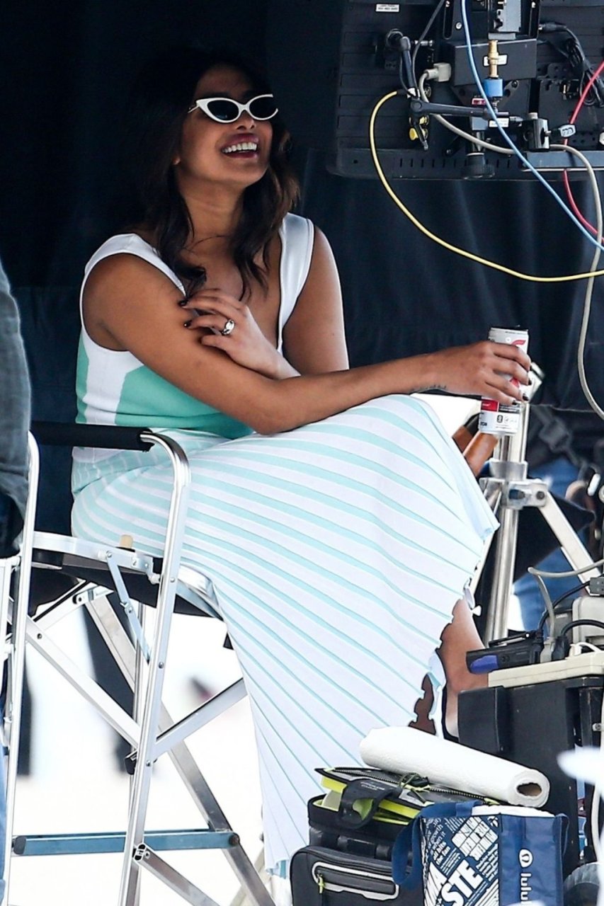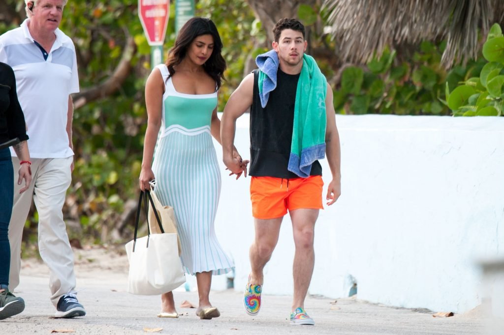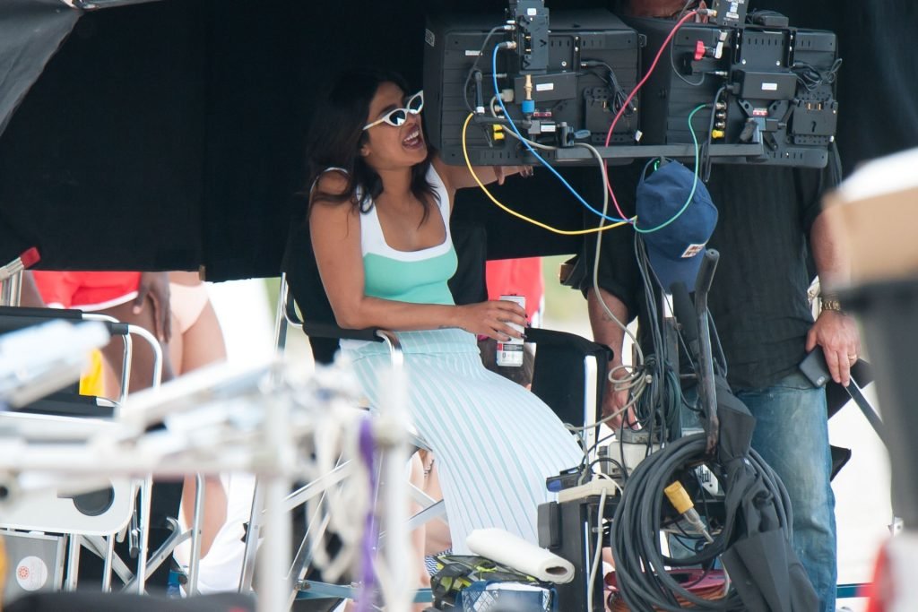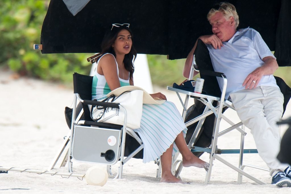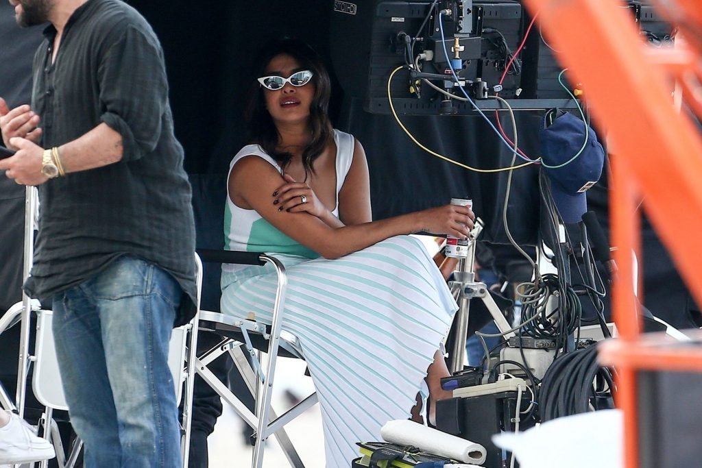 Priyanka Chopra visita a los hermanos Jonas mientras filman su último video musical en la playa de Miami, 26/03/2019. Priyanka disfrutó de un poco de hielo y fue vista observando las escenas más recientes en motos mientras pasaba la tarde viendo a los hermanos trabajar.