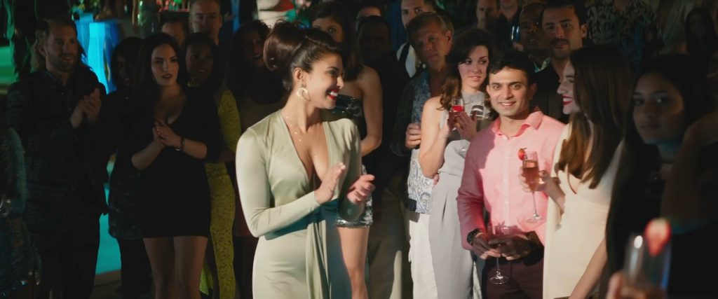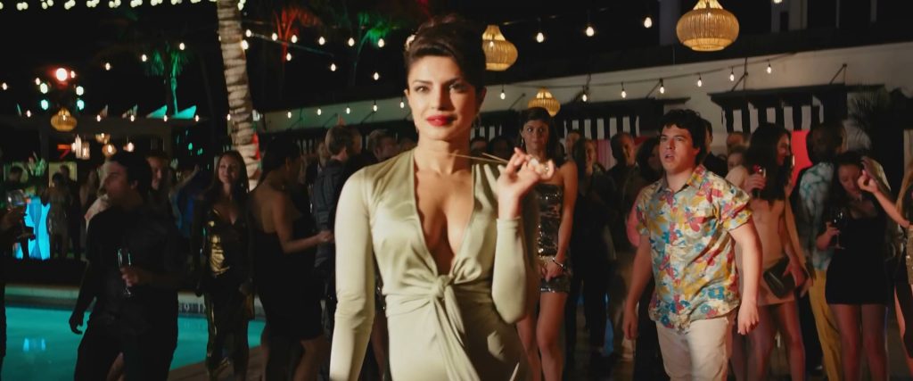 Mira la escena sexy de Priyanka Chopra en la película “Baywatch” (2017). La actriz muestra su bonito escote en la fiesta junto a la piscina.