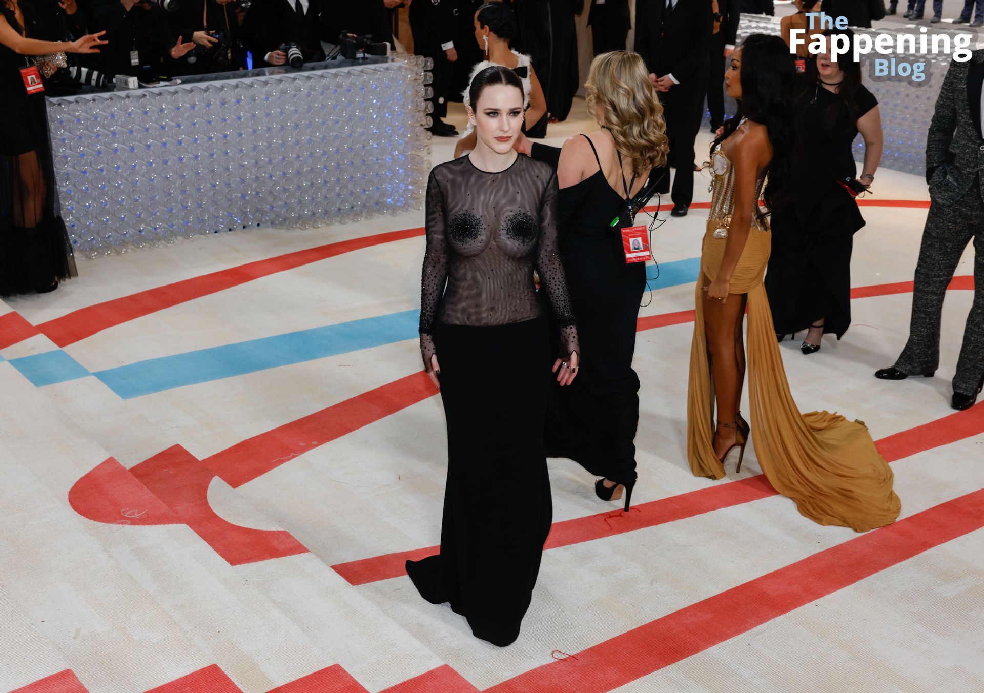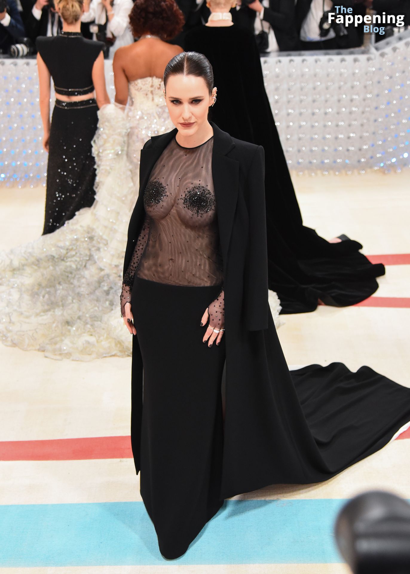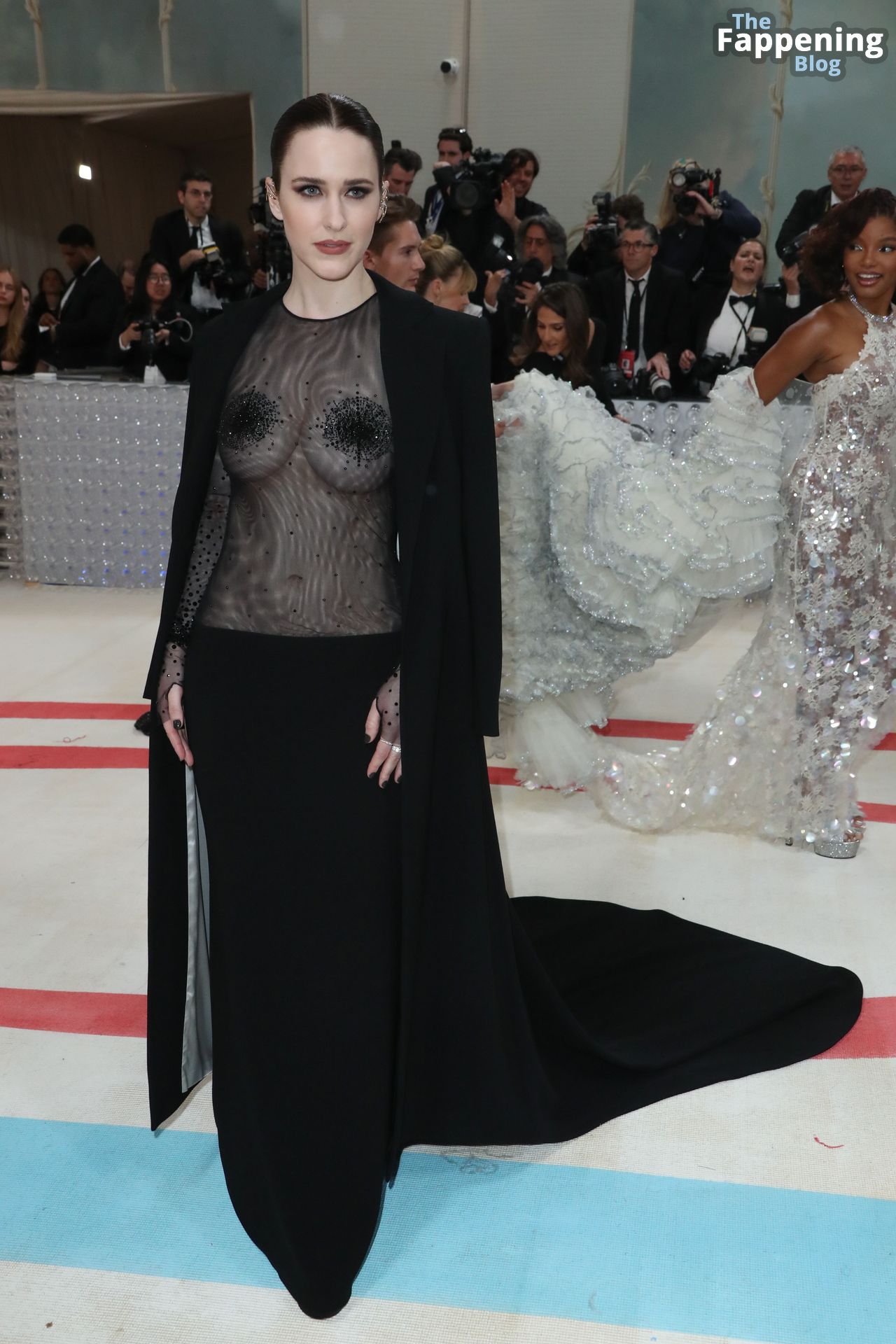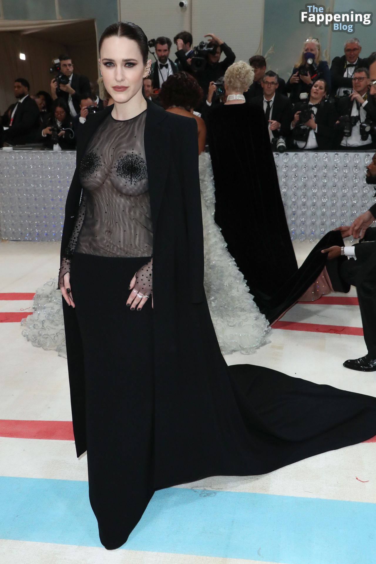 Rachel Brosnahan luce hermosa con un vestido transparente sin sujetador mientras asiste al Beneficio del Instituto de Disfraces 2023 celebrando Karl Lagerfeld: Una Línea de Belleza en el Museo Metropolitano de Arte en la ciudad de Nueva York, 01/05/2023.