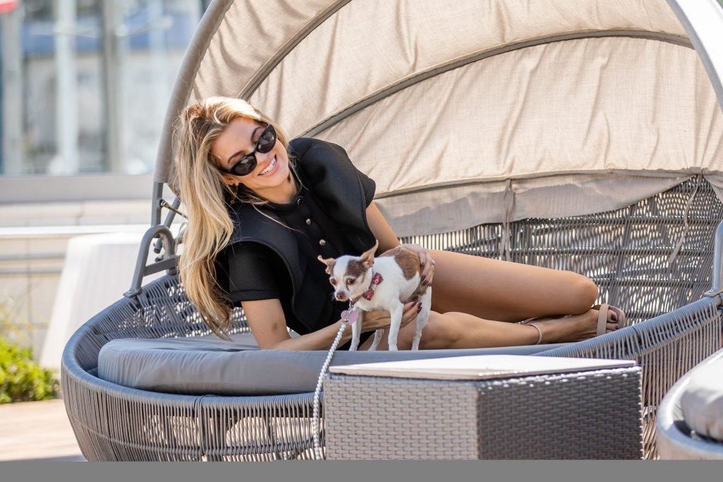 Rachel McCord fue vista en una sesión de fotos para Voir Eyewear en Los Ángeles, 29/03/2019. La impresionante rubia mostró sus esbeltas piernas junto a la piscina.