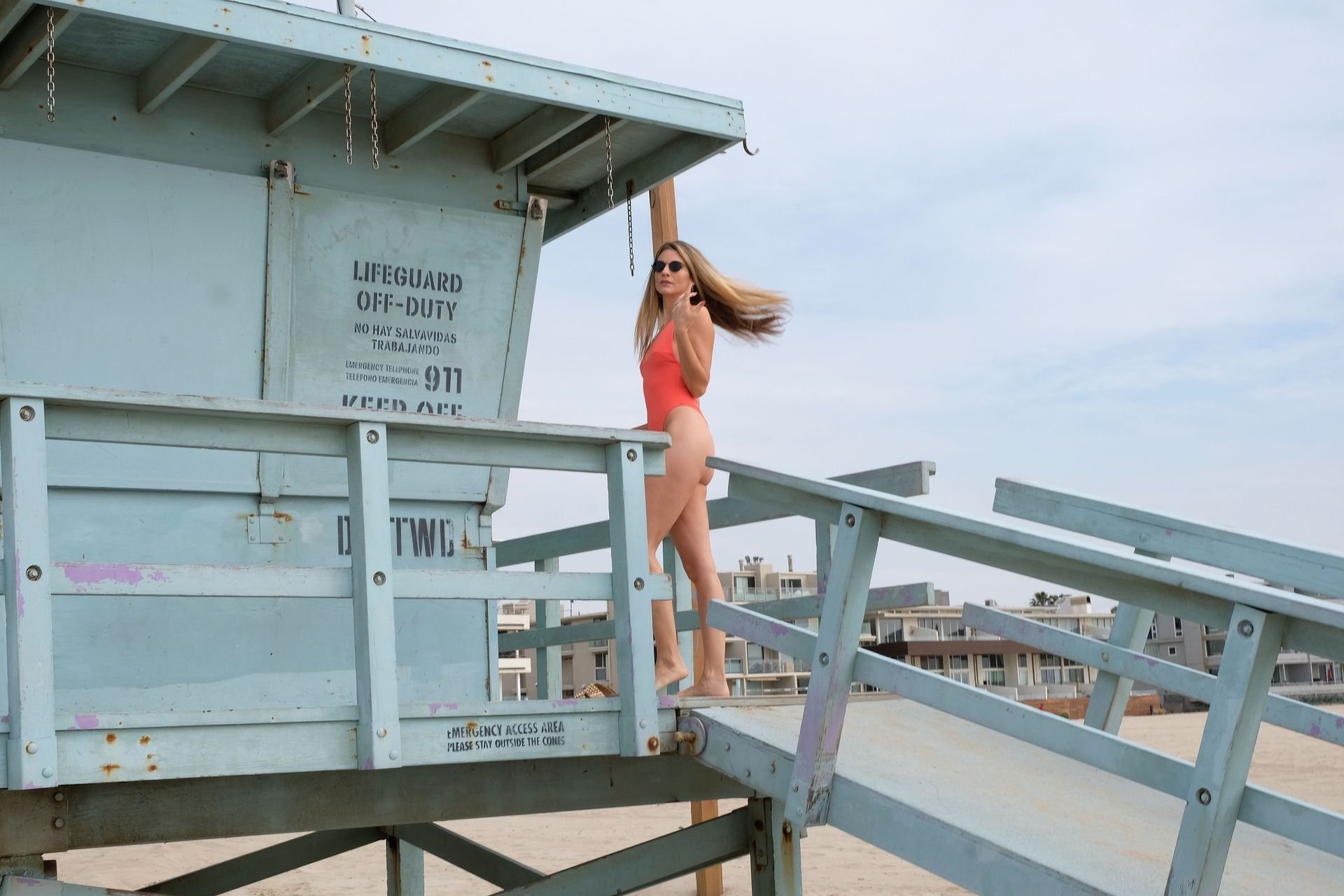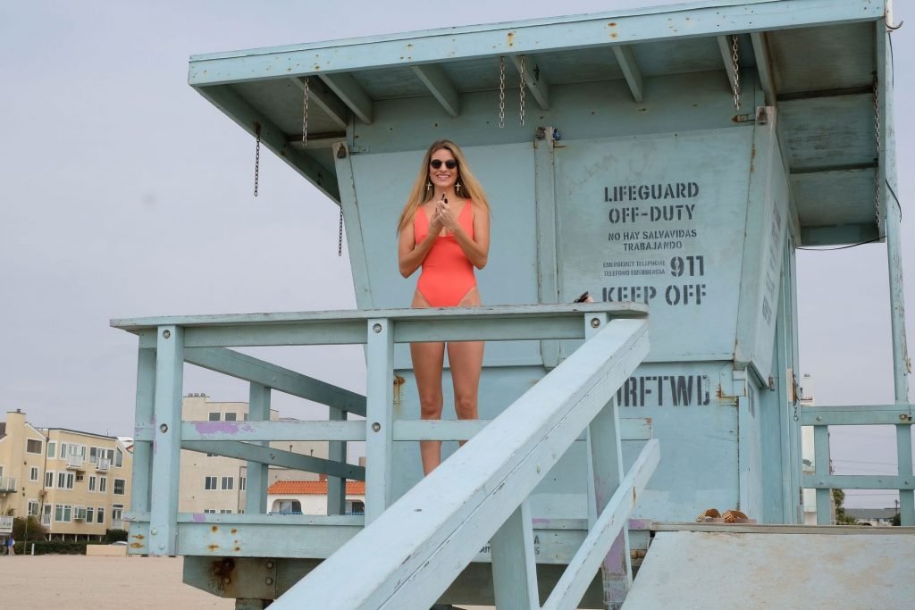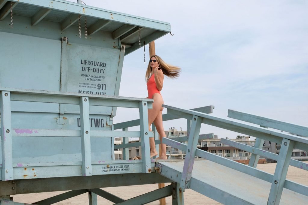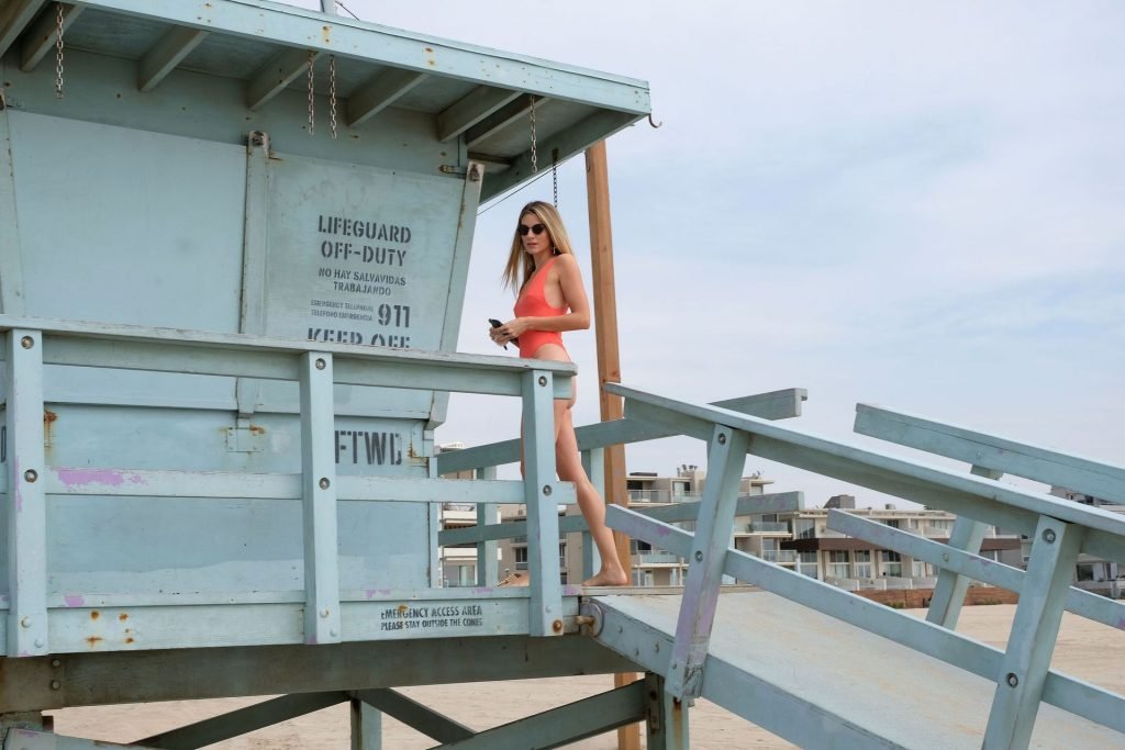 Rachel McCord fue vista disfrutando de la mañana en la playa de Venice, 20/07/2019. La influencer de 29 años mostró su cuerpo delgado con un traje de baño rojo de una pieza.