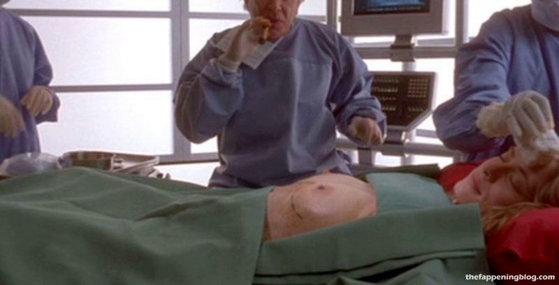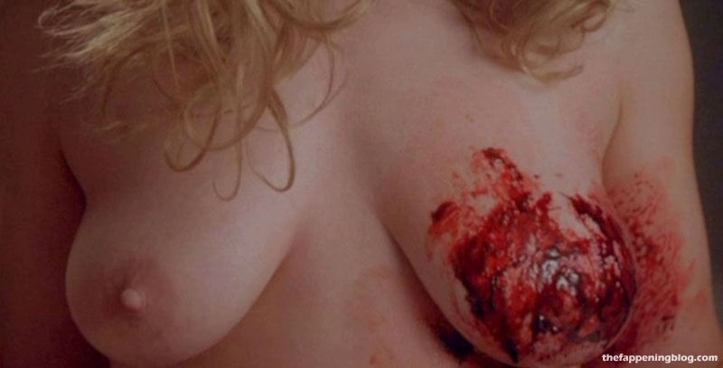 Más del busto de Rachel mientras muestra un pecho monstruoso, sangrante y palpitante y otro rosado y saludable. Perturbador… ¡y CALIENTE!