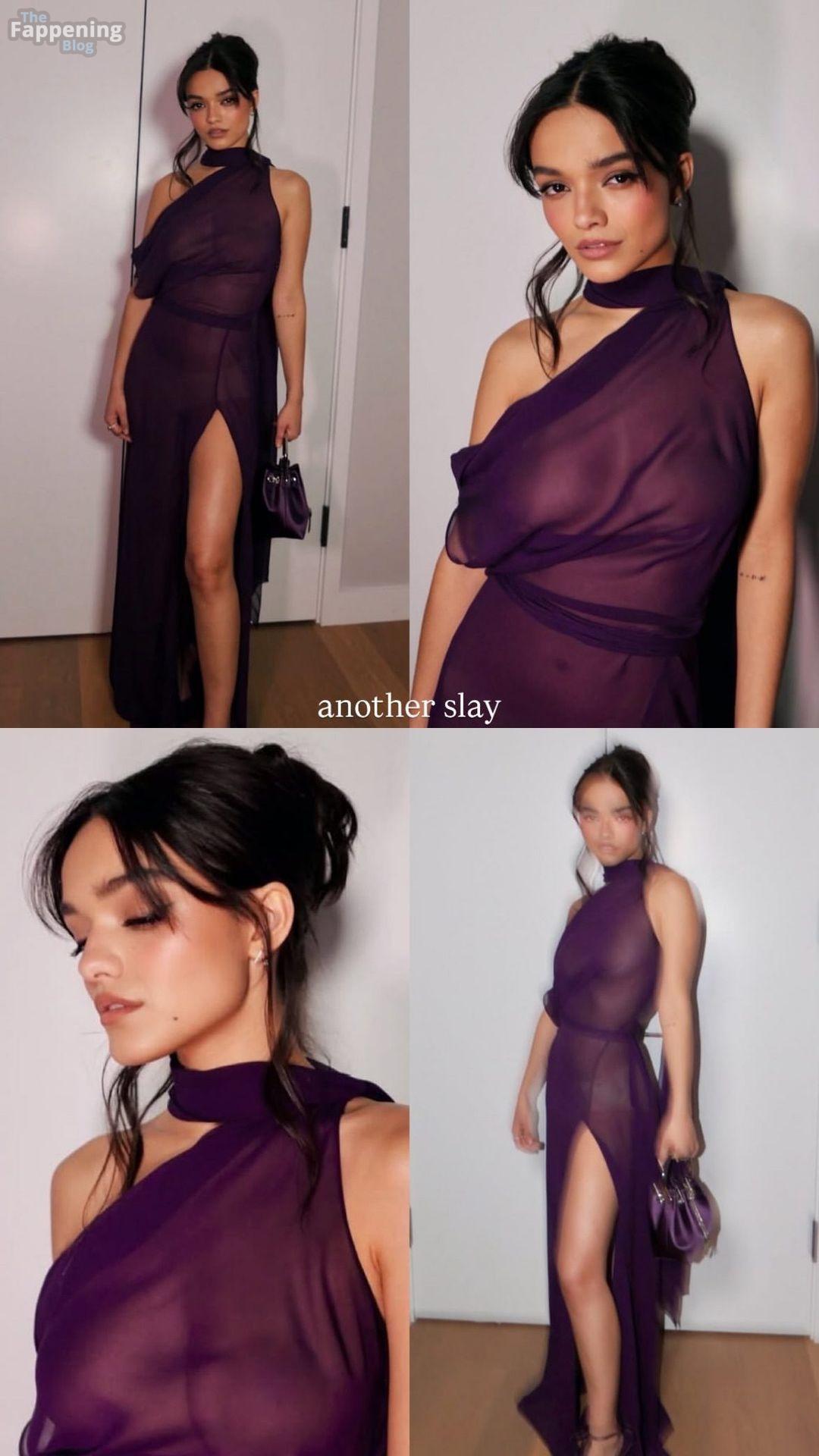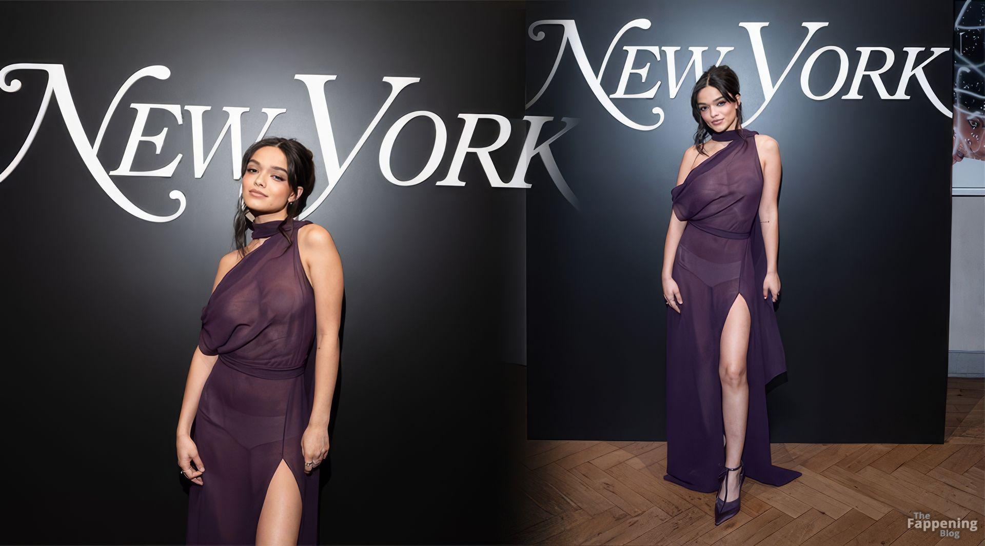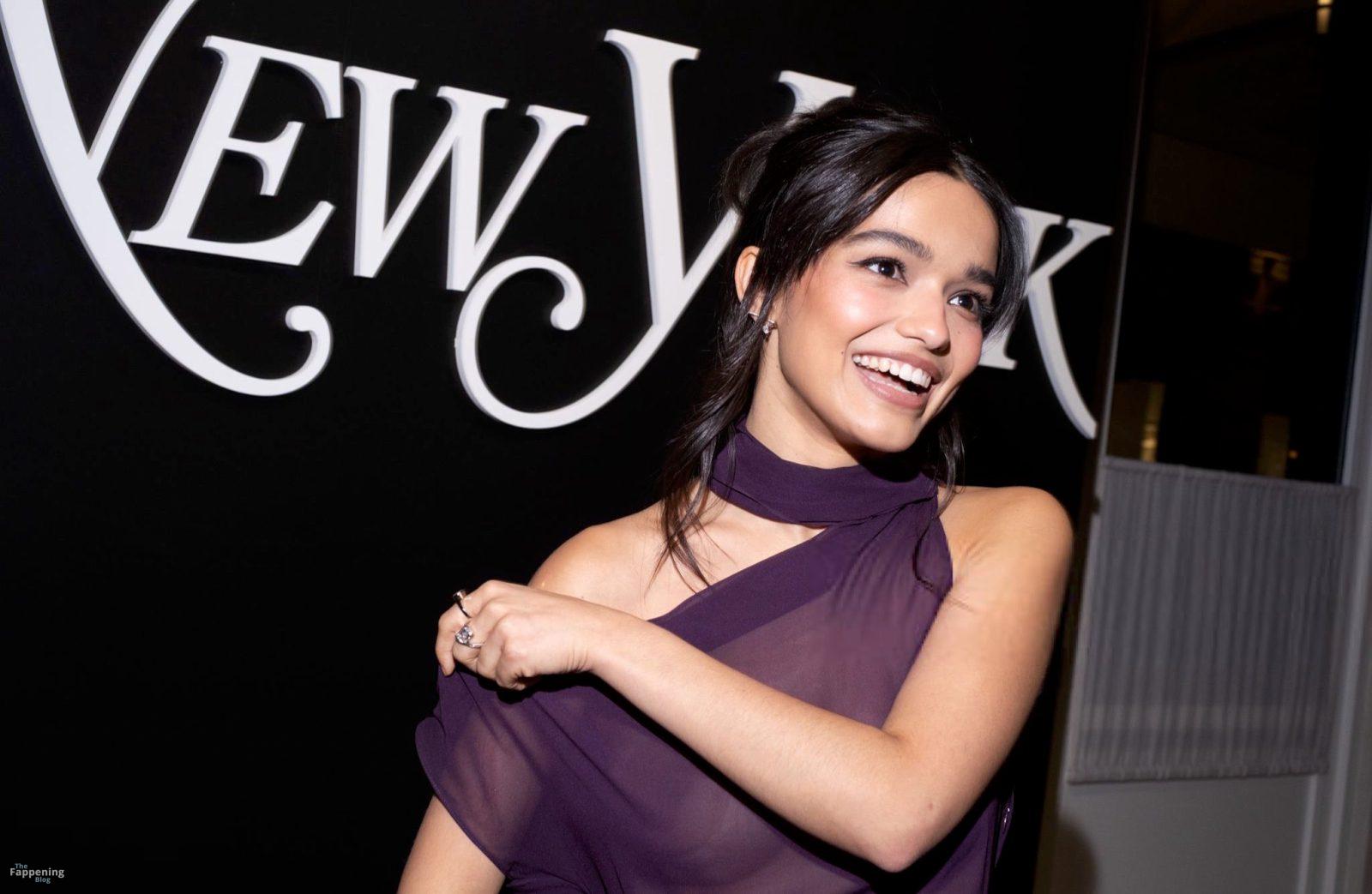 Rachel Zegler se ve en la alfombra roja del cóctel Culturati de NYMag. Llegó sin sostén con un vestido púrpura transparente que mostraba sus sexys pechos con pastillas.