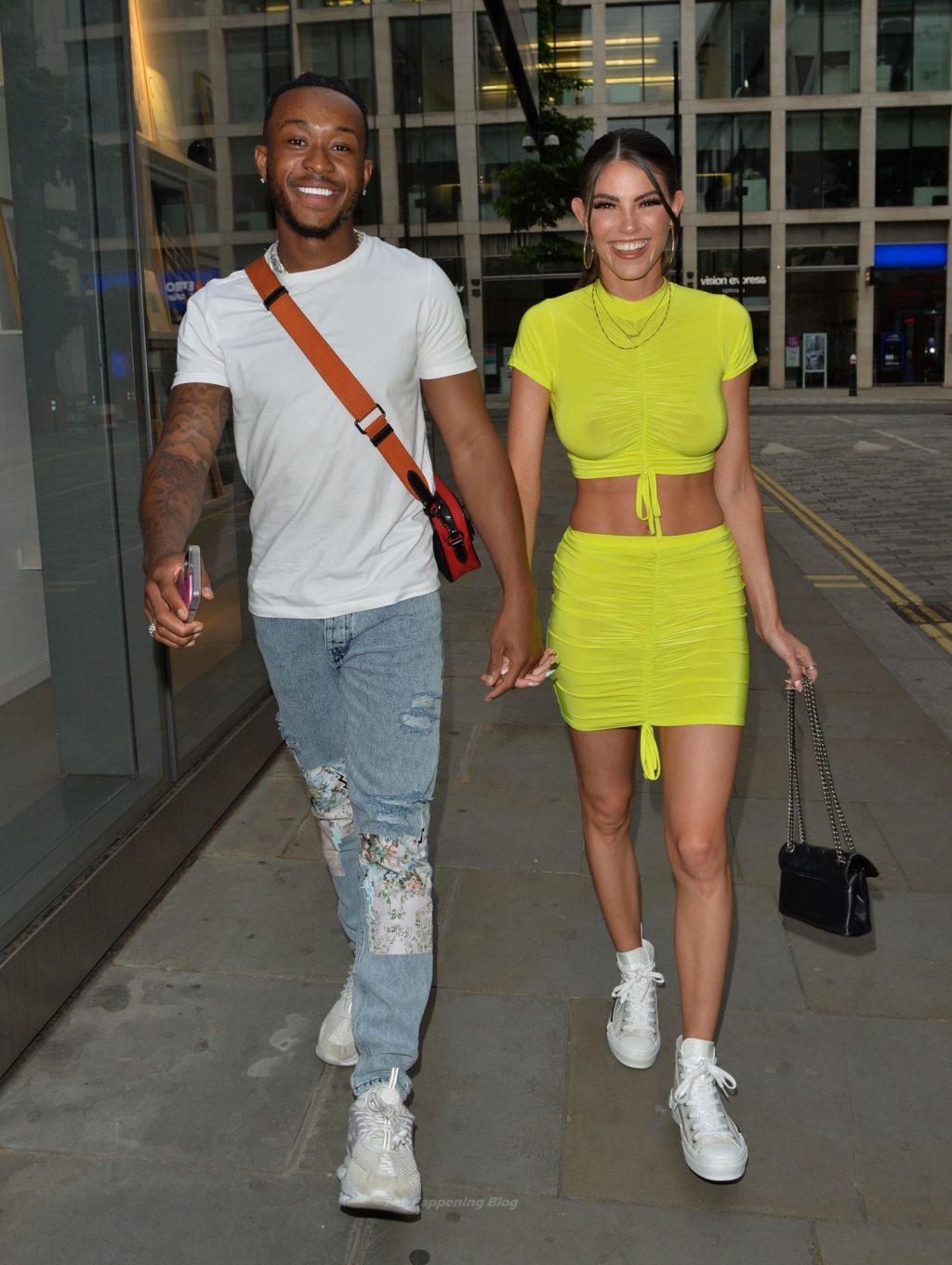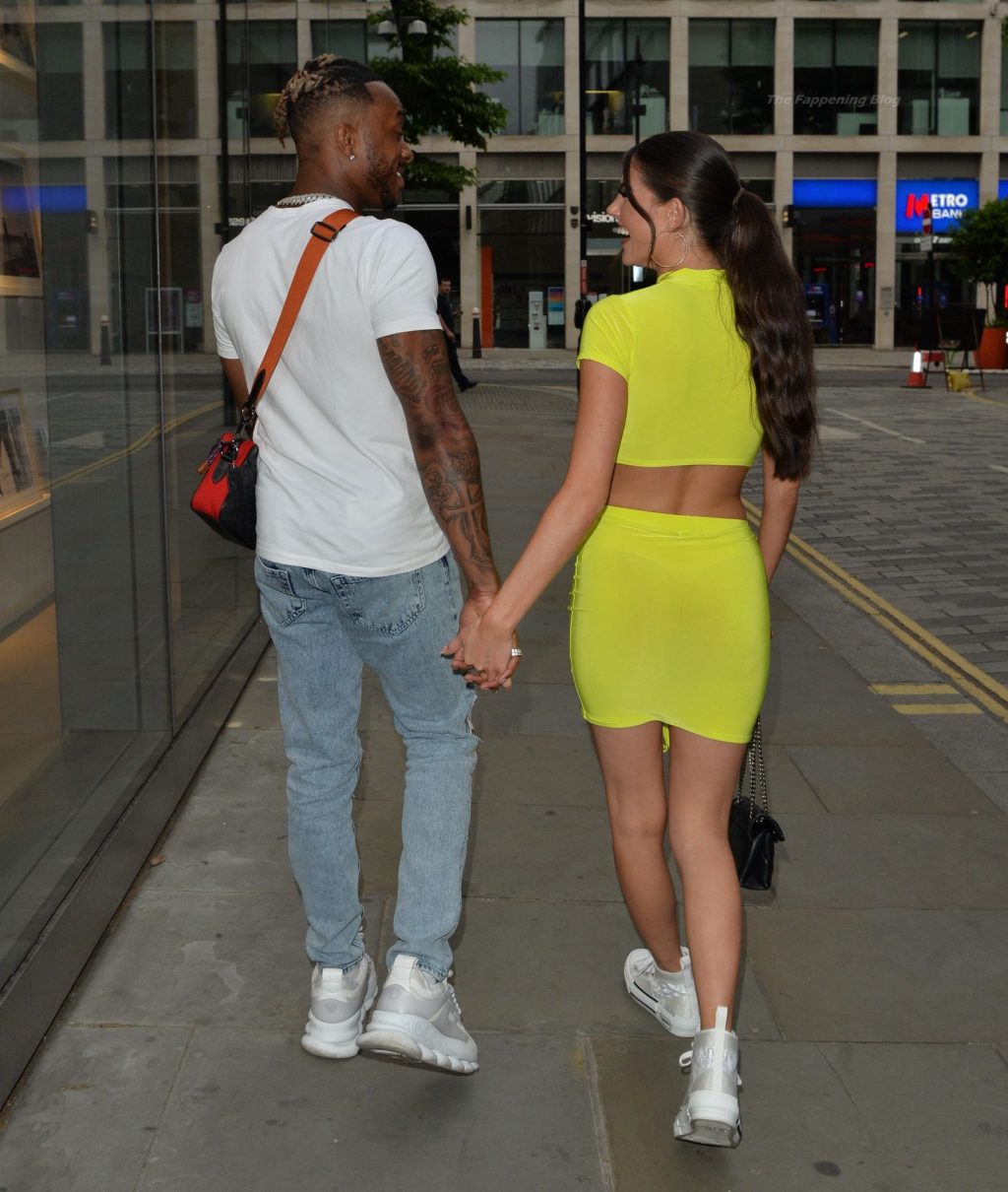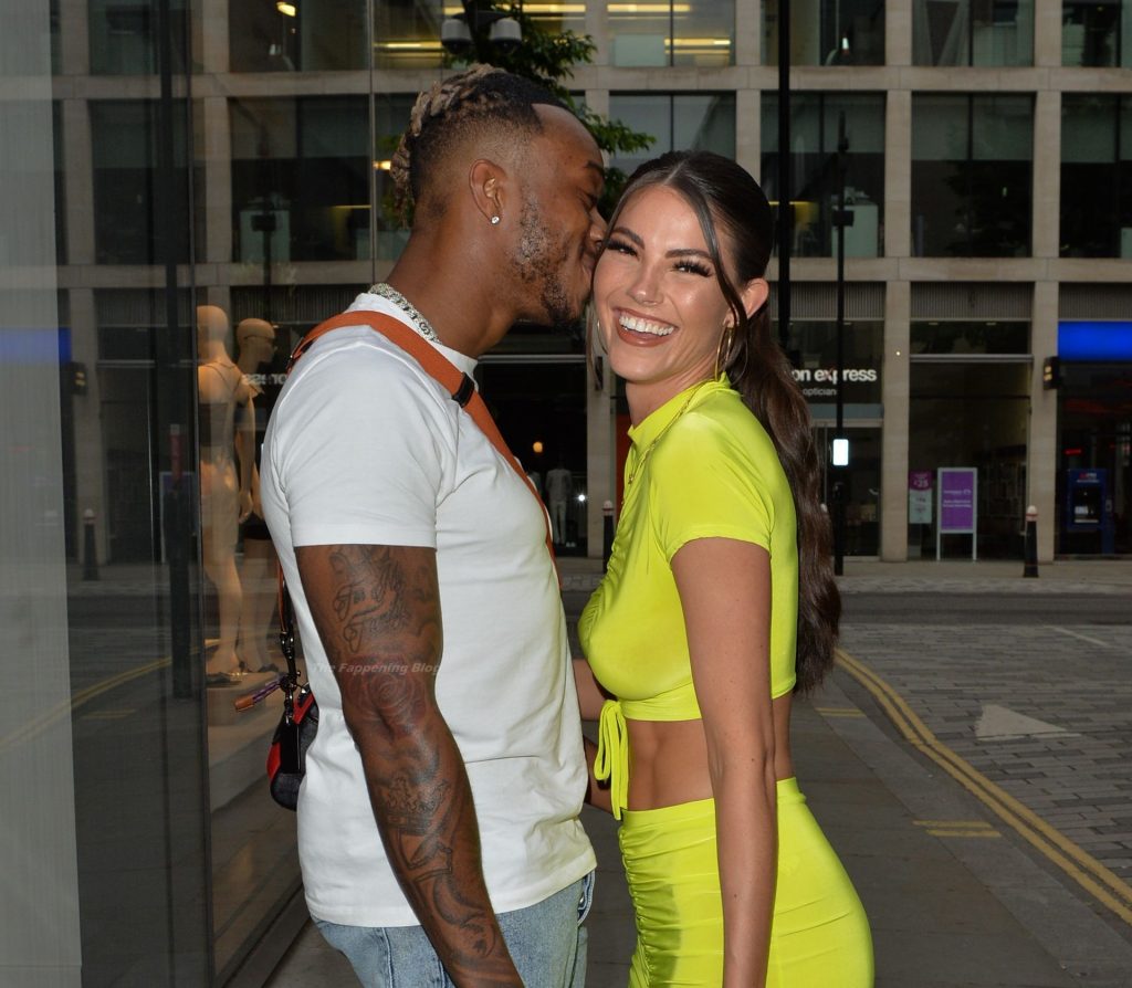 Love Island estrellas Rebecca Gormley y Biggs Chris son vistos saliendo de la azotea de Madison después de disfrutar juntos de la cena y las bebidas – Londres, 15/06/2021.