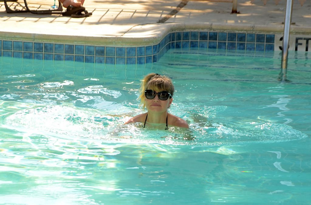 En los días de showgirls y striptease, me la habría follado. ¡Ahora, ni hablar! Cuando cumples 40 deberías usar más ropa, no menos, y más en una piscina pública, ¡probablemente haya niños pequeños ahí!