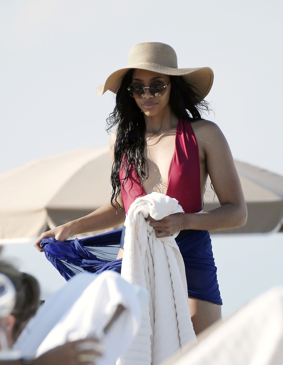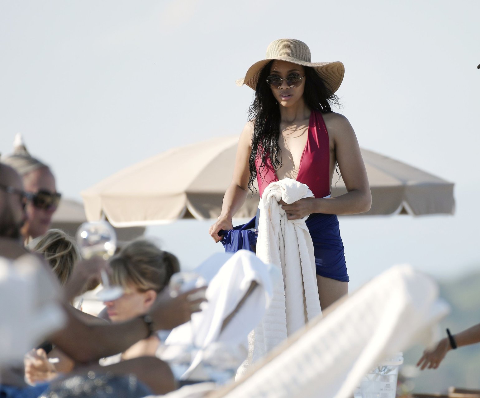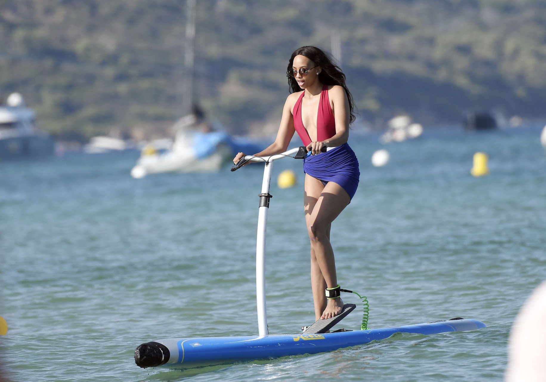La modelo sudafricana Retha Lethoko (22) fue vista disfrutando del día en un Stand-Up Paddle en el mar en St Tropez, 10/08/2018.