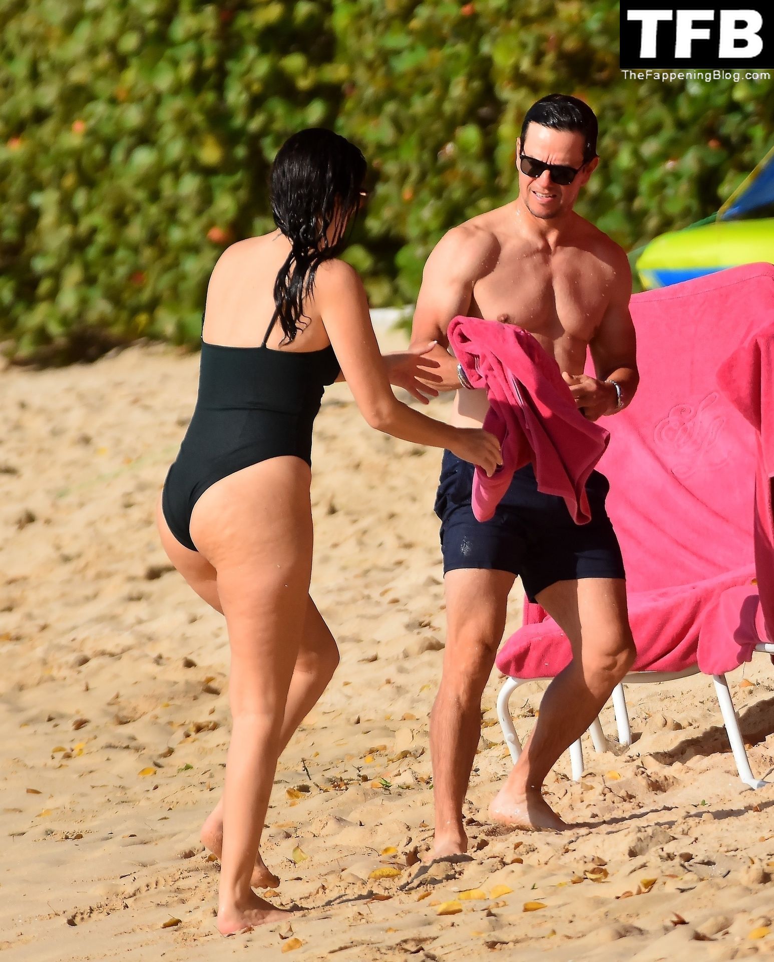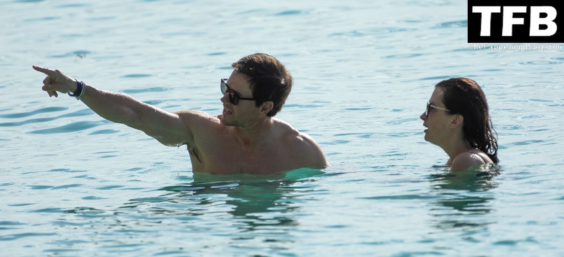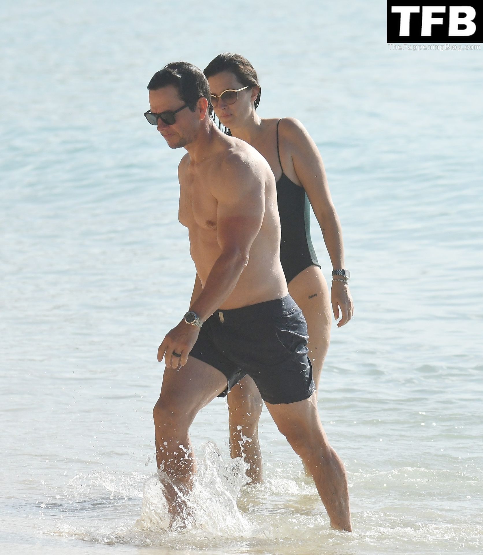 American actor Mark Wahlberg and his wife Rhea Durham show off their love and affection as they take a dip in the sea during a family holiday in the beautiful Caribbean island of Barbados on Sandy Lane Hotel’s beach, 12/22/2022.