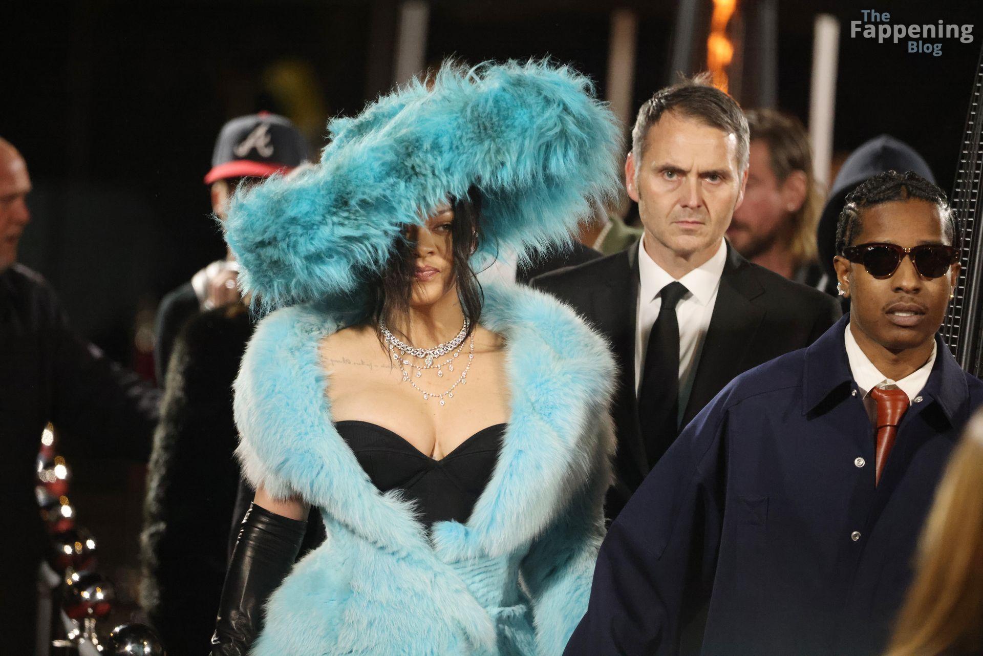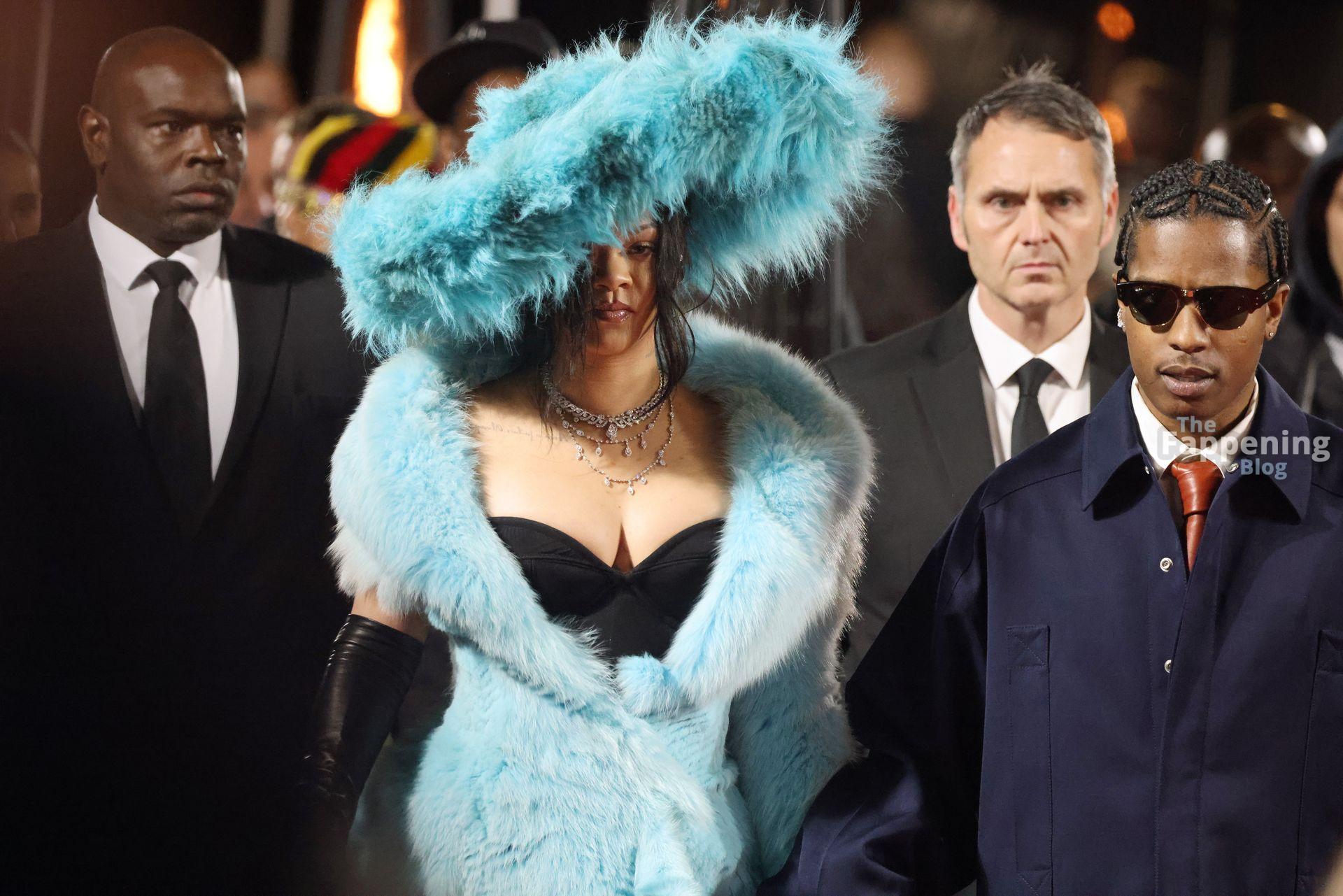 Los fans de Rihanna la aclaman como una ‘Monstruo de las Galletas’ de alta costura después de que apareciera con un abrigo esponjoso azul claro y un gran sombrero en los Fashion Awards 2024.