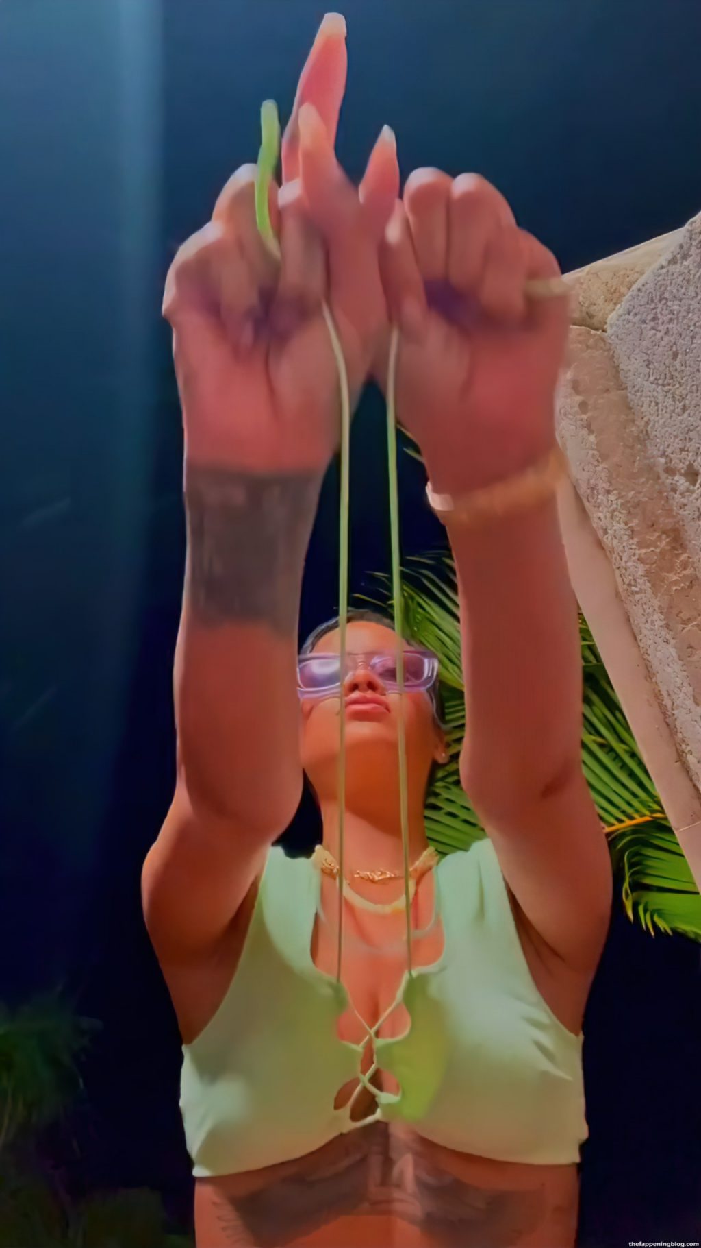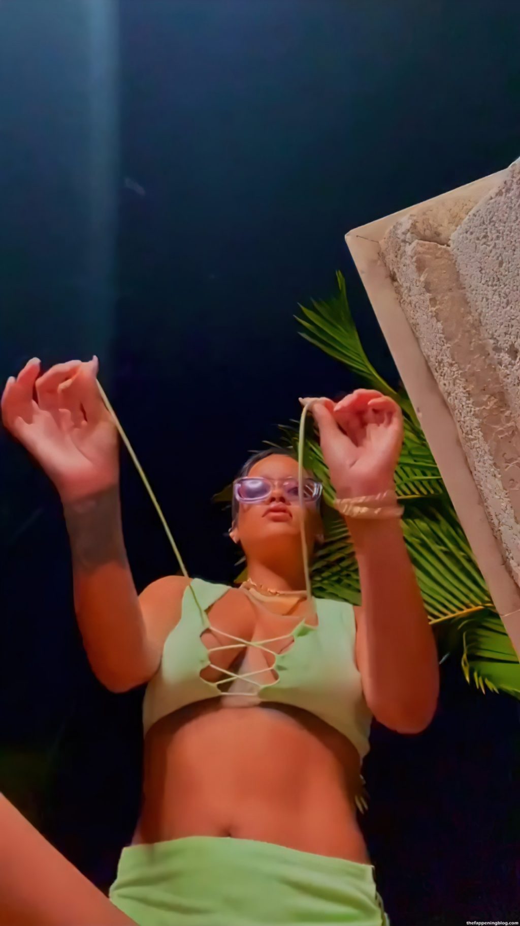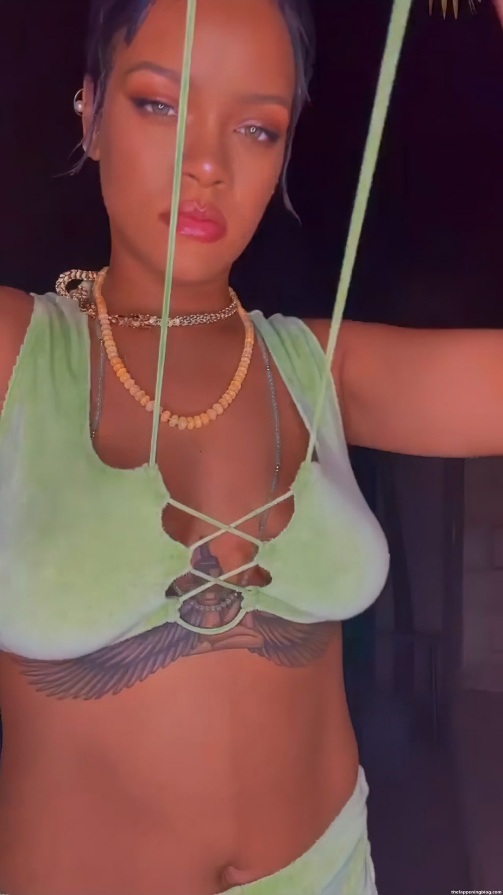 Rihanna Muestra Sus Pechos y Trasero en Lencería Verde (14 Fotos + GIFs y Video)