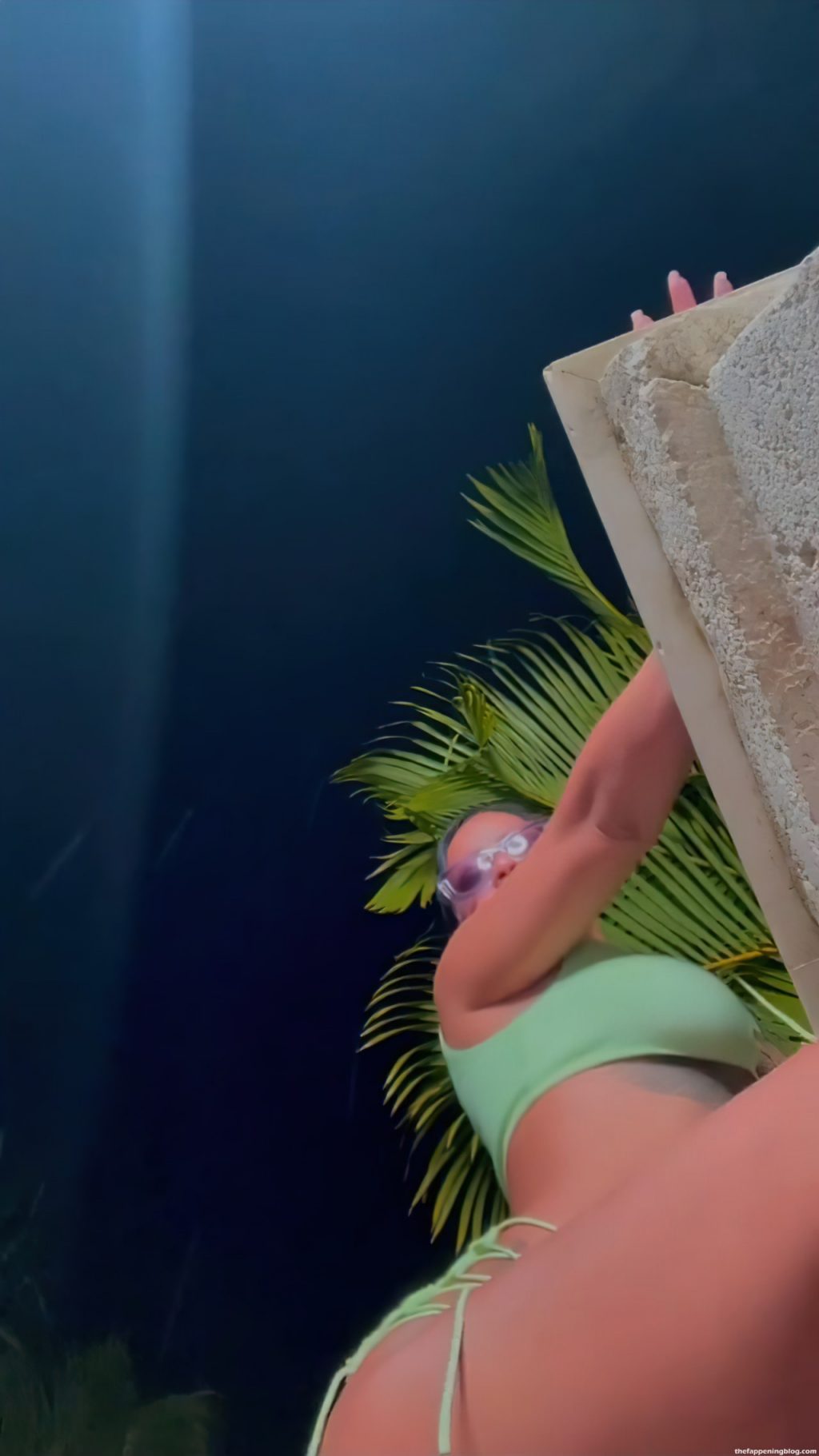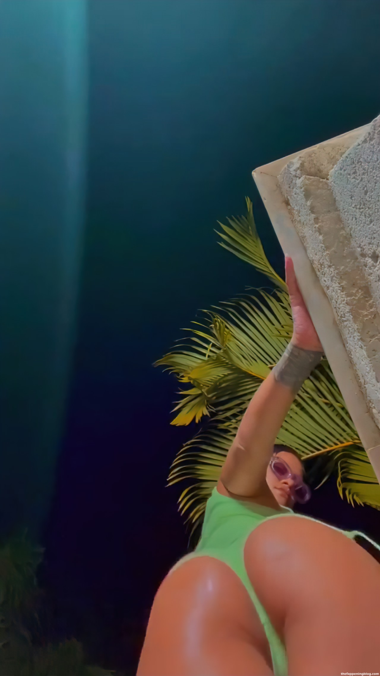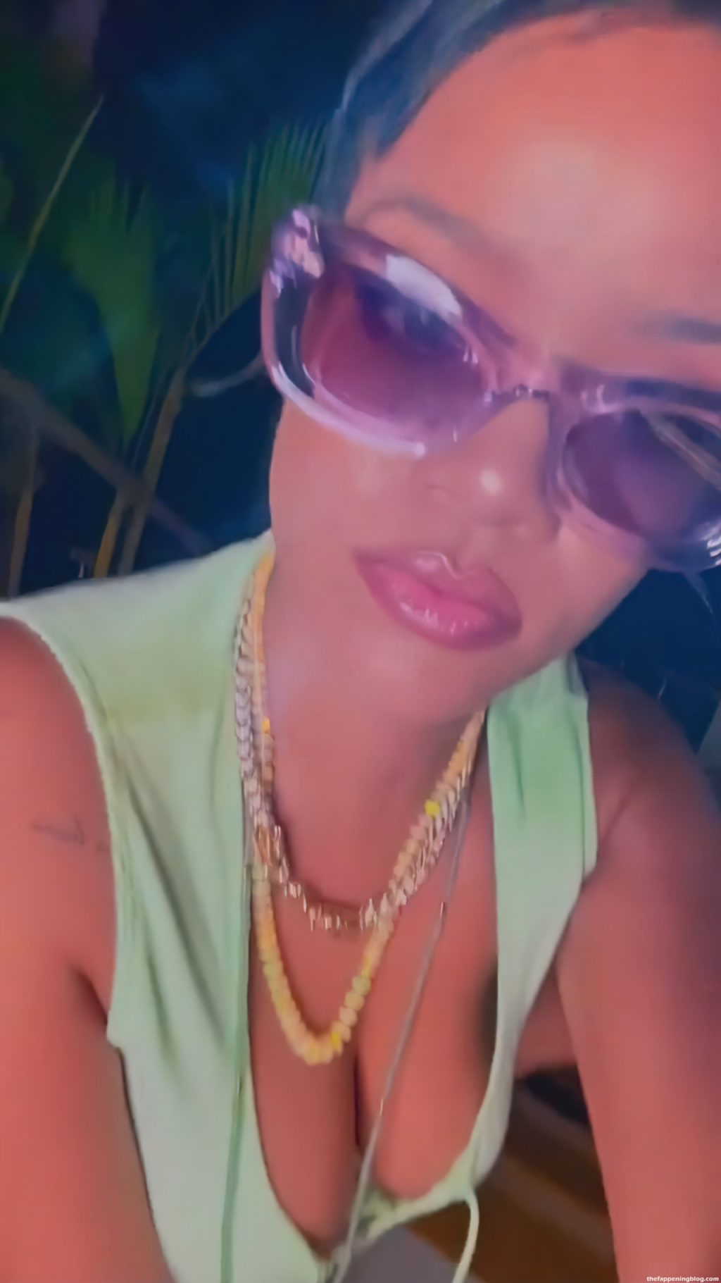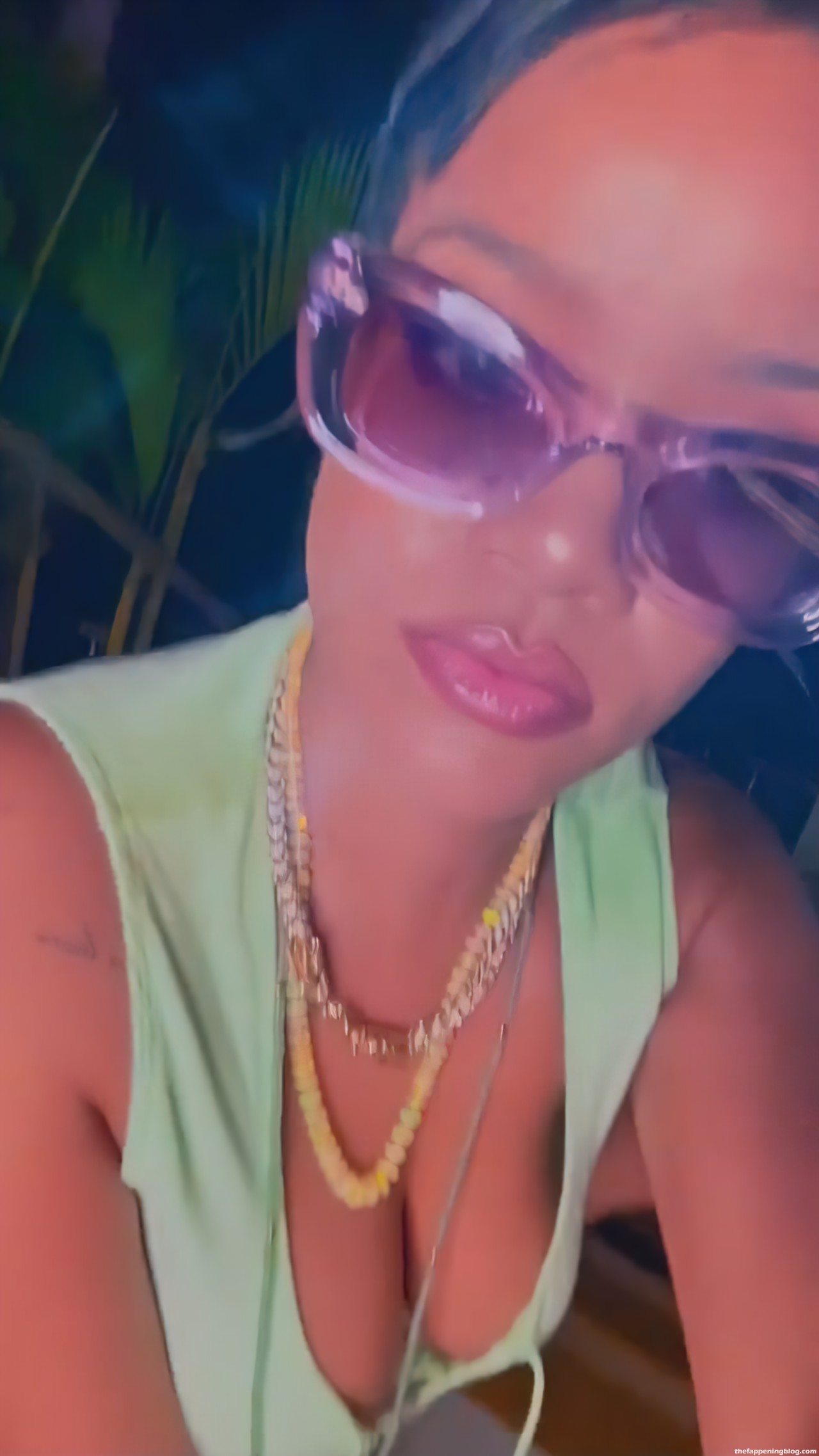 Rihanna Muestra Sus Pechos y Trasero en Lencería Verde (14 Fotos + GIFs y Video)