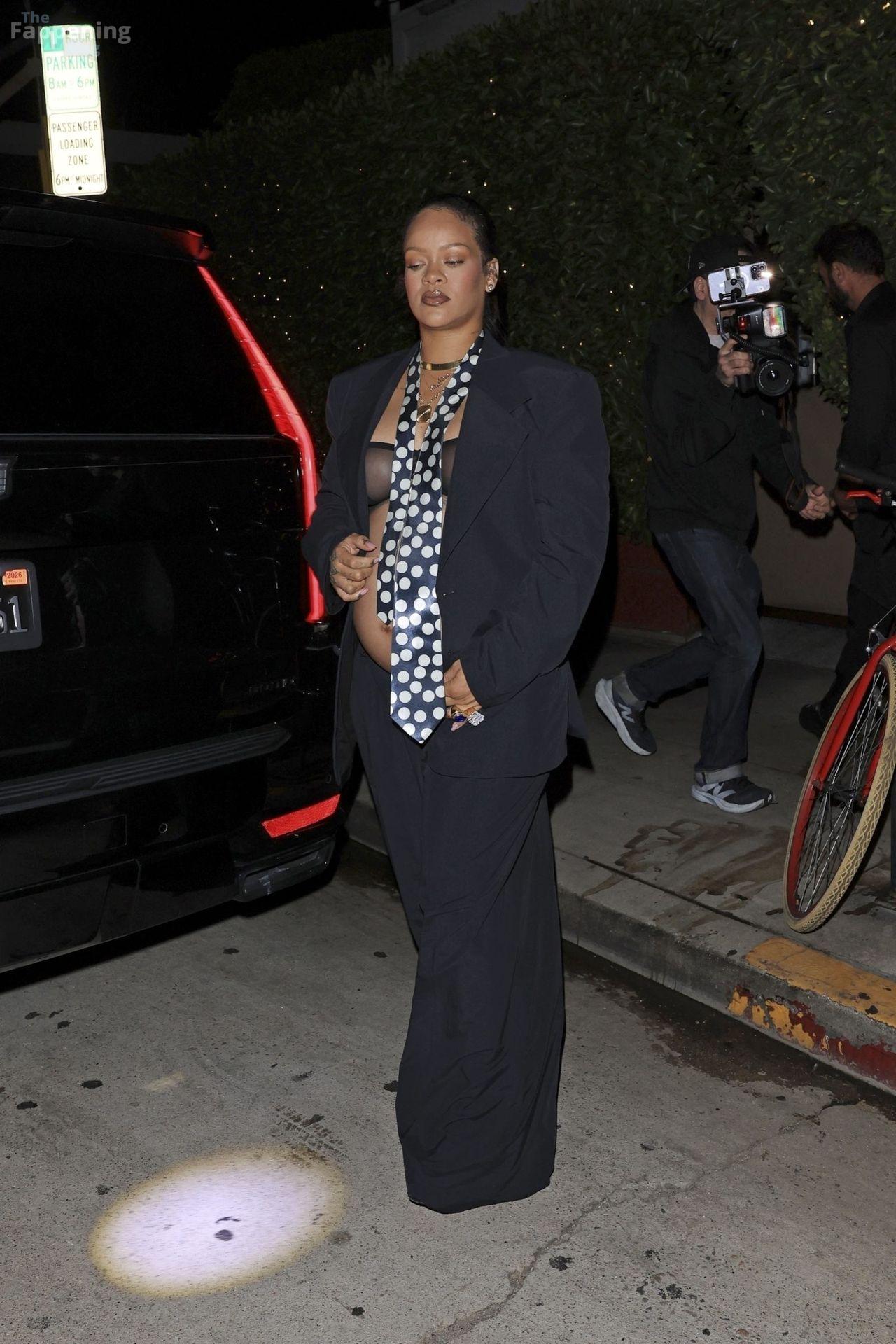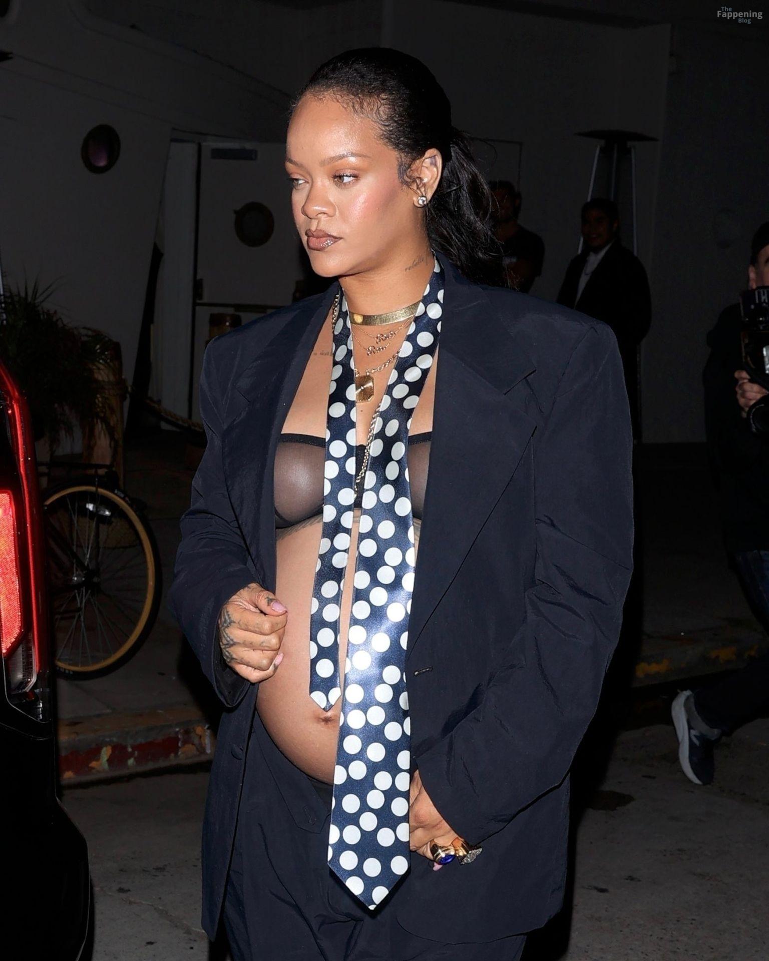 La estrella de The Fappening Rihanna apareció luciendo un sostén transparente y un traje abierto, coqueteando con un desliz de pezón mientras mostraba su vientre desnudo de bebé. Casi desnuda y totalmente legendaria.