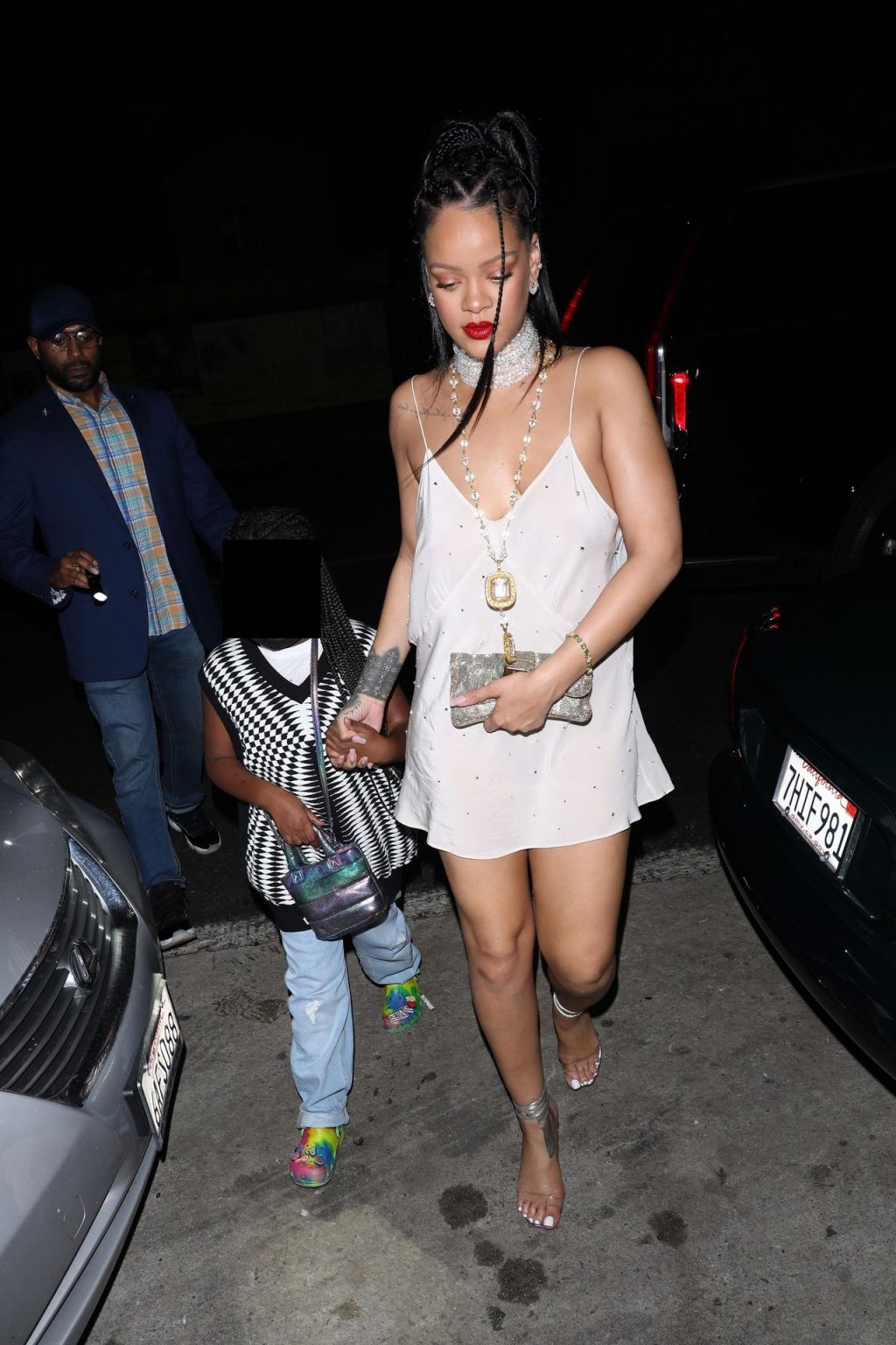 Rihanna sale del restaurante Giorgio Baldi a las ‘6 A.M.’ de la mañana después de cenar con su sobrina Majesty de 7 años. Parece que Rihanna había reservado todo el restaurante para la noche después de que todos se hubieran ido justo antes de la medianoche. El restaurante Giorgio Baldi usualmente cierra a las 12 de la medianoche.