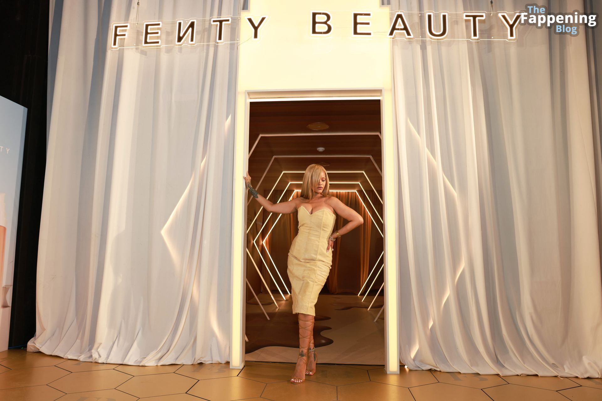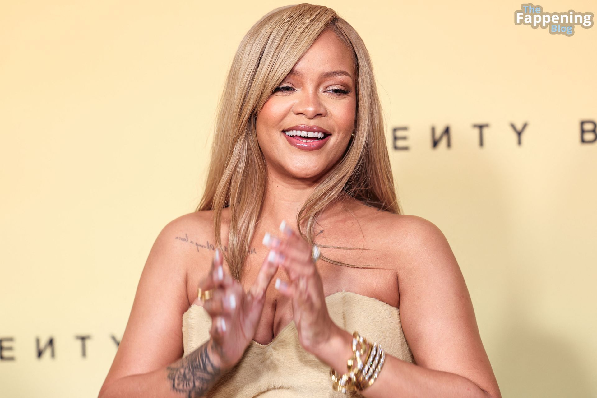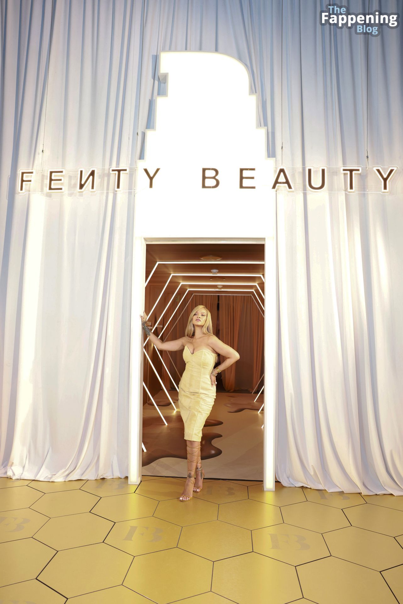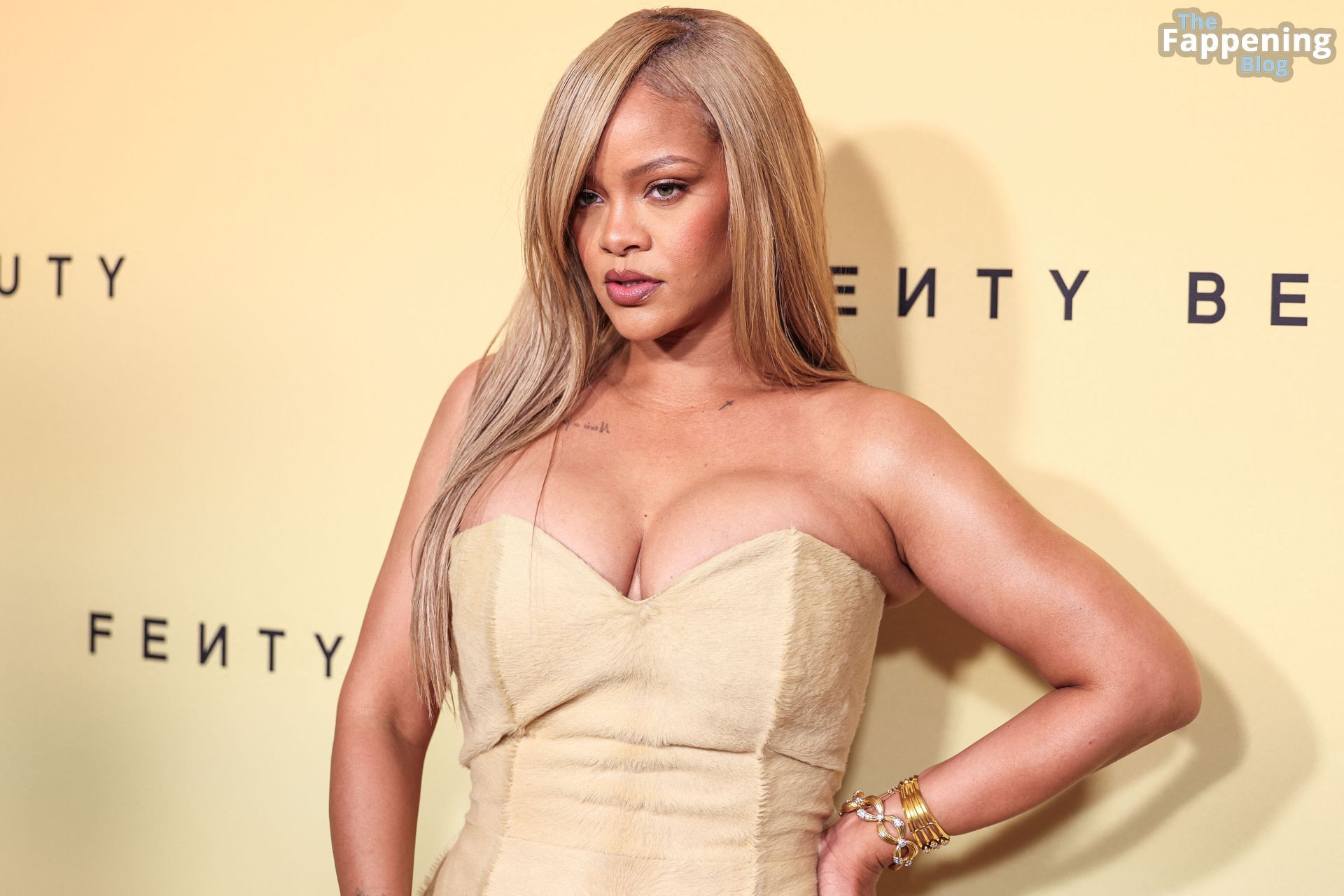 La polifacética estrella barbadense, Rihanna (también conocida como Robyn Rihanna Fenty), apareció en el lanzamiento de la base Soft’Lit de Fenty Beauty en 7th Street Studios en California el 26 de abril de 2024, luciendo un conjunto sexy.