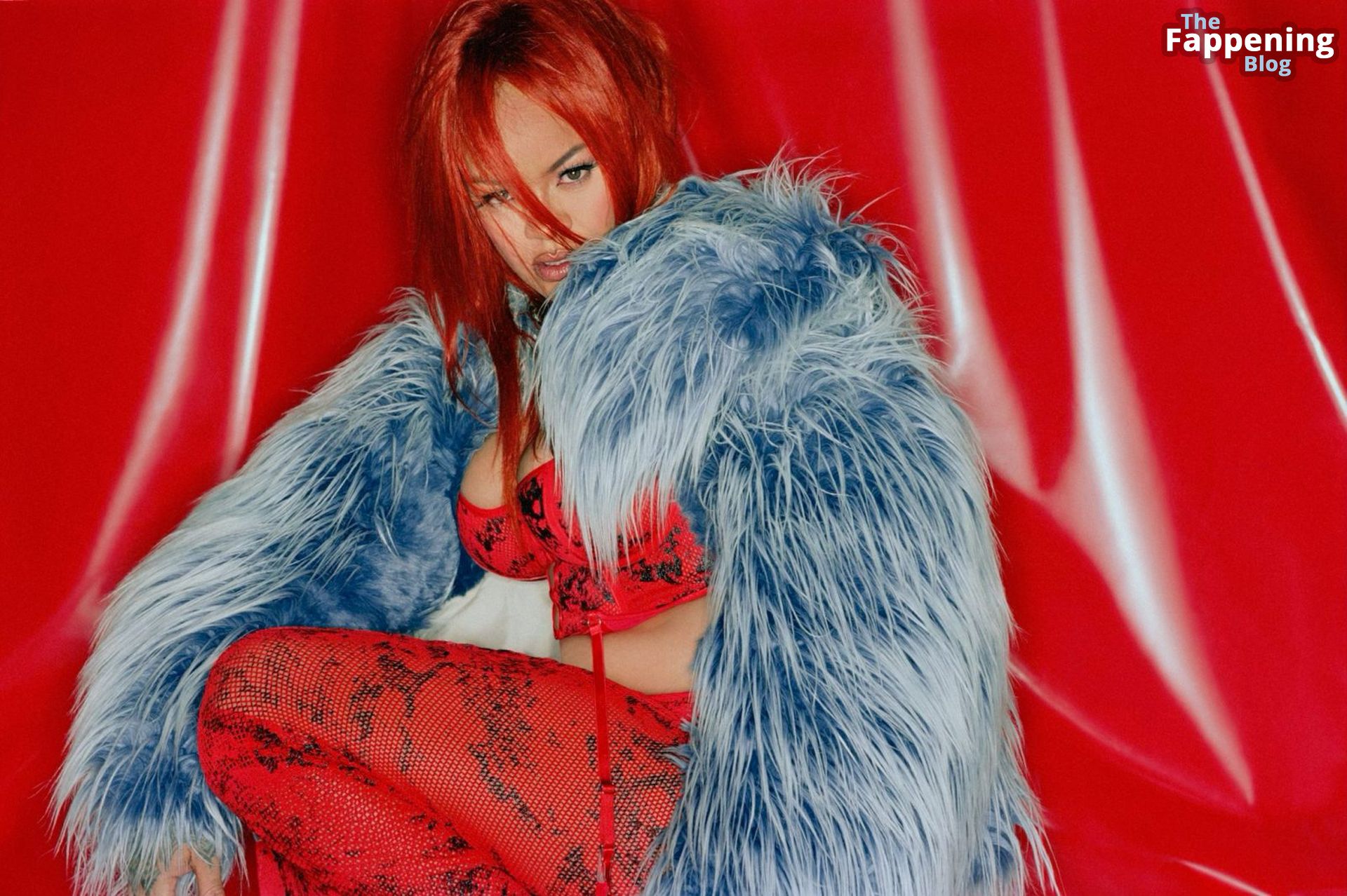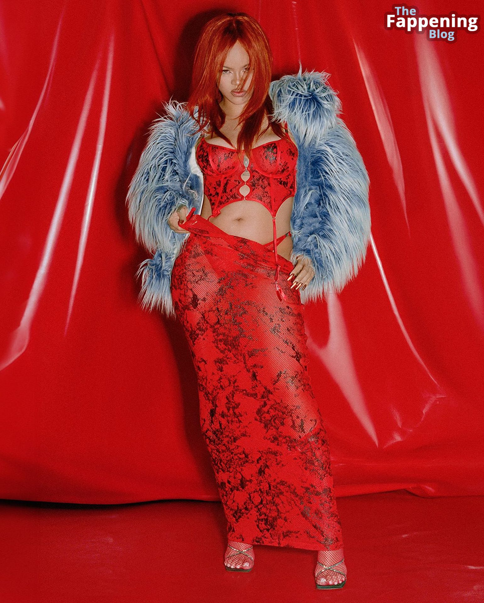 Rihanna aparece en una nueva sesión de fotos para Savage x Fenty, luciendo sus curvas con lencería de encaje rojo y un sexy abrigo de piel azul.