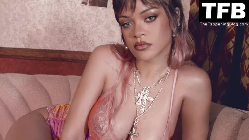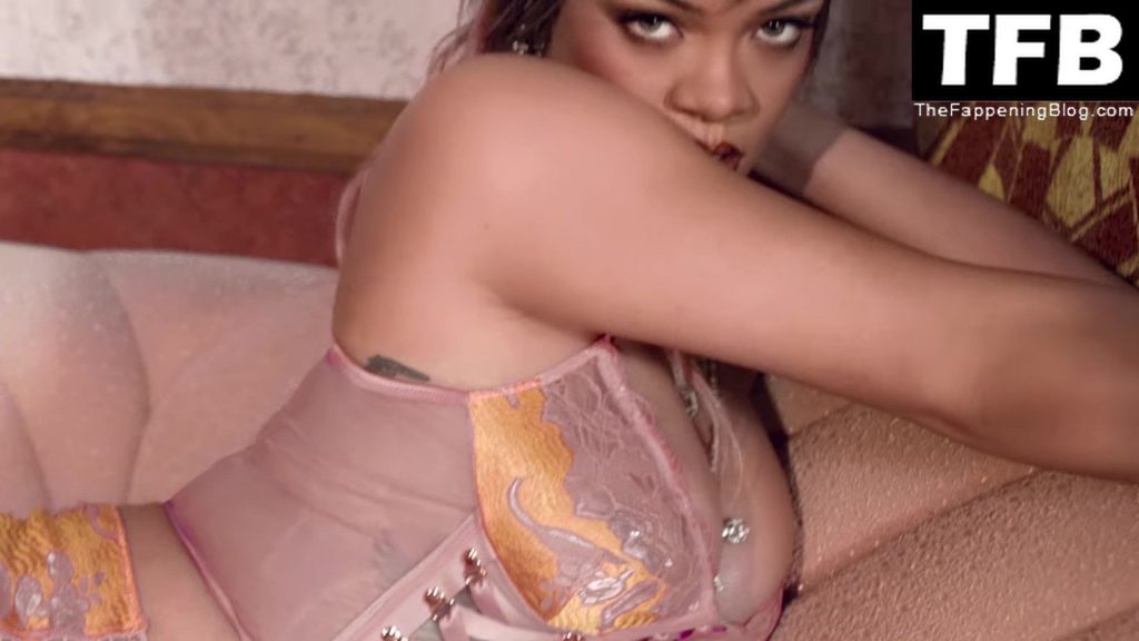 La estrella de The Fappening Rihanna muestra su hermoso cuerpo y sus senos sexys posando con lencería escasa para la campaña de Savage X Fenty del Día de San Valentín de enero de 2022.