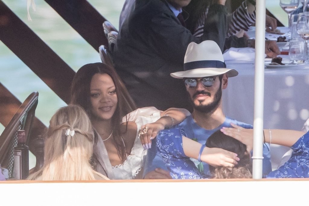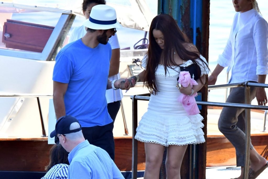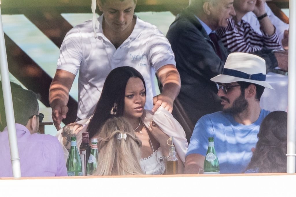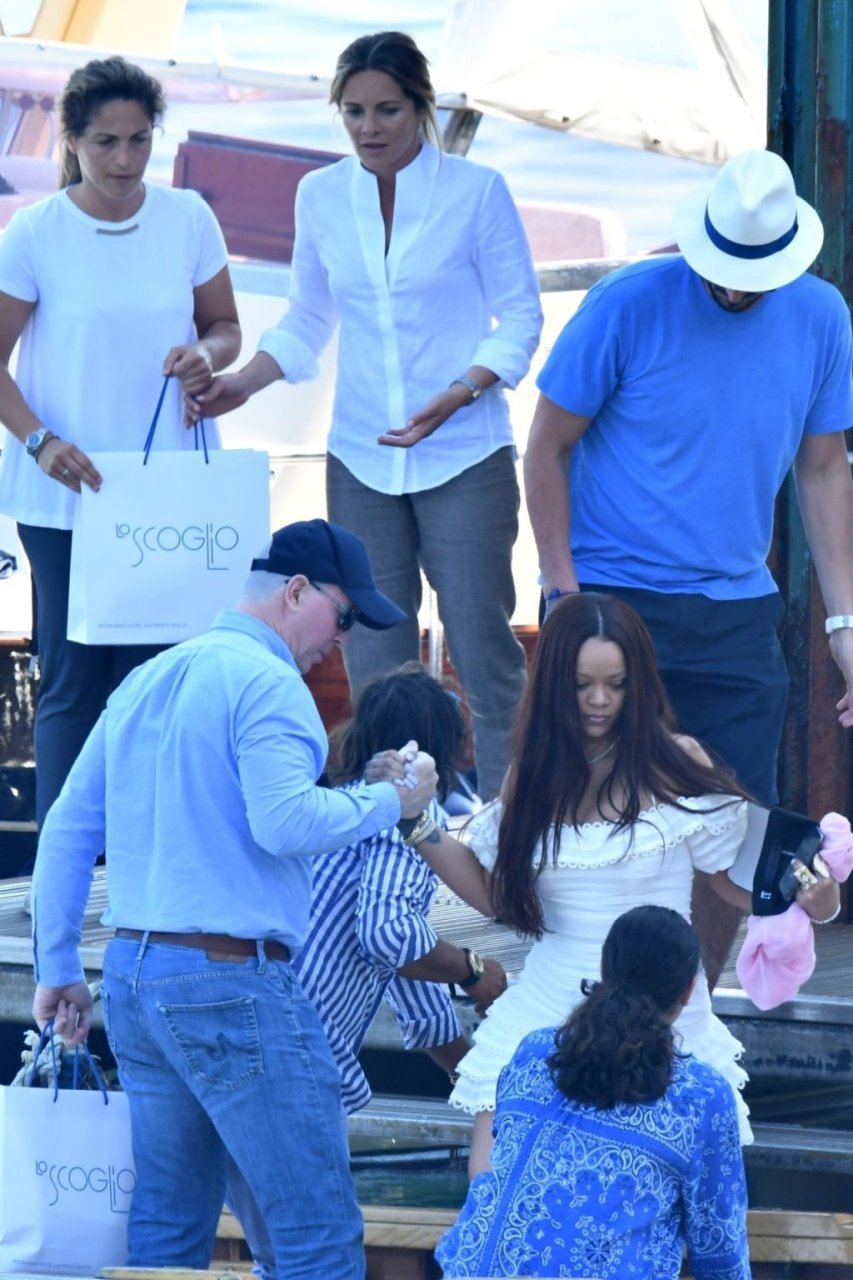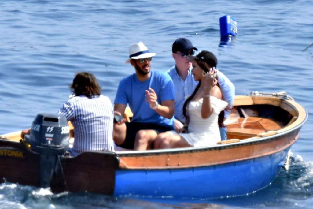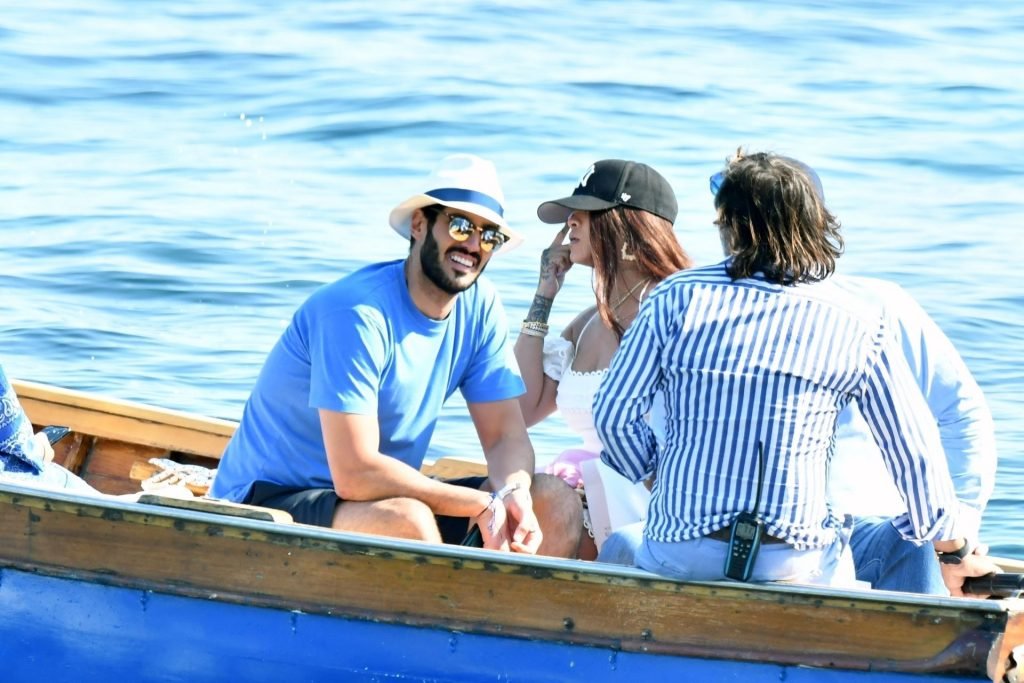 Rihanna y su novio Hassan Jameel fueron vistos mostrando una demostración de afecto muy cariñosa y rara mientras daban un paseo en barco y disfrutaban de un almuerzo juntos en “Lo Scoglio” en Nerano con un grupo que se cree es su familia, 05/06/2019.