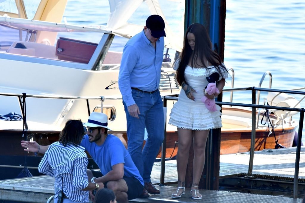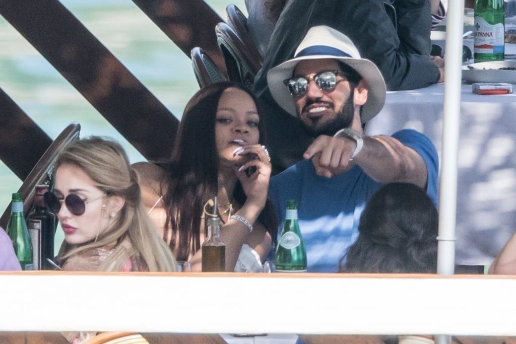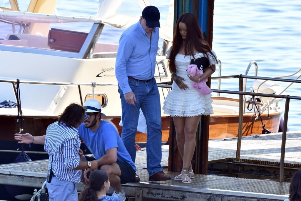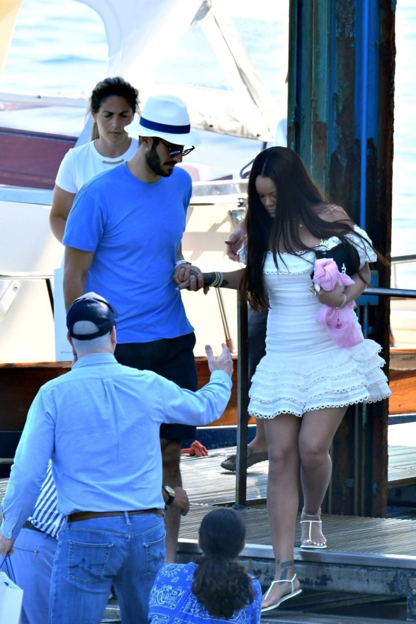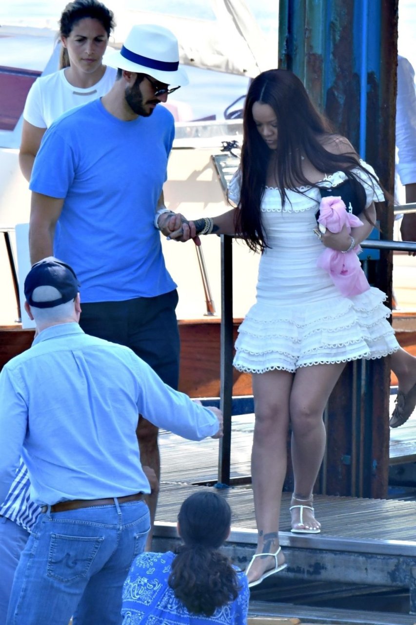 Rihanna y su novio Hassan Jameel fueron vistos mostrando una demostración de afecto muy cariñosa y rara mientras daban un paseo en barco y disfrutaban de un almuerzo juntos en “Lo Scoglio” en Nerano con un grupo que se cree es su familia, 05/06/2019.