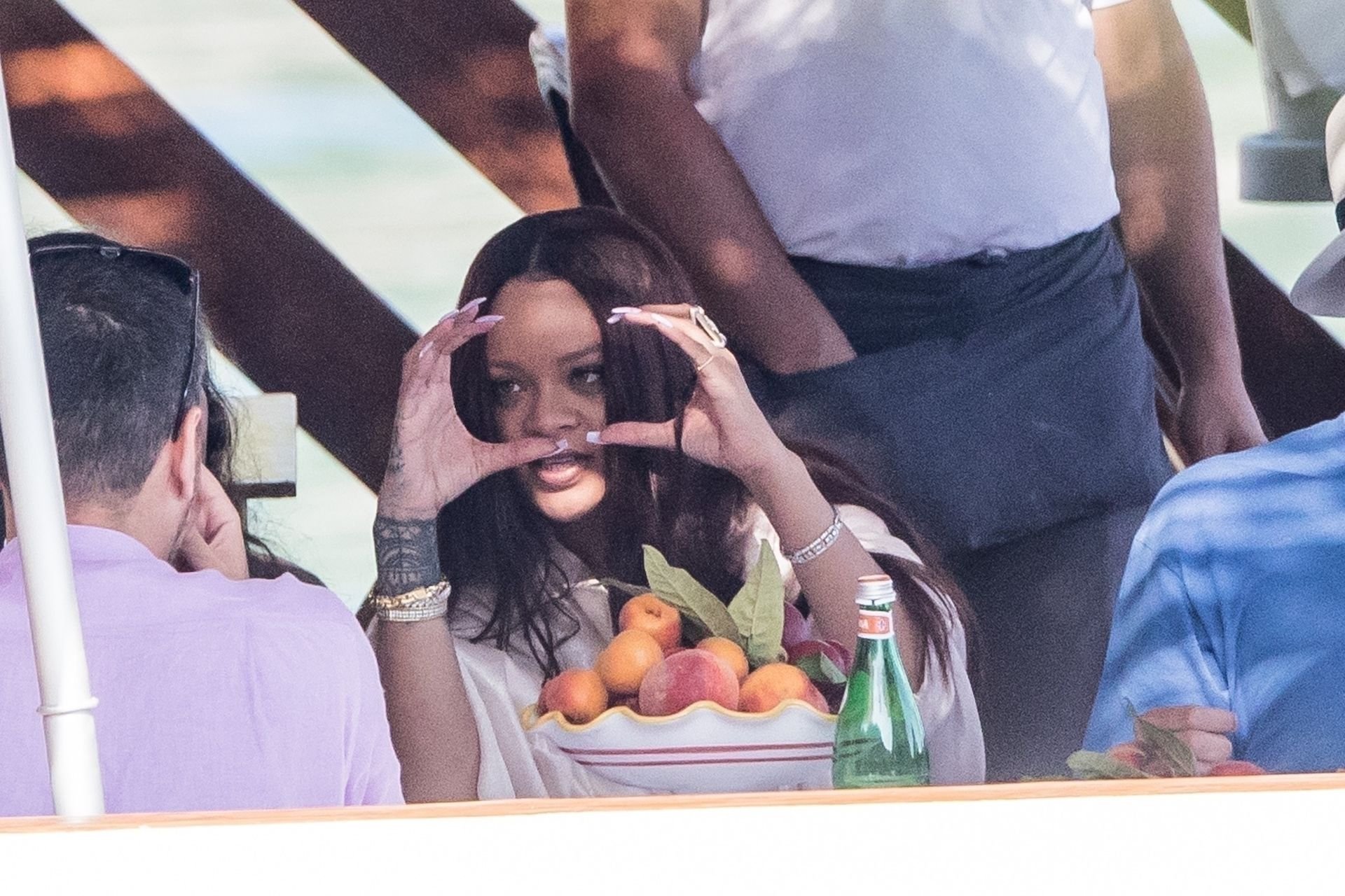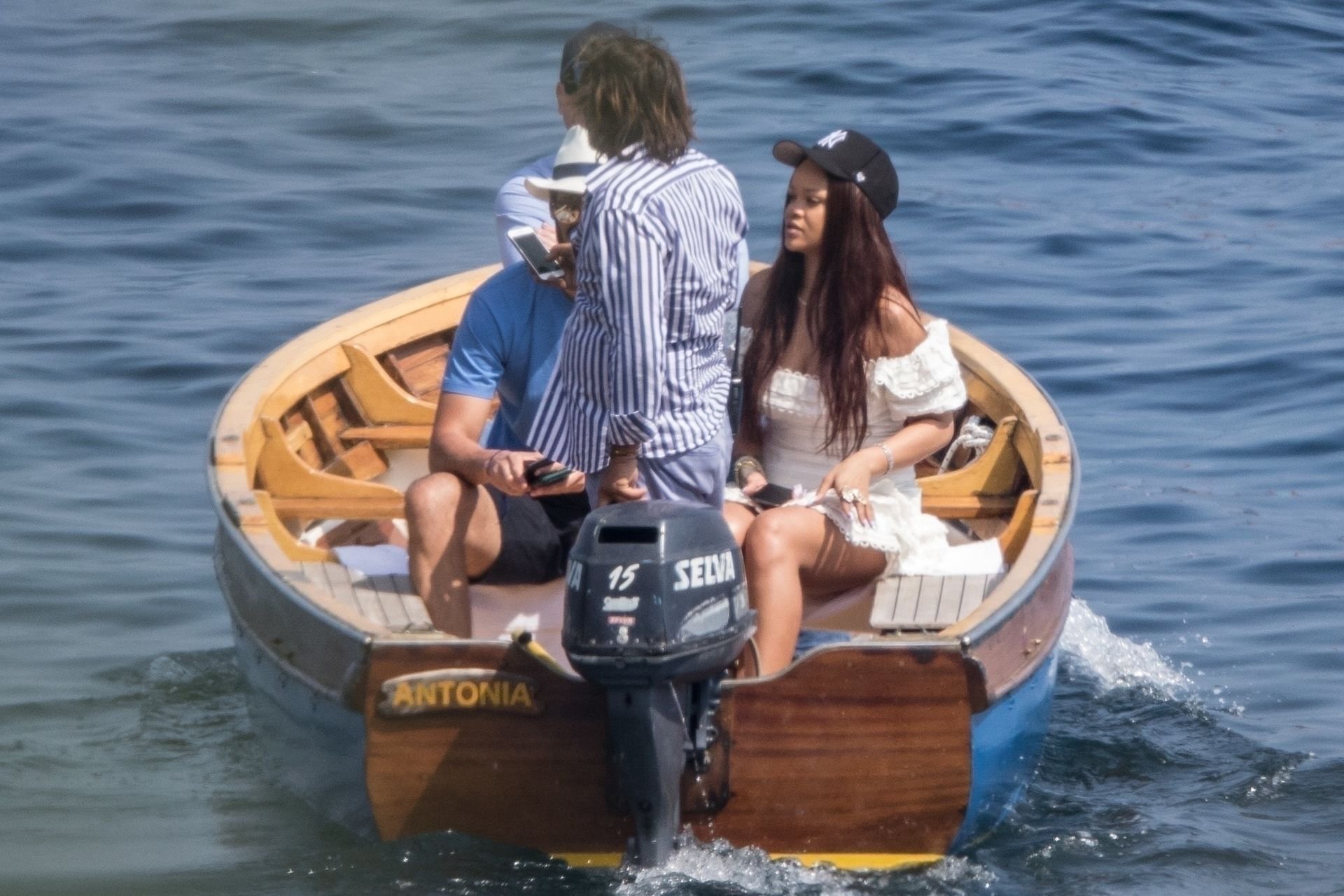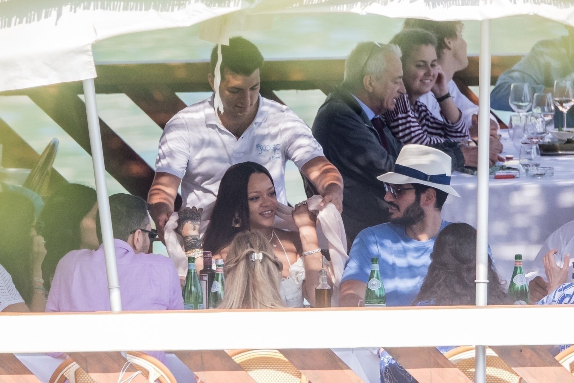 Rihanna y su novio Hassan Jameel fueron vistos mostrando una demostración de afecto muy cariñosa y rara mientras daban un paseo en barco y disfrutaban de un almuerzo juntos en “Lo Scoglio” en Nerano con un grupo que se cree es su familia, 05/06/2019.
