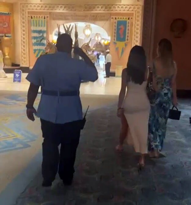 Además, no consumen en el establecimiento comprando bebidas. Por lo tanto, usan los resorts como base de operaciones sin pagar nada como cortesía. Aquí verás a un guardia de seguridad en el Casino Atlantis escoltando a chicas de casino fuera de las instalaciones: