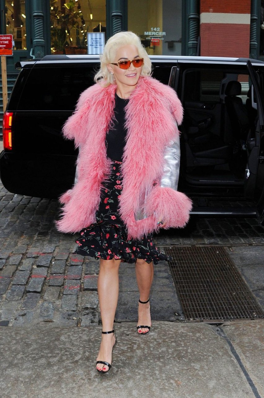 Rita Ora fue fotografiada saliendo tras un cambio de vestuario en la ciudad de Nueva York, 25/03/2019. La actriz y cantante de 28 años llevaba una chaqueta plateada y rosa, top negro, falda floral y tacones.