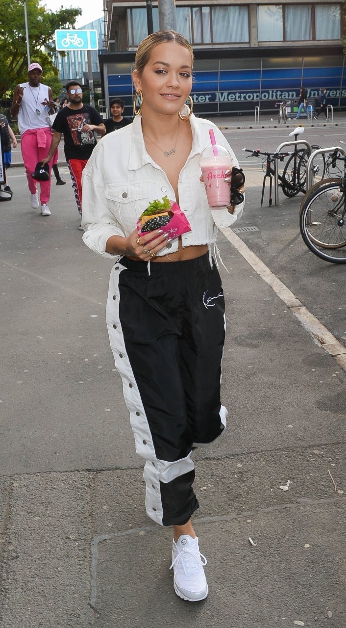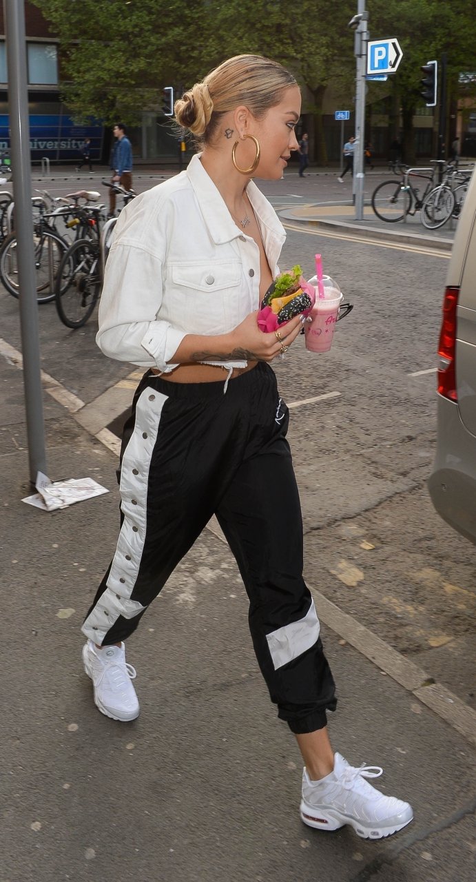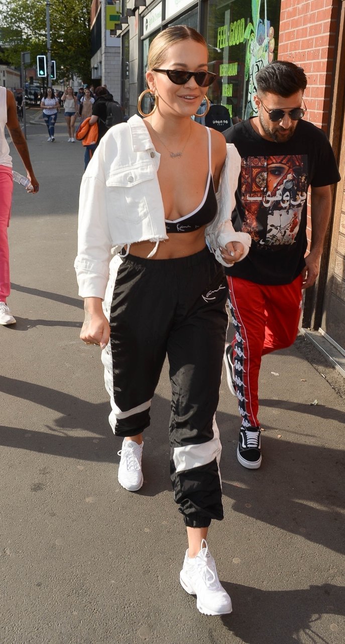 Rita Ora se dirige a Archie’s en Oxford Street en el centro de la ciudad de Manchester, 15/05/2018. La cantante de 27 años lució su escote con un top negro, mostrando la areola derecha. No es suficiente para la desnudez en 2018.