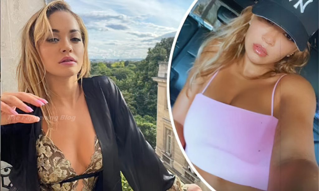 La cantante Rita Ora muestra sus tetas ligeramente desnudas con pezones visibles, vistiendo un top transparente en una nueva sesión de fotos en redes sociales (agosto de 2021).