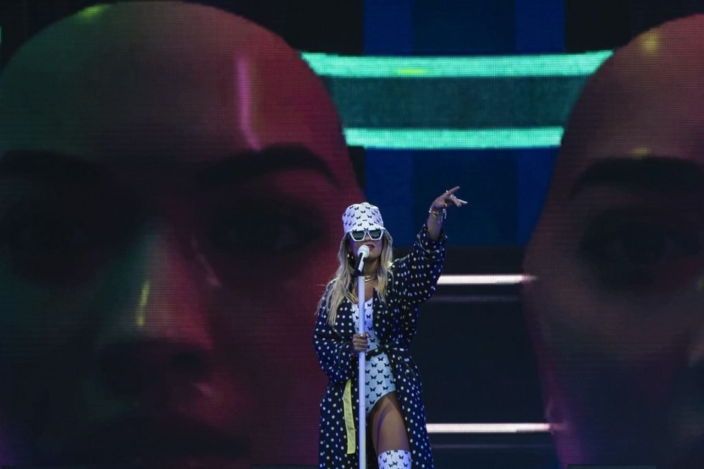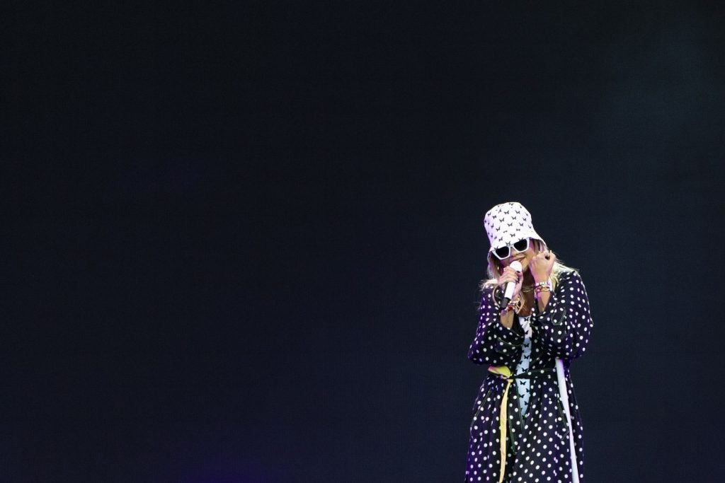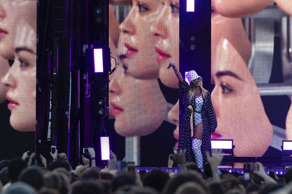 La cantante Rita Ora actúa durante conciertos privados en Velizy 2 y Parly 2 en Vélizy-Villacoublay, Francia, 14/09/2019.