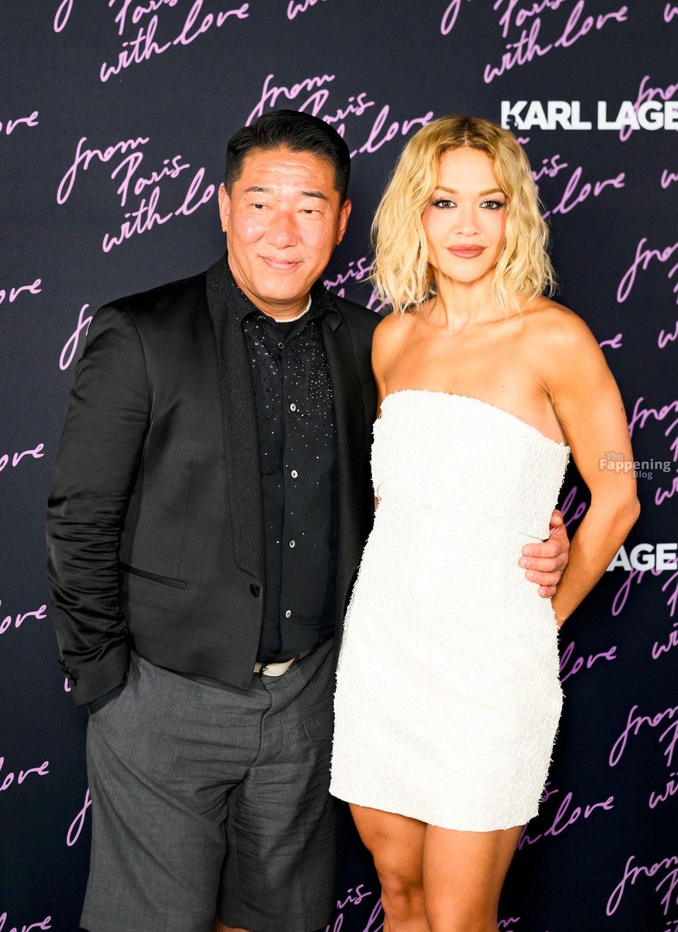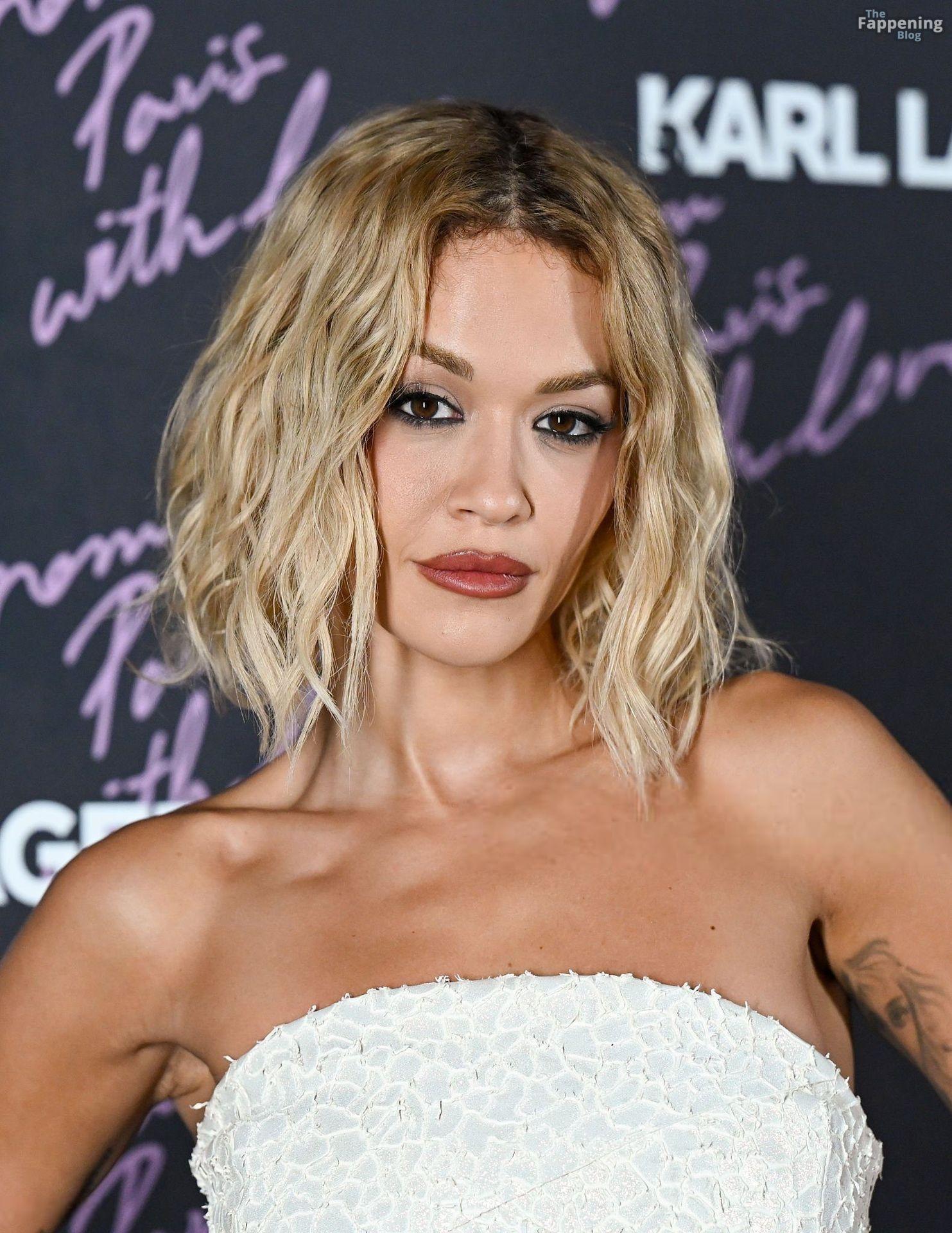 Rita Ora deslumbró en la fiesta de Karl Lagerfeld en París con un mini vestido blanco sin tirantes. Ella mostró sus piernas tonificadas y un poco de ski.