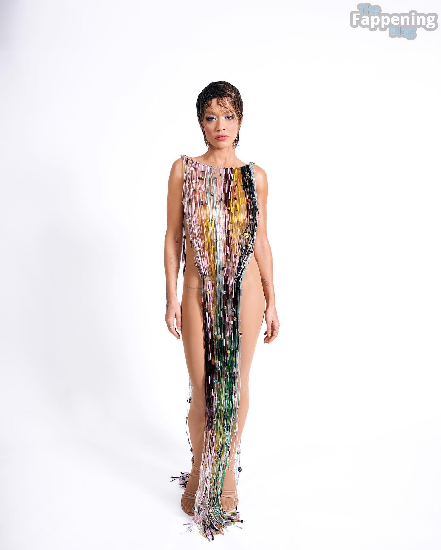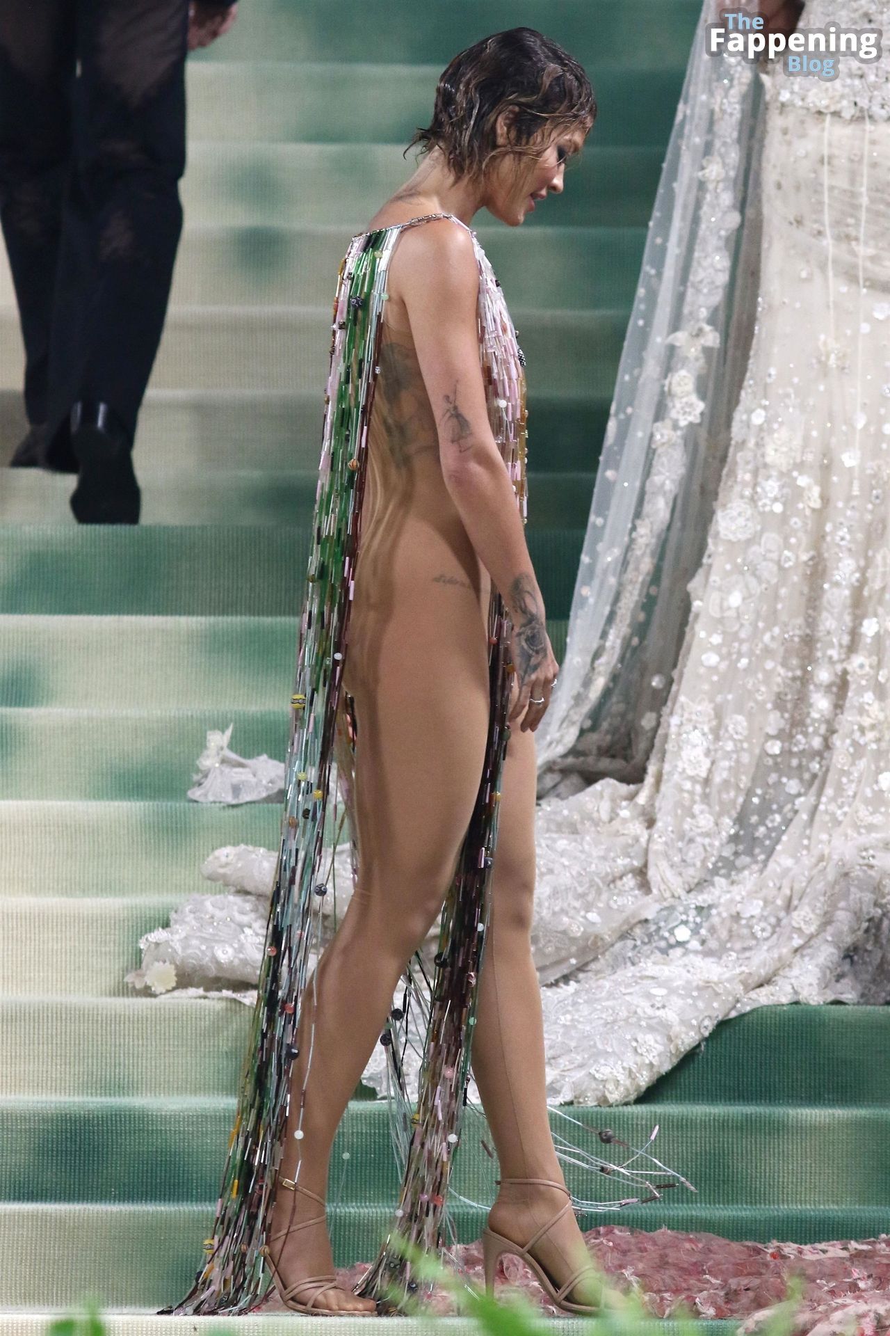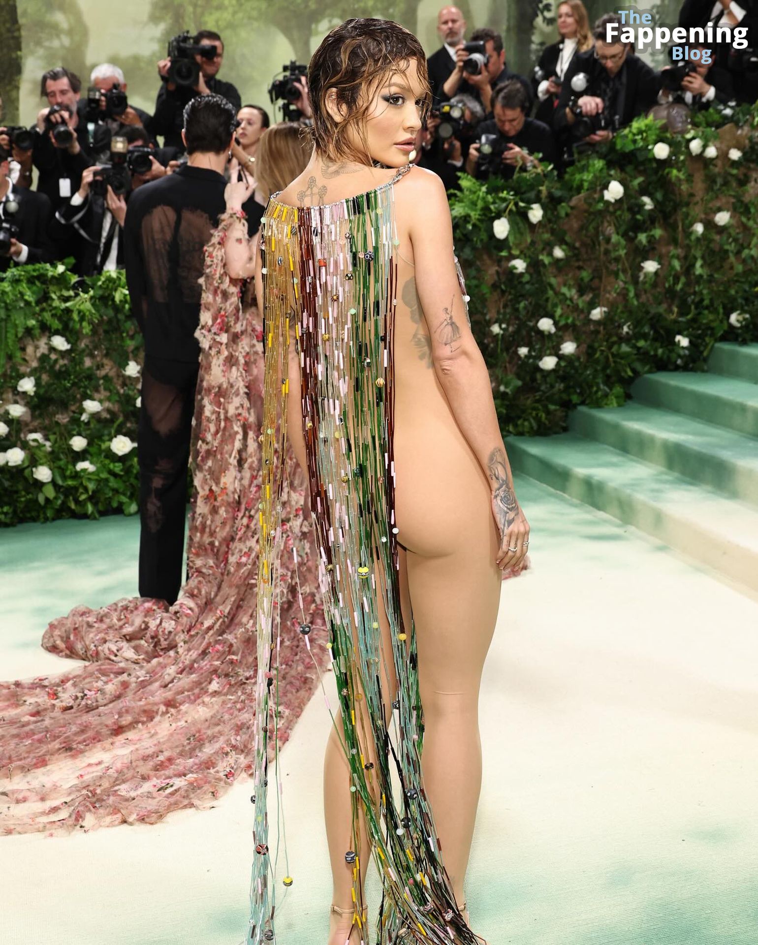 Casi desnuda… excepto por el traje de cuerpo entero que lleva debajo del vestido.