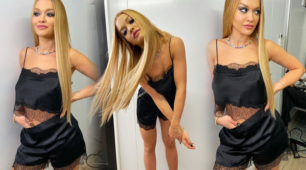 La cantante Rita Ora muestra su cuerpo sexy posando con un pijama negro de dos piezas – Instagram, 28/03/2021.