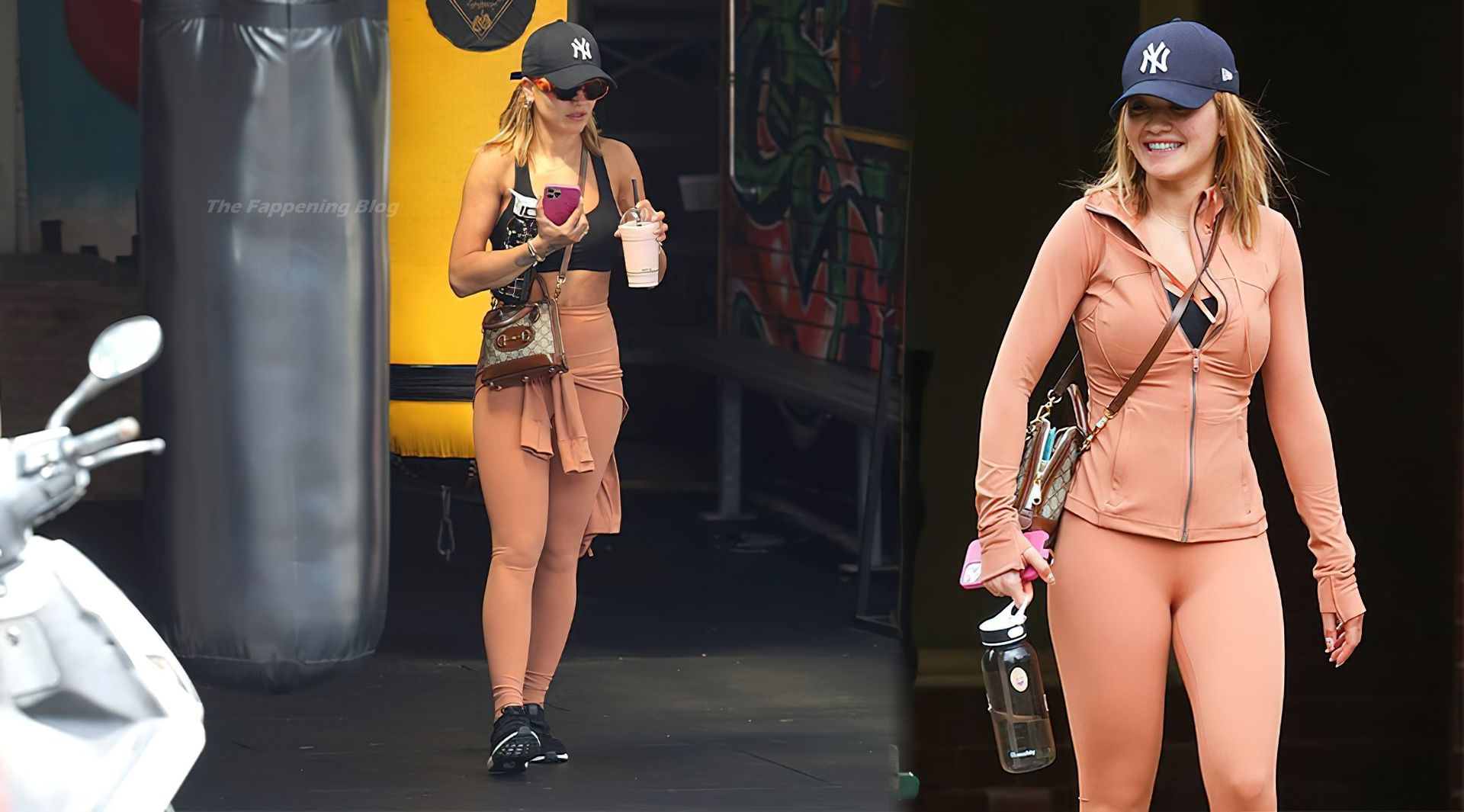 La cantante Rita Ora muestra su abdomen tonificado con un sujetador deportivo y ropa de entrenamiento ajustada color nude mientras va al gimnasio en Sídney.