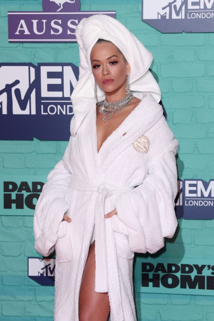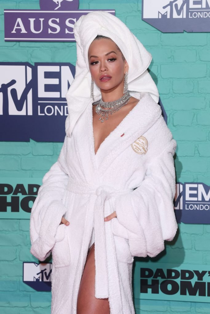 La cantante y actriz Rita Ora, de 26 años, asiste a los MTV EMAs 2017 celebrados en The SSE Arena en Londres, 11/12/2017.