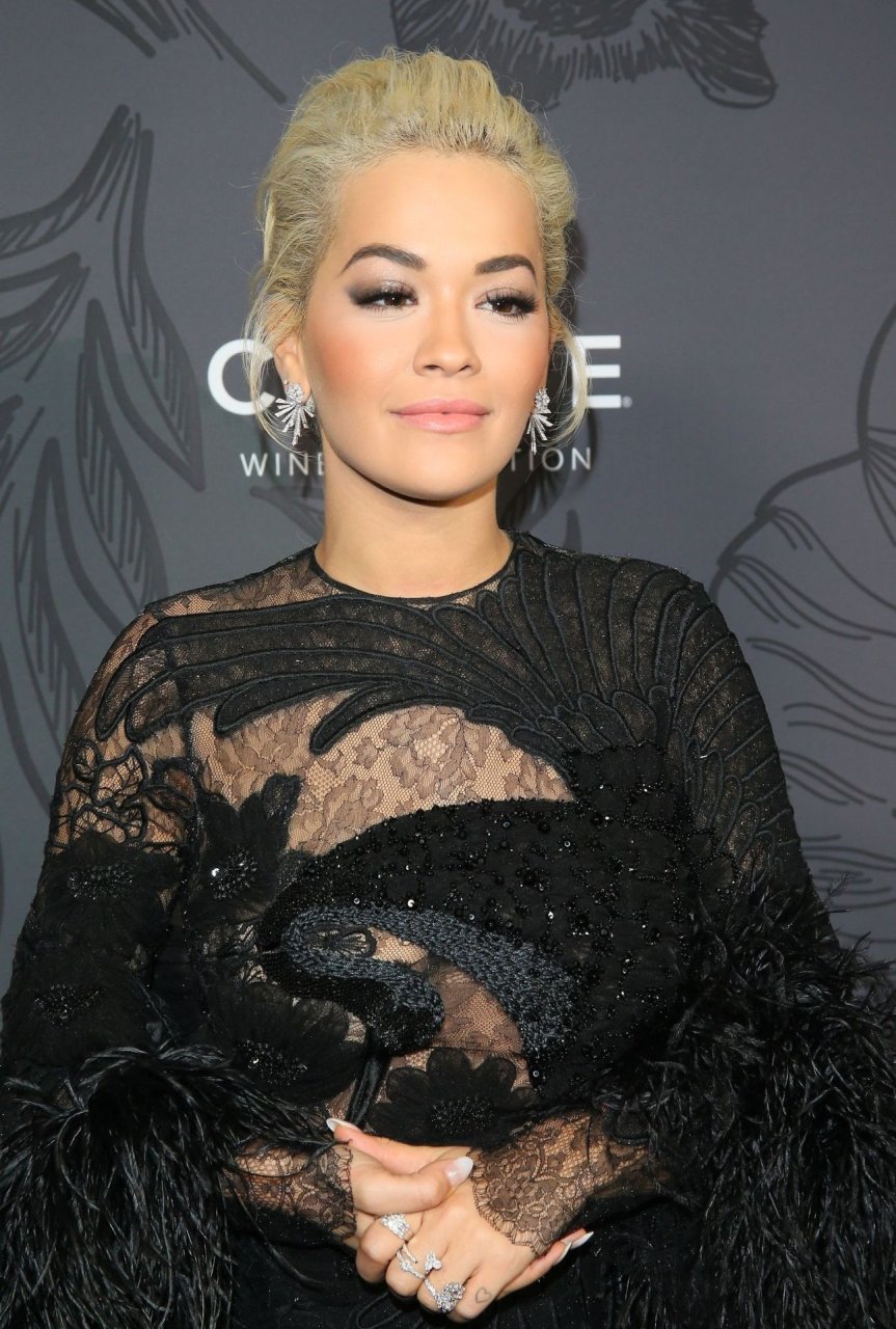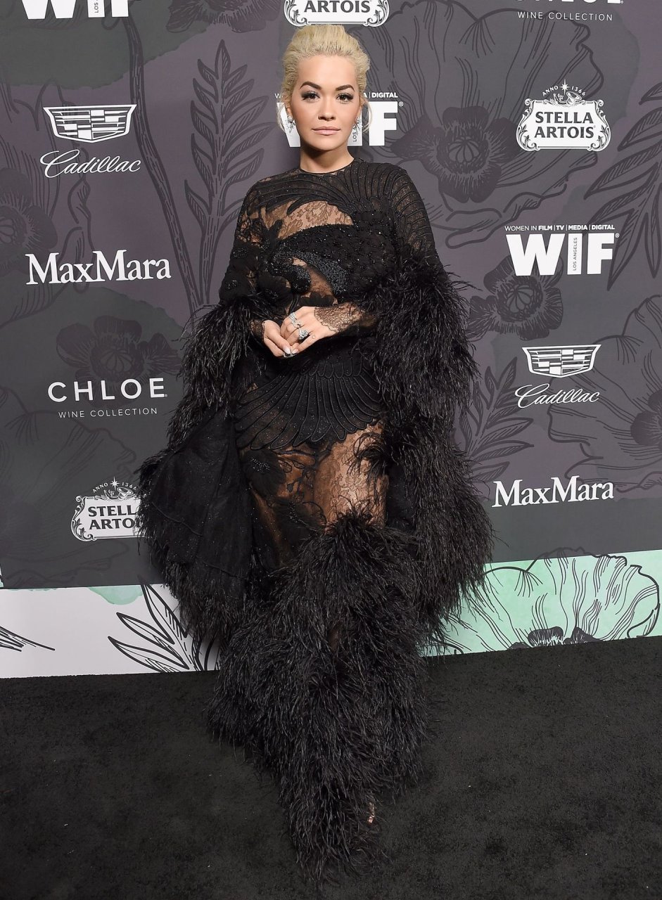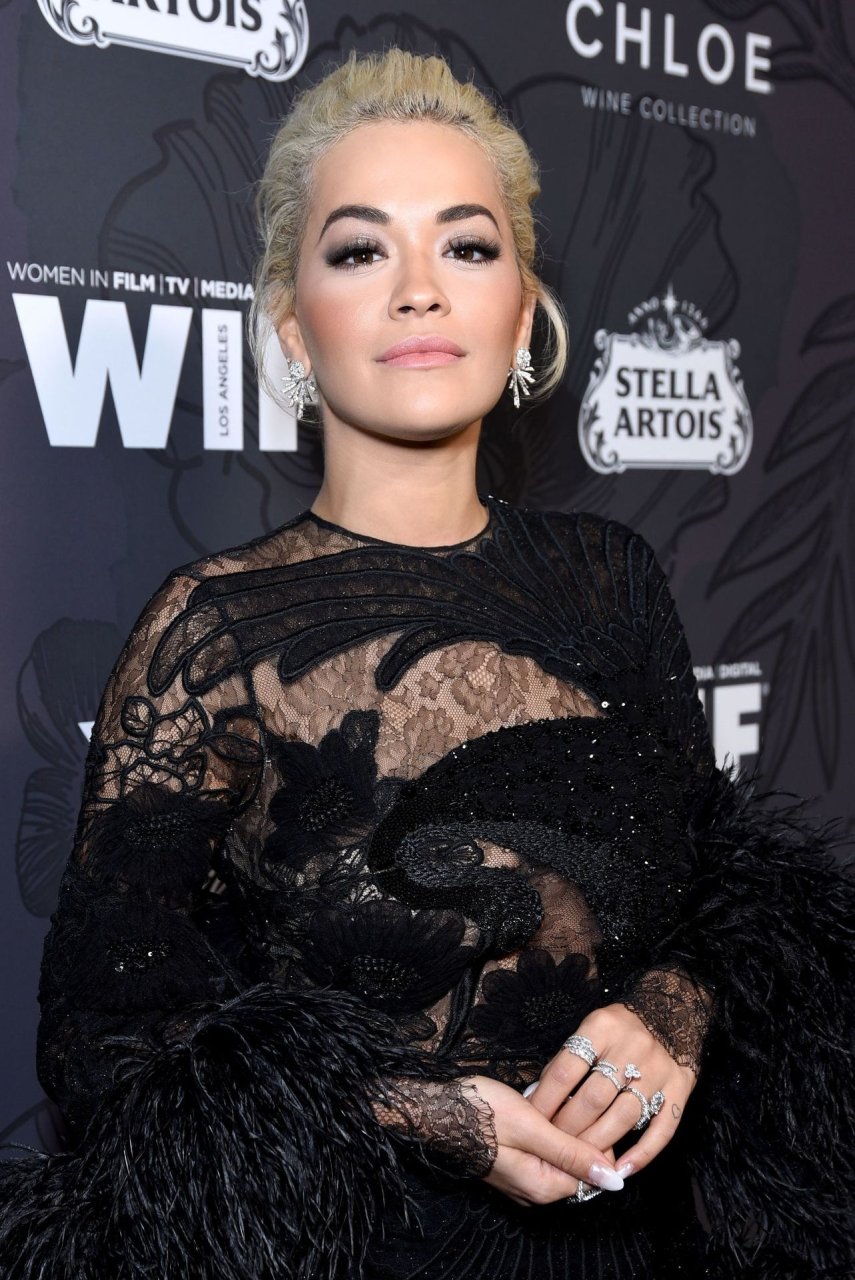 Cantante/actriz Rita Ora deslumbra con un vestido negro en la 12ª Fiesta Anual Women In Film Oscar en Spring Place en Los Ángeles, California, 22/02/2019.