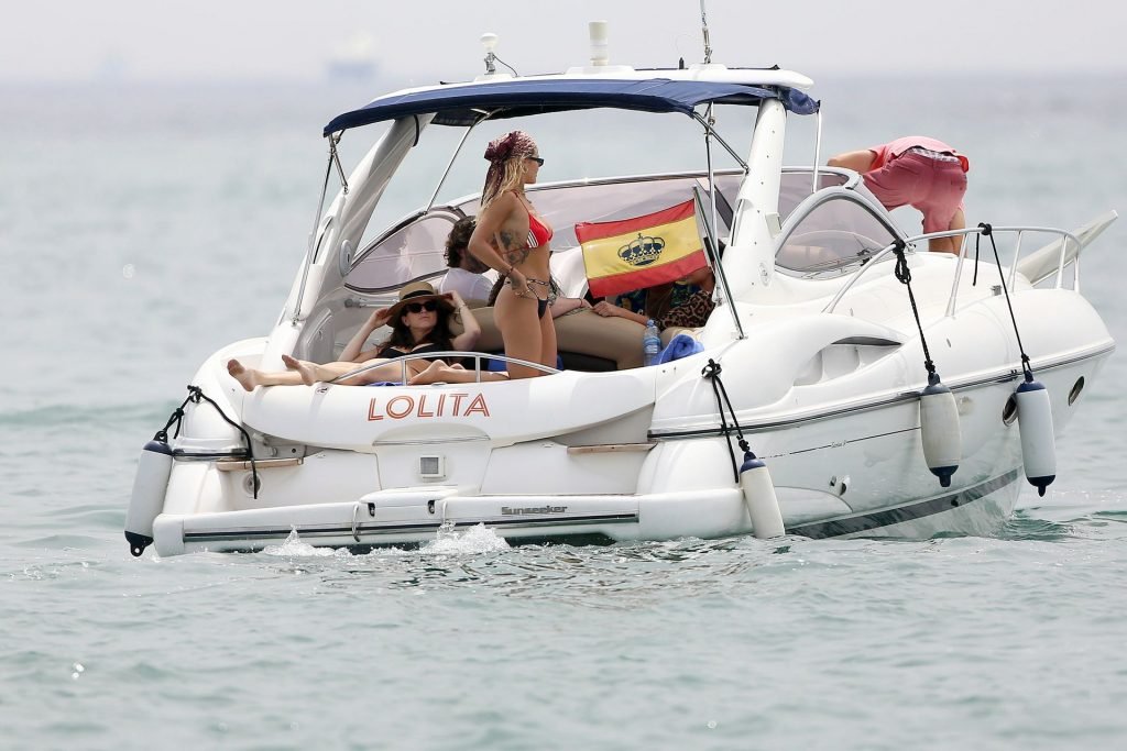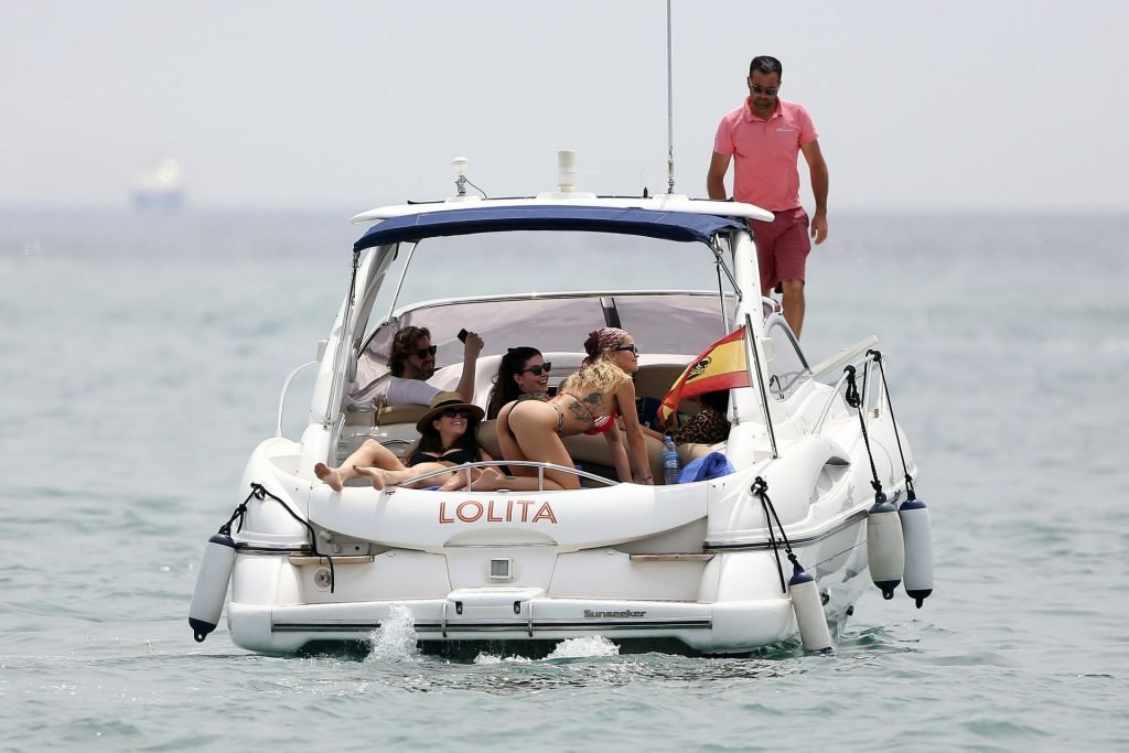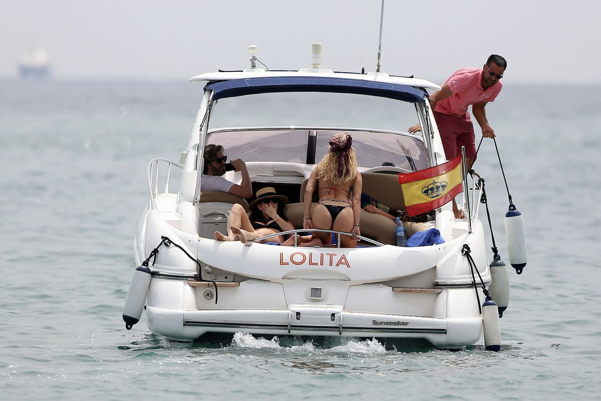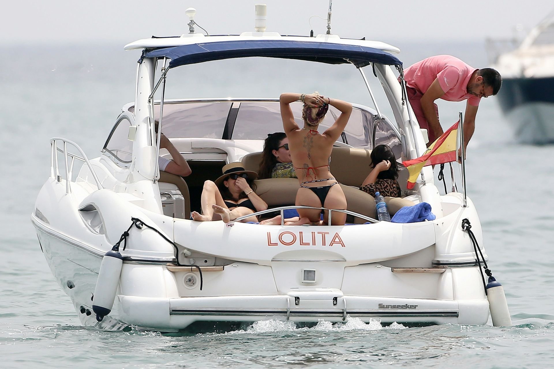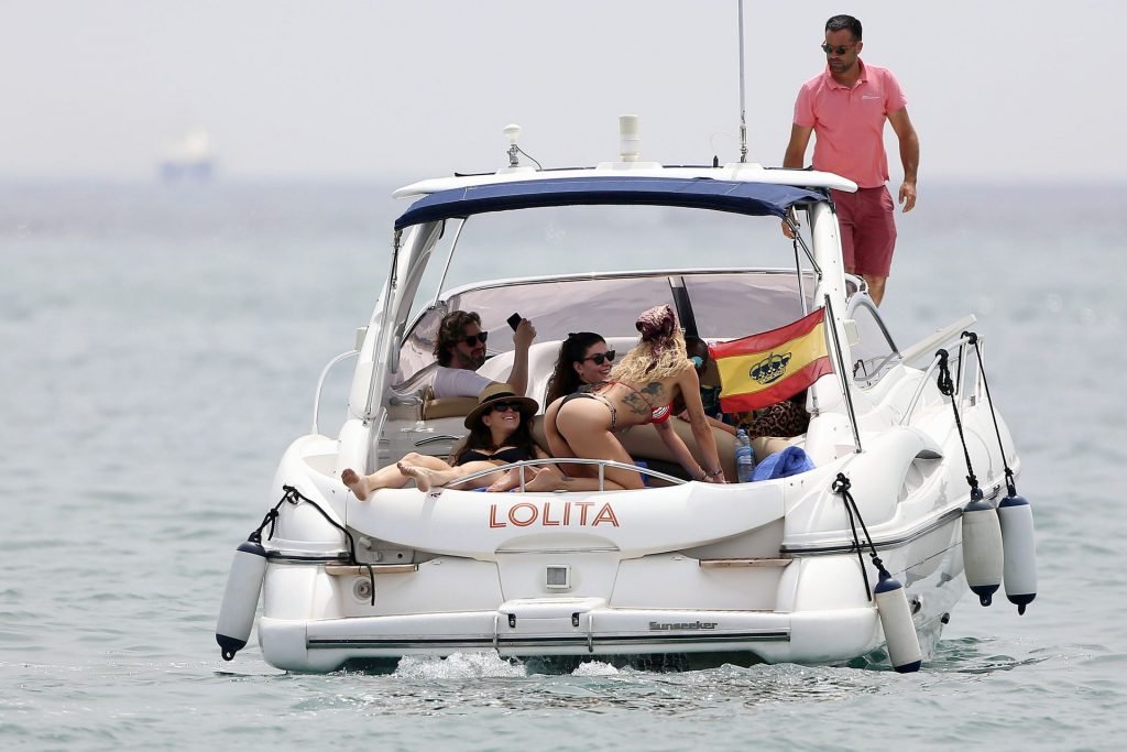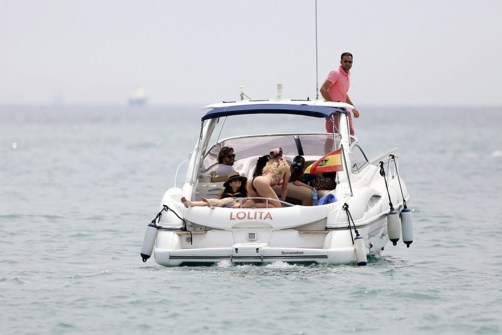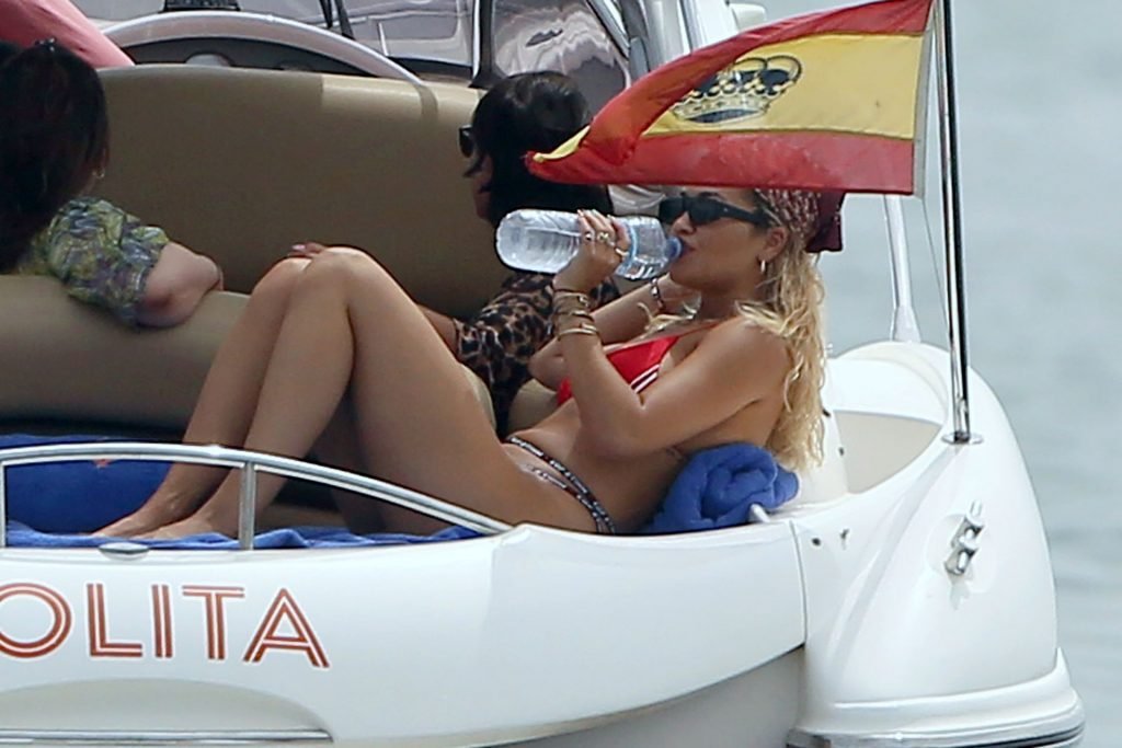 La cantante británica Rita Ora y sus amigos fueron fotografiados en un barco en Ibiza, 07/08/2019. Rita llevaba un pequeño bikini de White Fox mientras posaba con mucha actitud. El barco se llamaba “Lolita”.