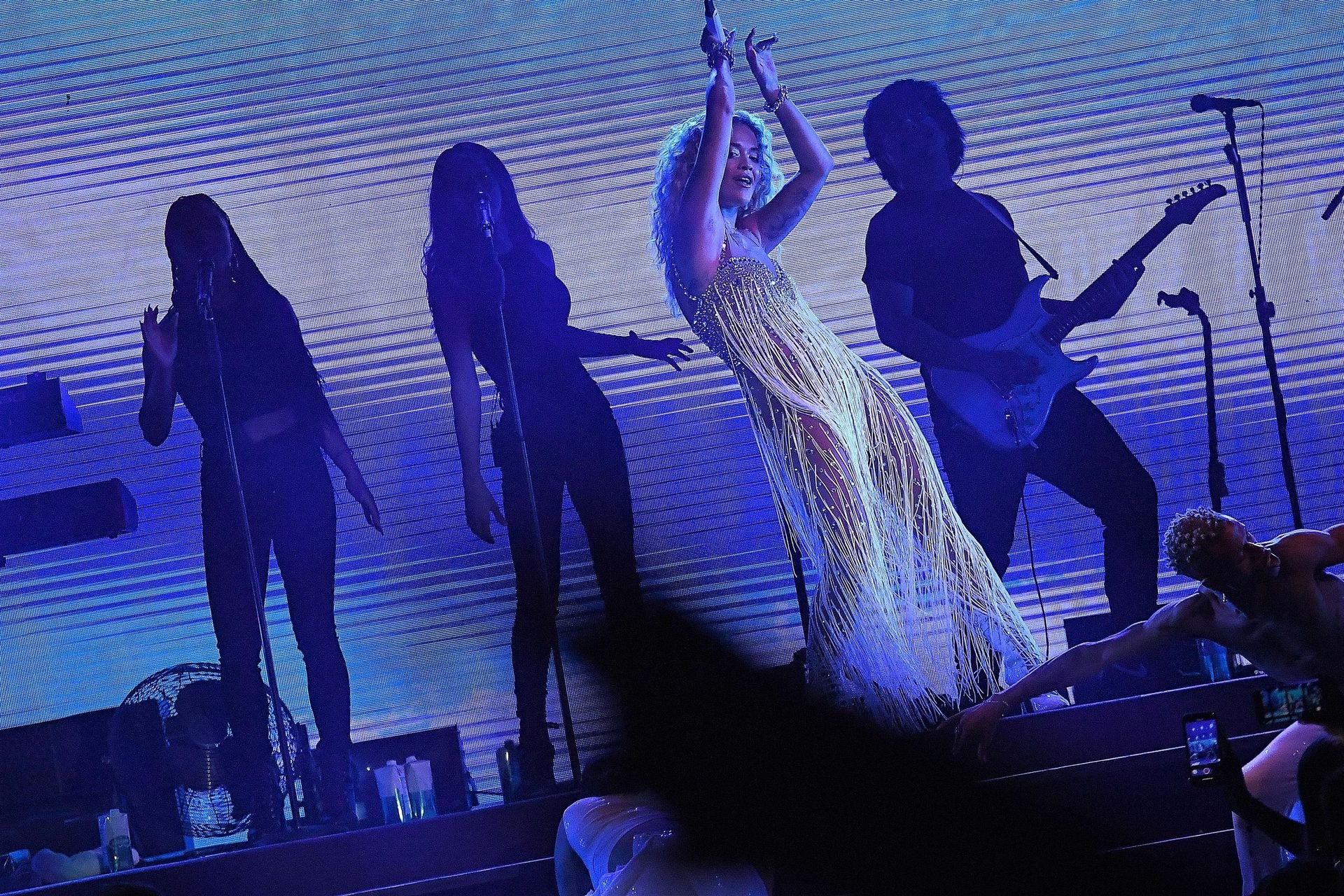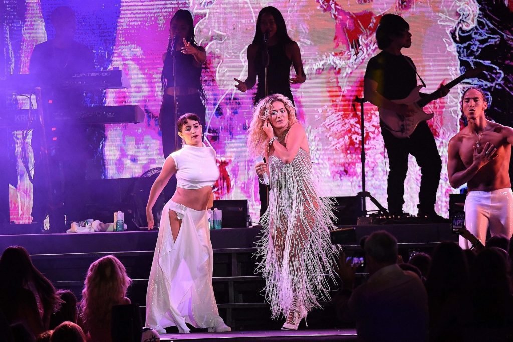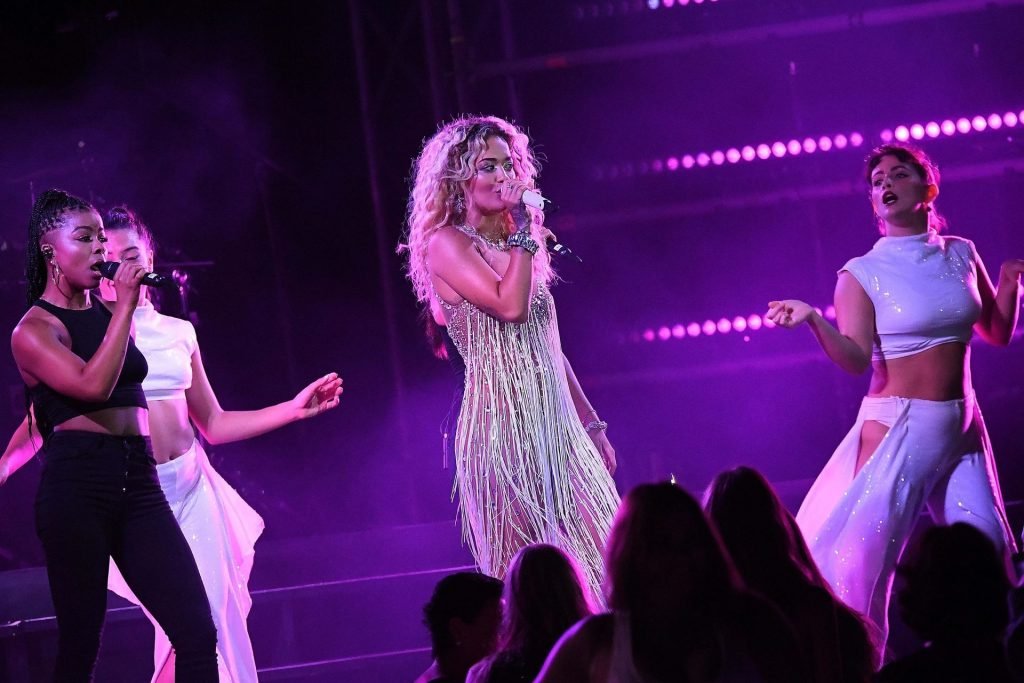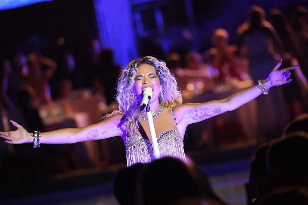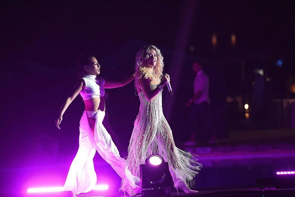 Cantante Rita Ora actúa en vivo en concierto en el Hotel Cala di Volpe en Porto Cervo, Cerdeña, Italia, 12/08/2019.