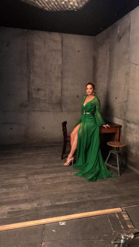 Ella está luciendo ese maldito vestido verde. ¡Shwing! Ella puede conseguirlo.