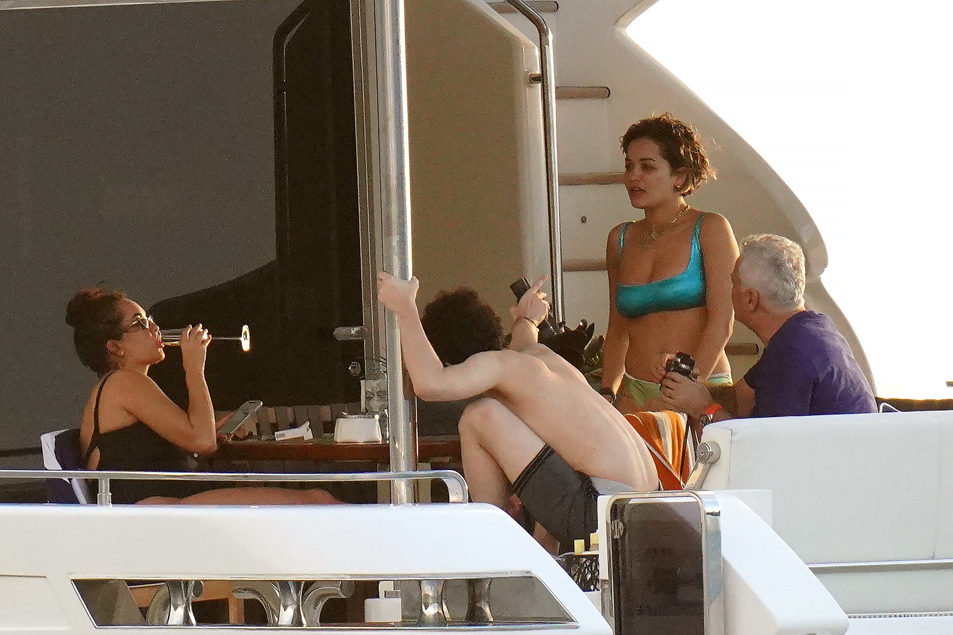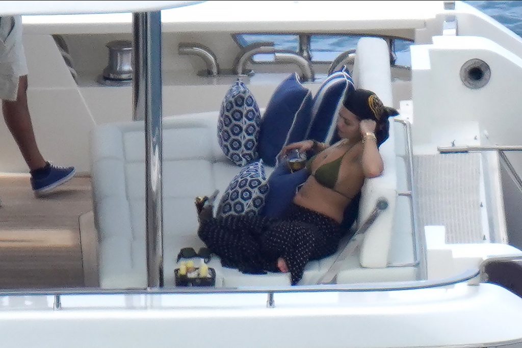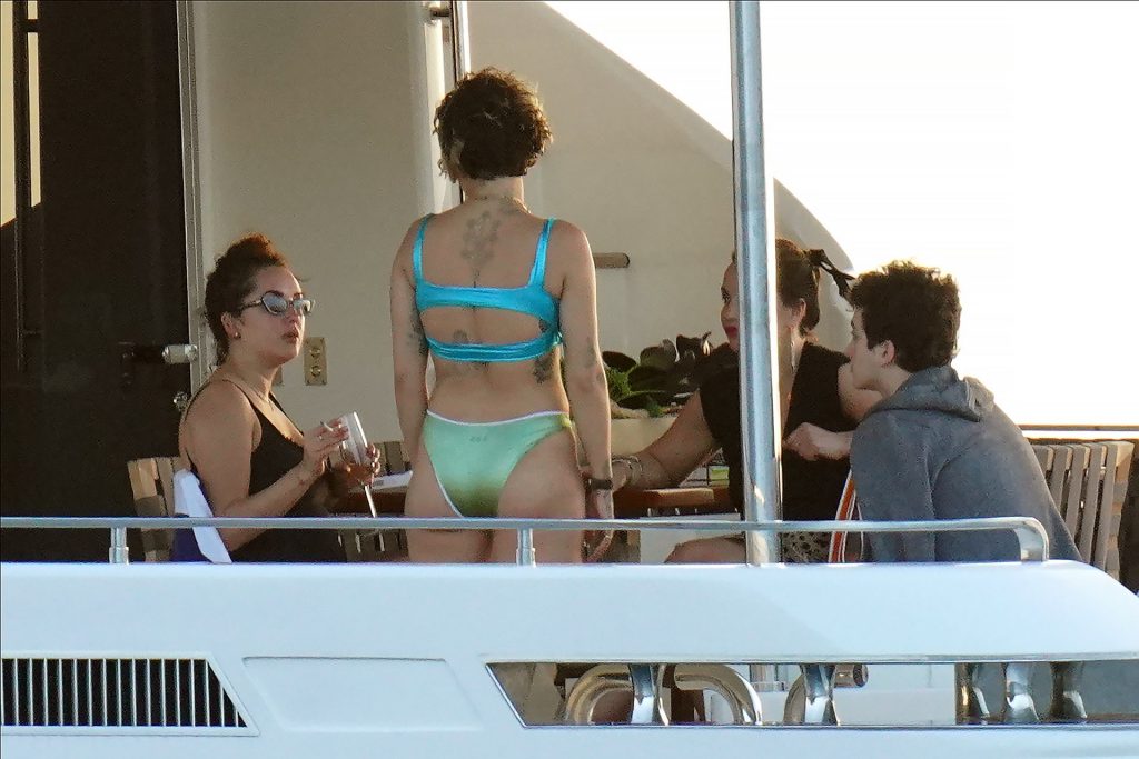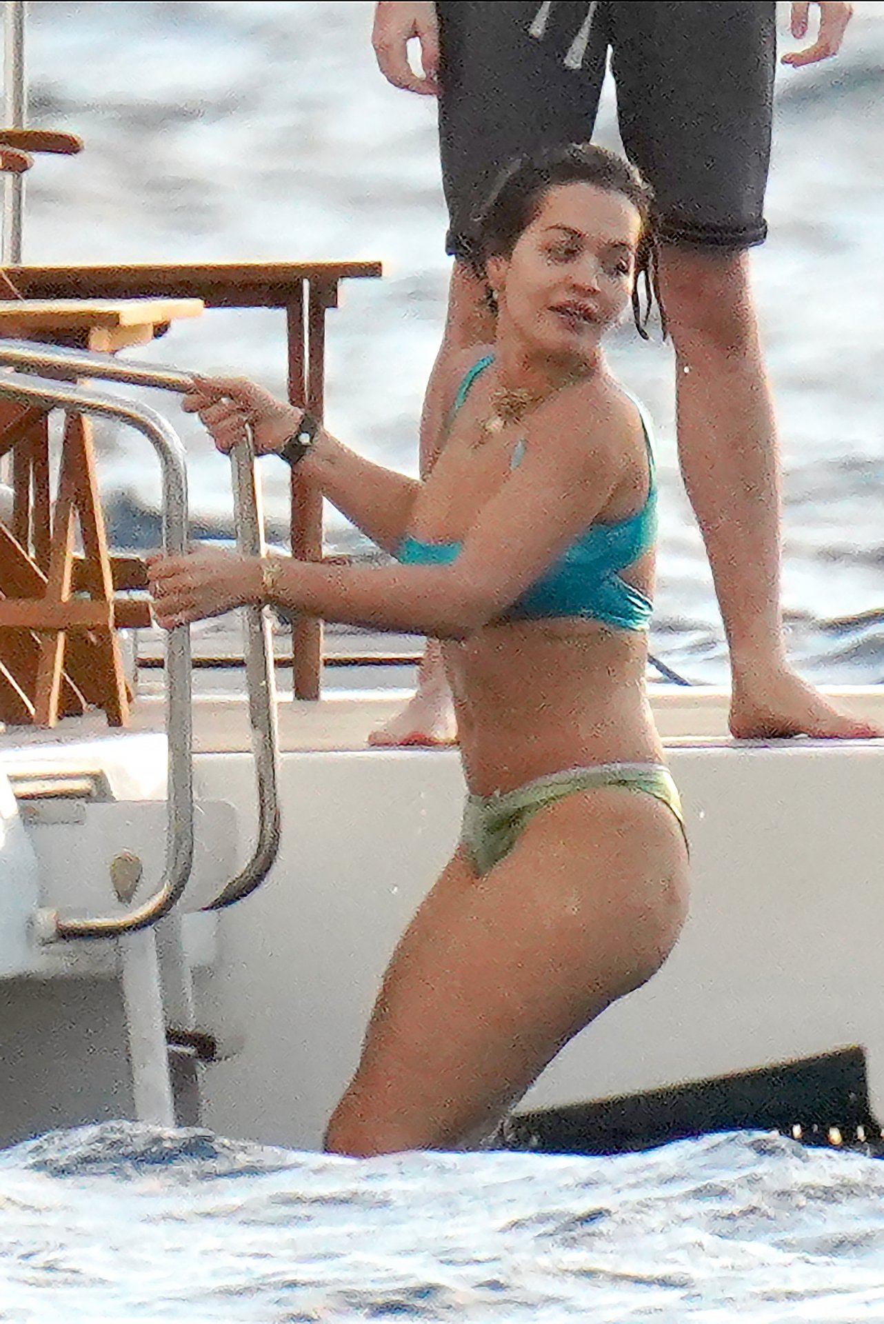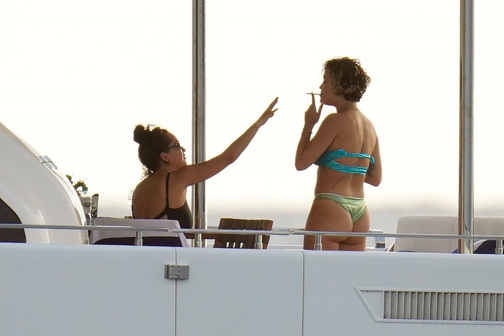 La cantante Rita Ora se ve increíble mientras muestra un espectáculo impresionante con un diminuto bikini azul durante unas idílicas vacaciones familiares de Navidad en St. Barts, 20/12/2019.
