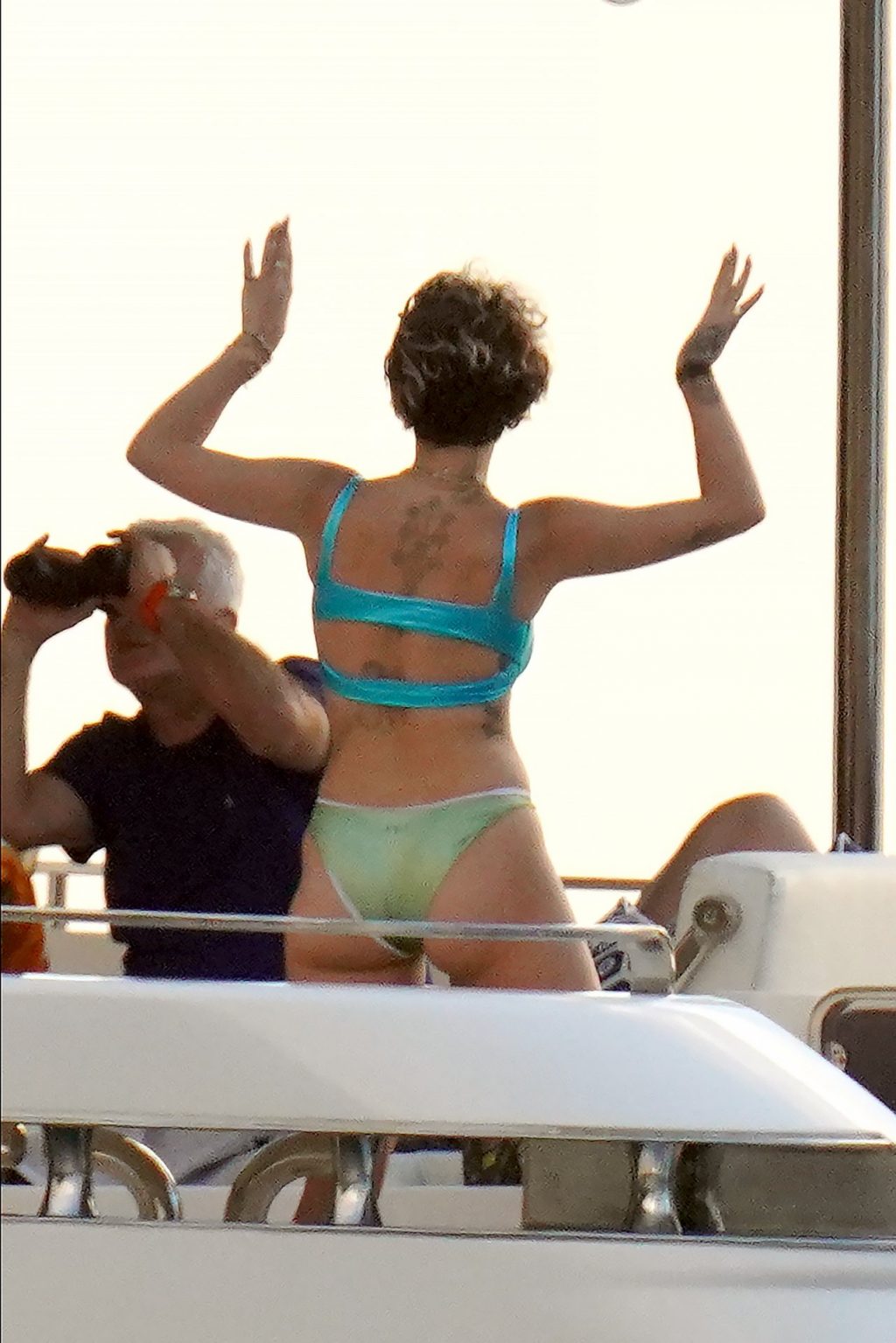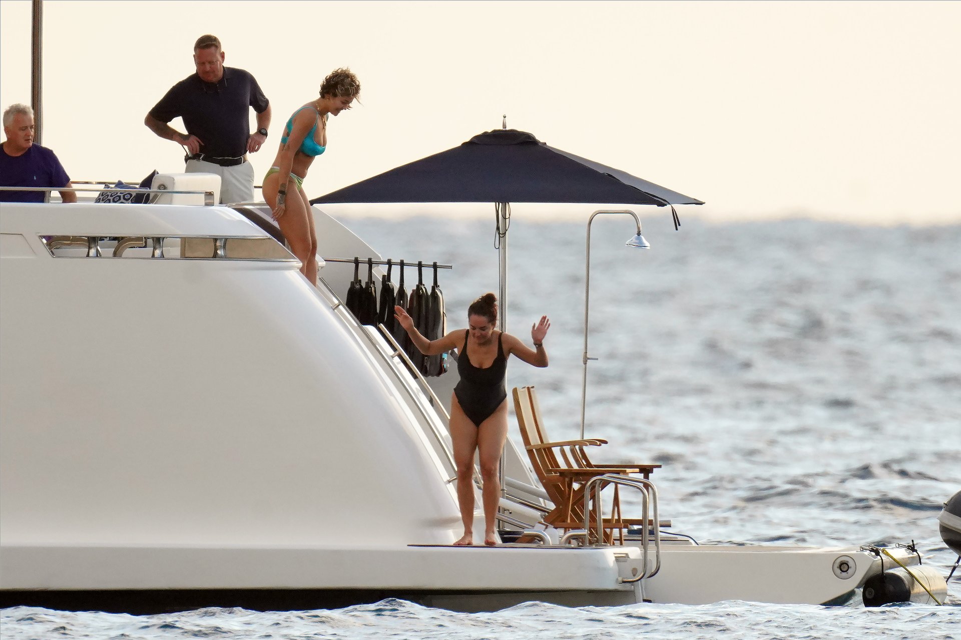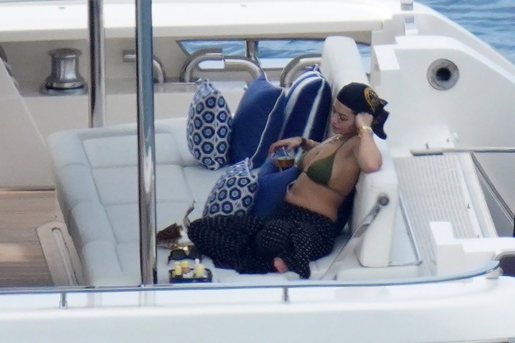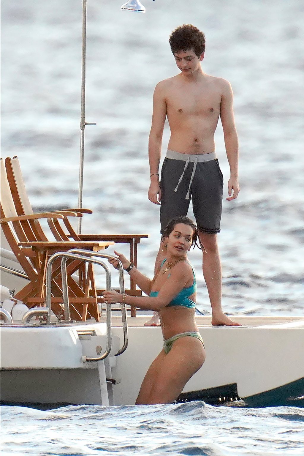 La cantante Rita Ora se ve increíble mientras muestra un espectáculo impresionante con un diminuto bikini azul durante unas idílicas vacaciones familiares de Navidad en St. Barts, 20/12/2019.