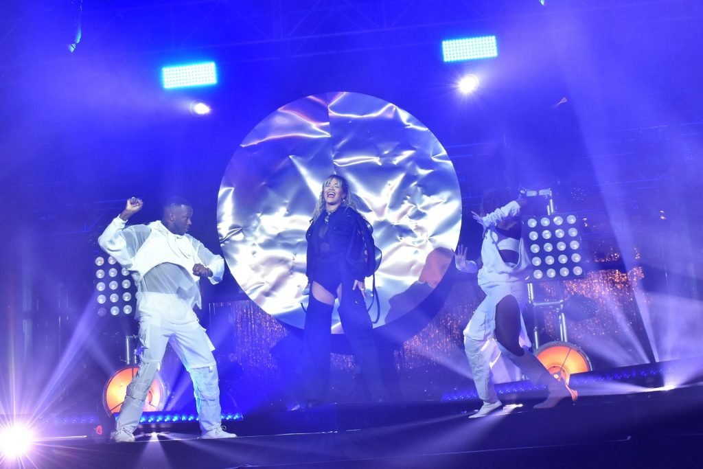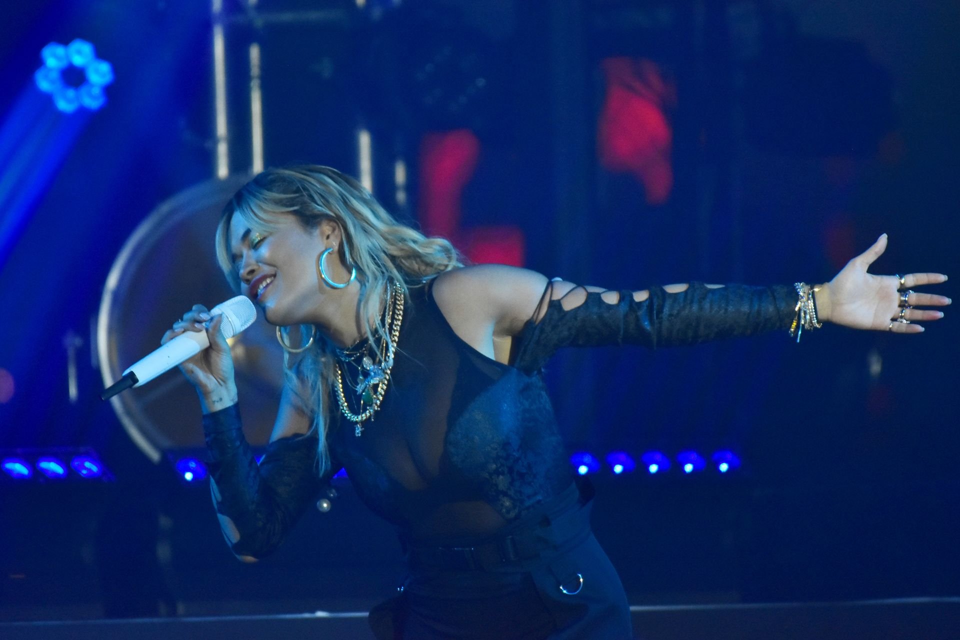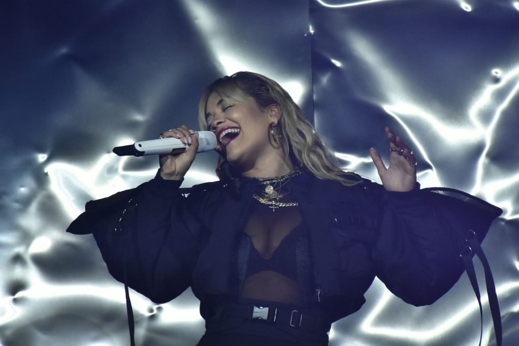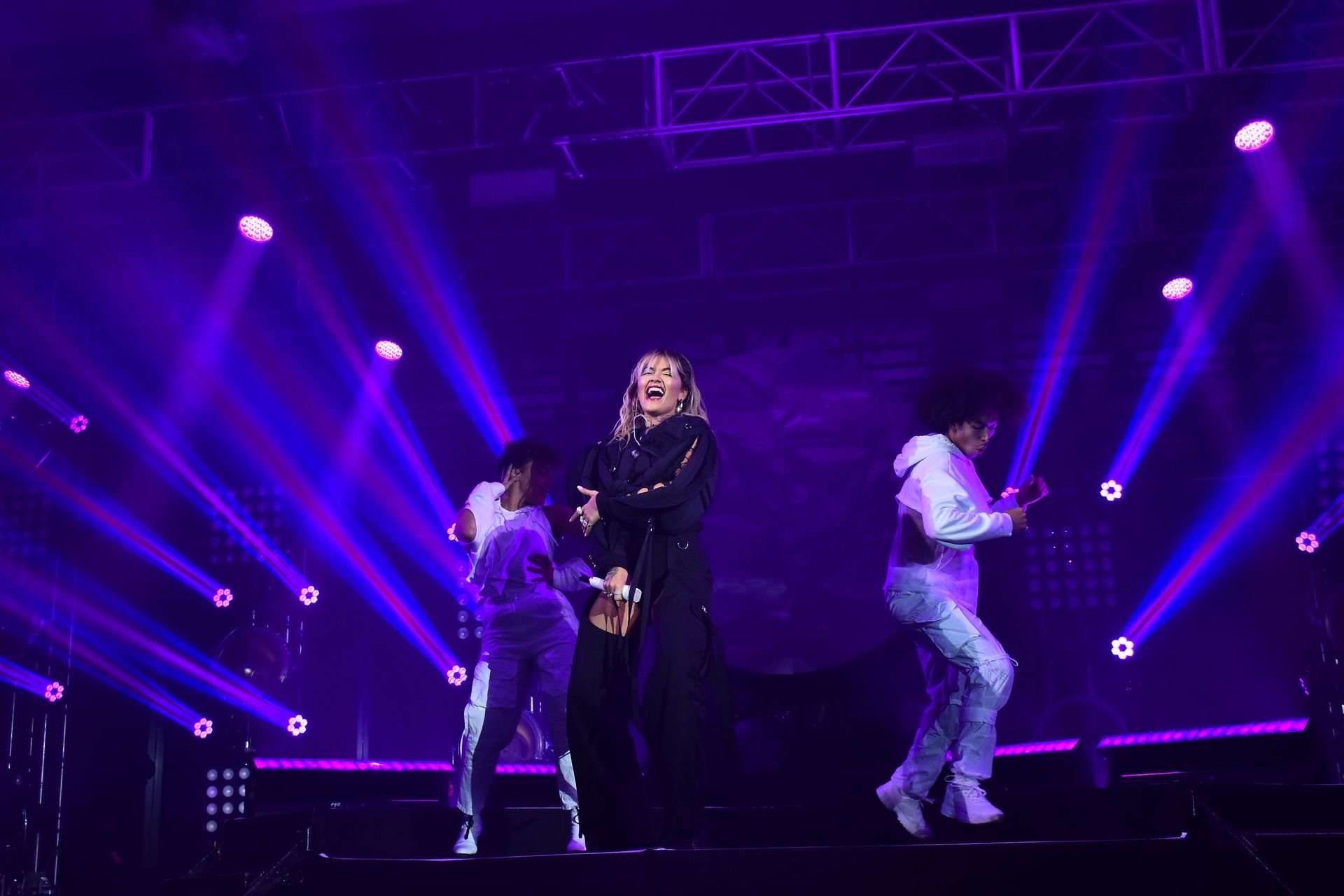 Singer Rita Ora performs at the American Express Gold Launch in Mexico City, 10/17/2019. She showed her cleavage and butt on stage.