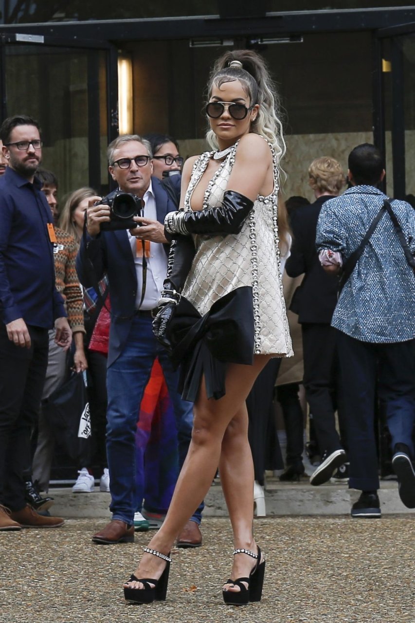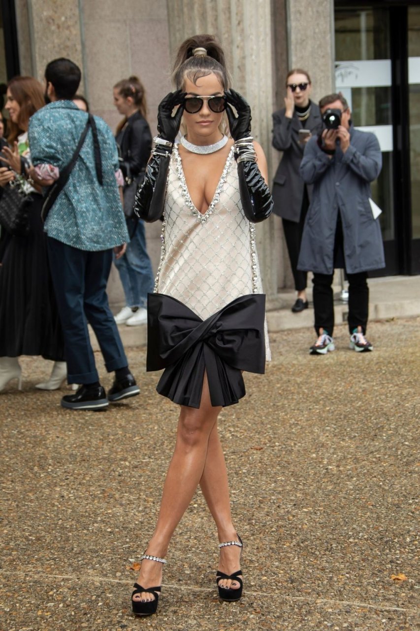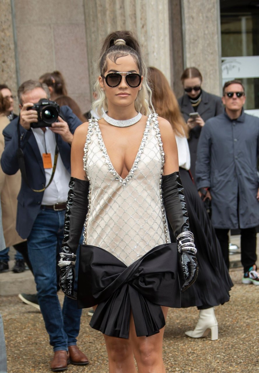 La cantante británica Rita Ora asiste al desfile de moda femenina Primavera/Verano 2020 de Miu Miu como parte de la Semana de la Moda de París, 01/10/2019.